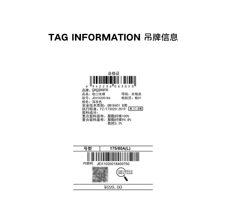 gxg.jeans男装冬季深灰色收口休闲裤长裤JEX10200184