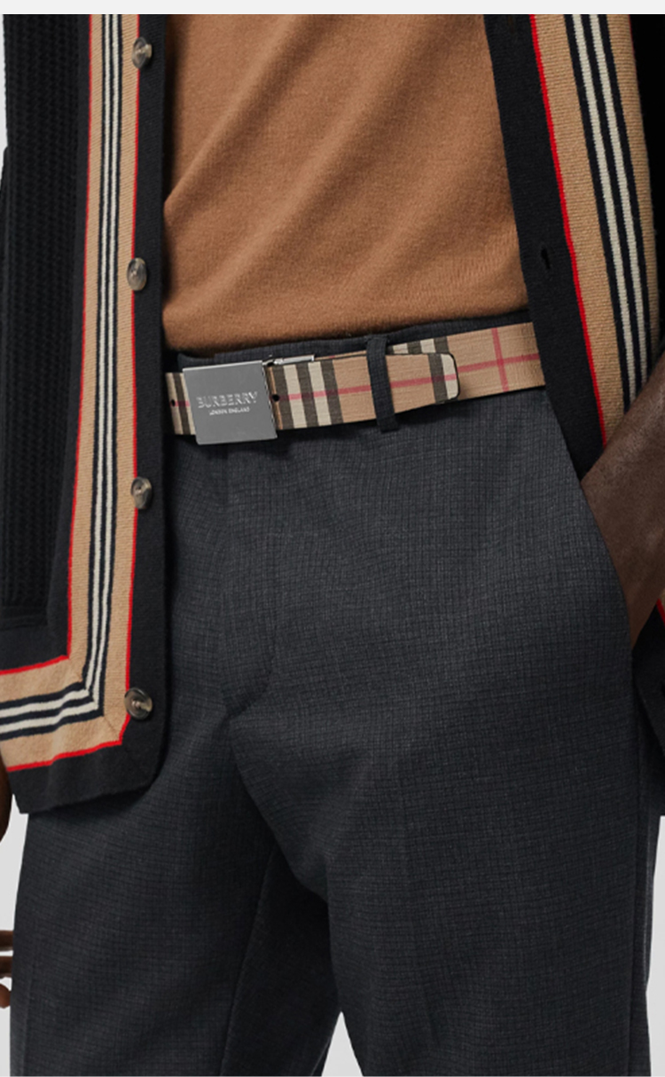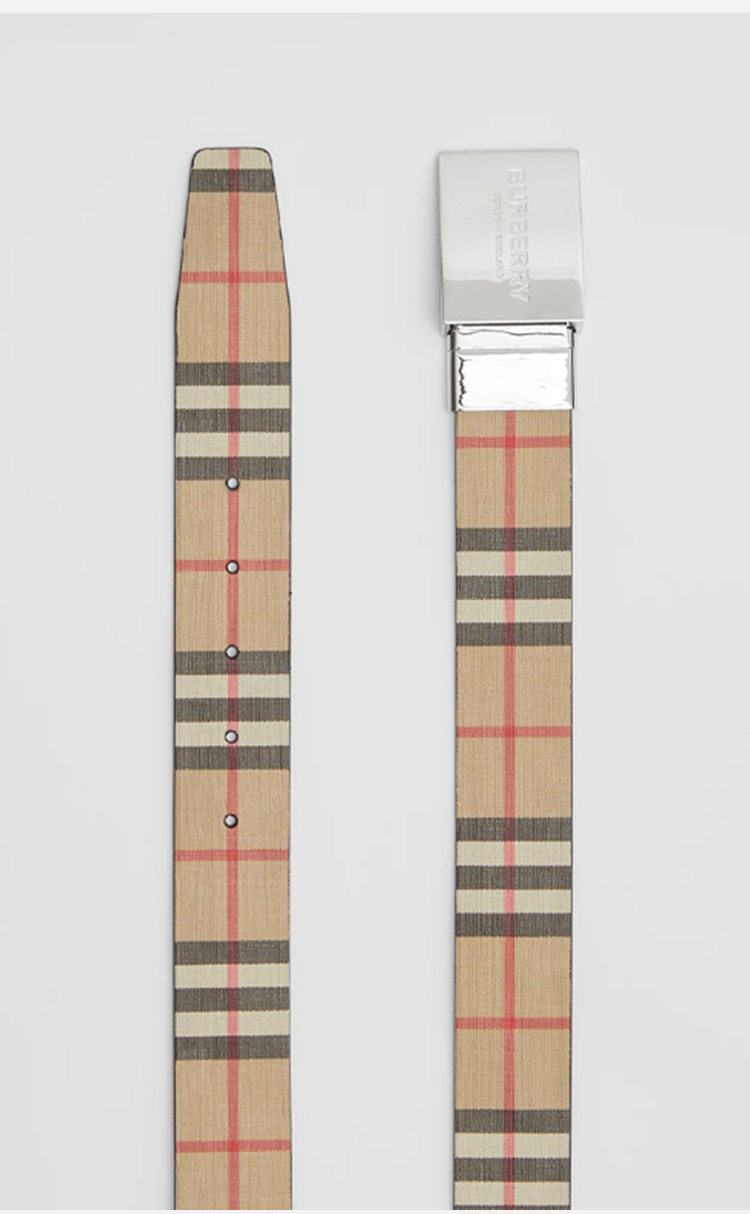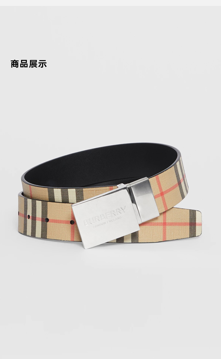 BURBERRY 巴宝莉 男士双面两用饰牌搭扣格纹拼皮革腰带 格子 8052783 A7026