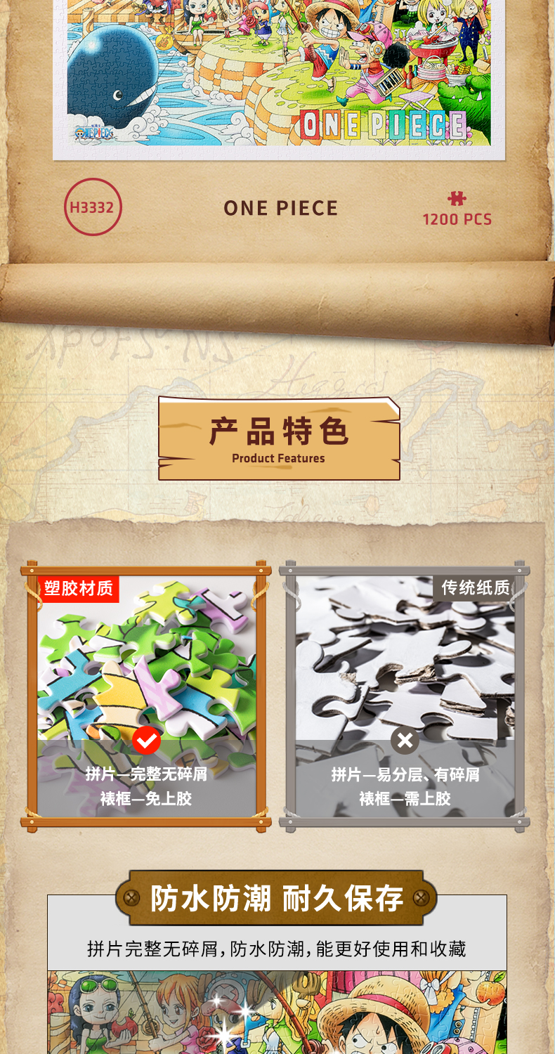 【折扣商品 不退不换】1200片 平面塑料拼图 H3332 ONE PIECE-户外活动