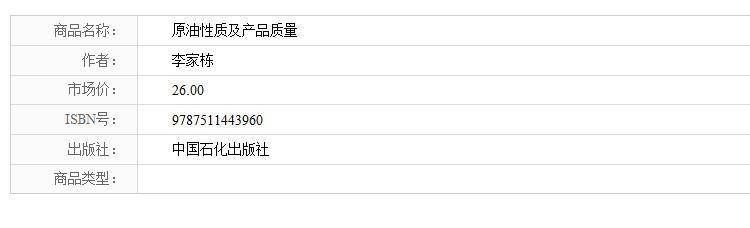 【官方旗舰店】原油性质及产品质量—炼油厂设计与工程丛书 9787511443960 中国石化出版社