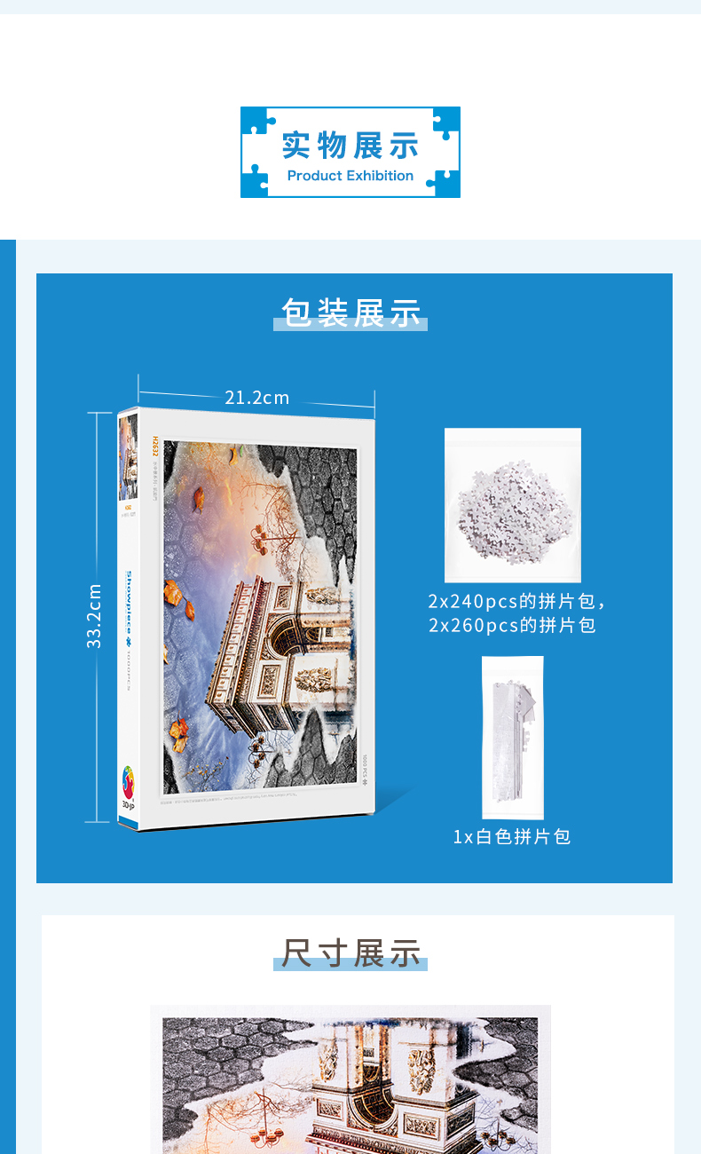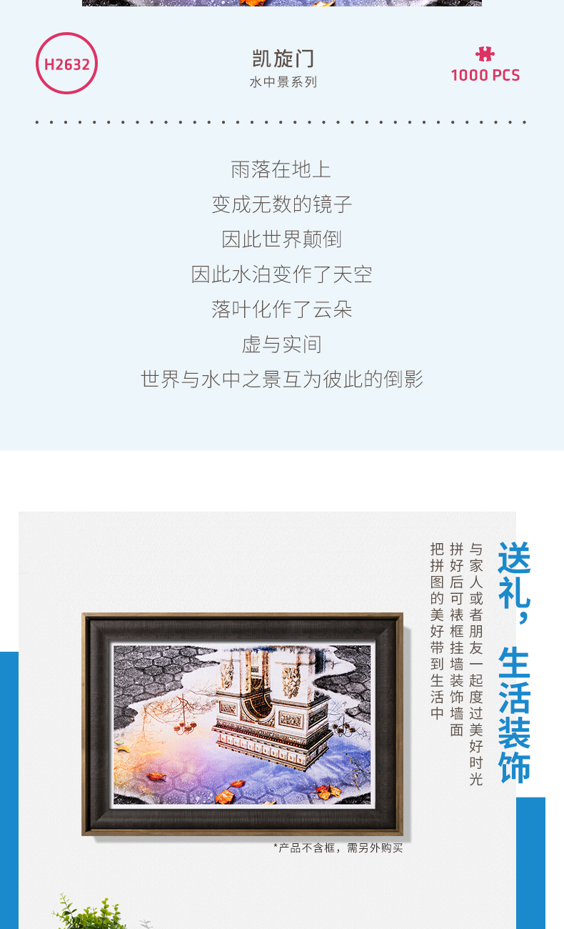 【折扣商品 不退不换】1000片 平面拼图 塑料拼图 H2632 水中景系列-凯旋门