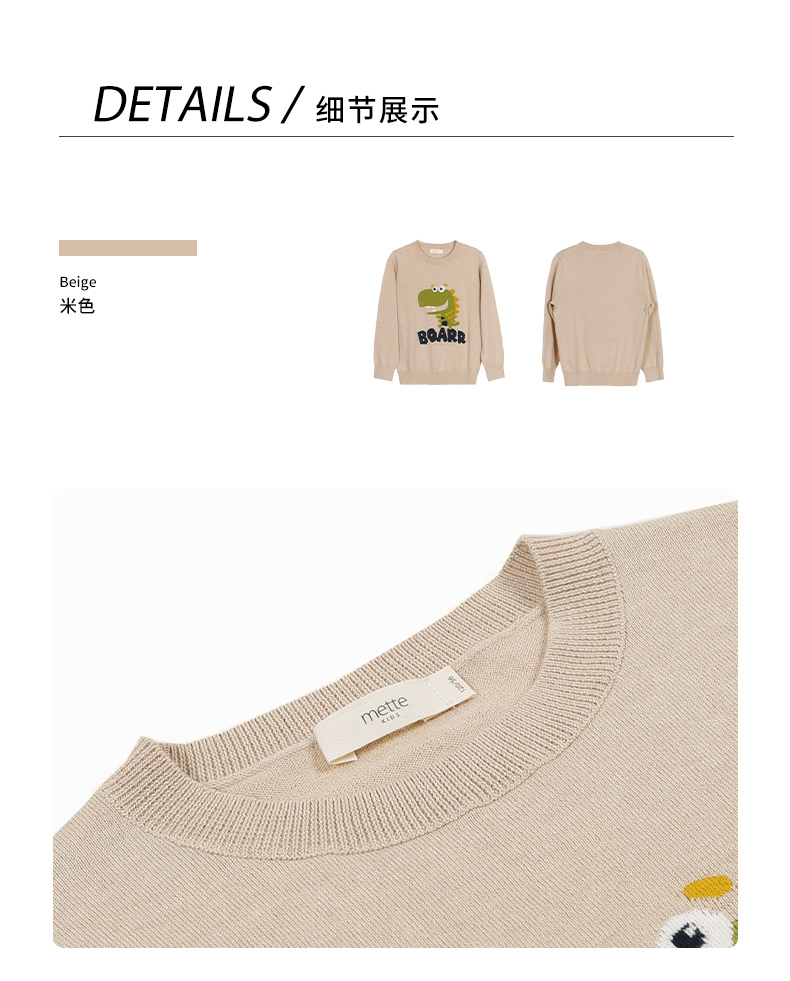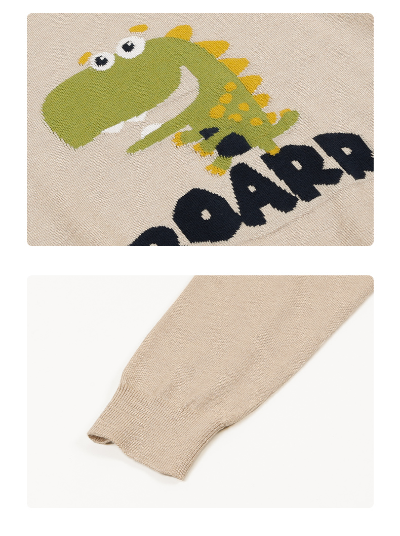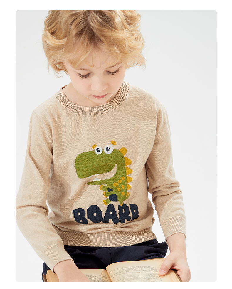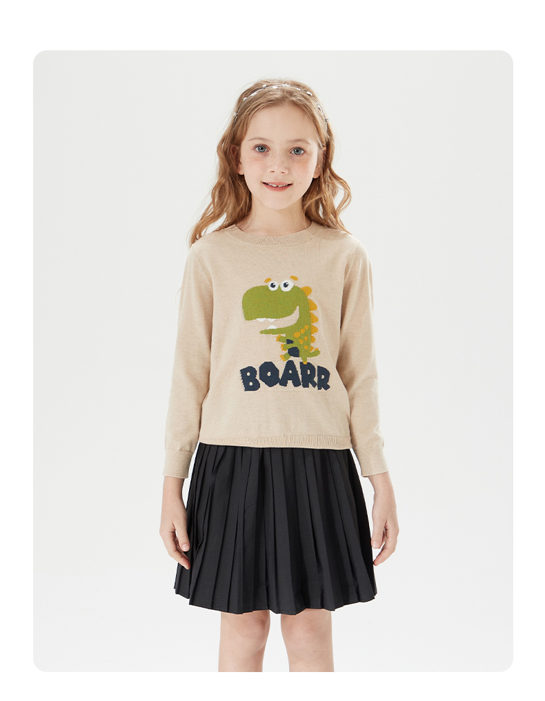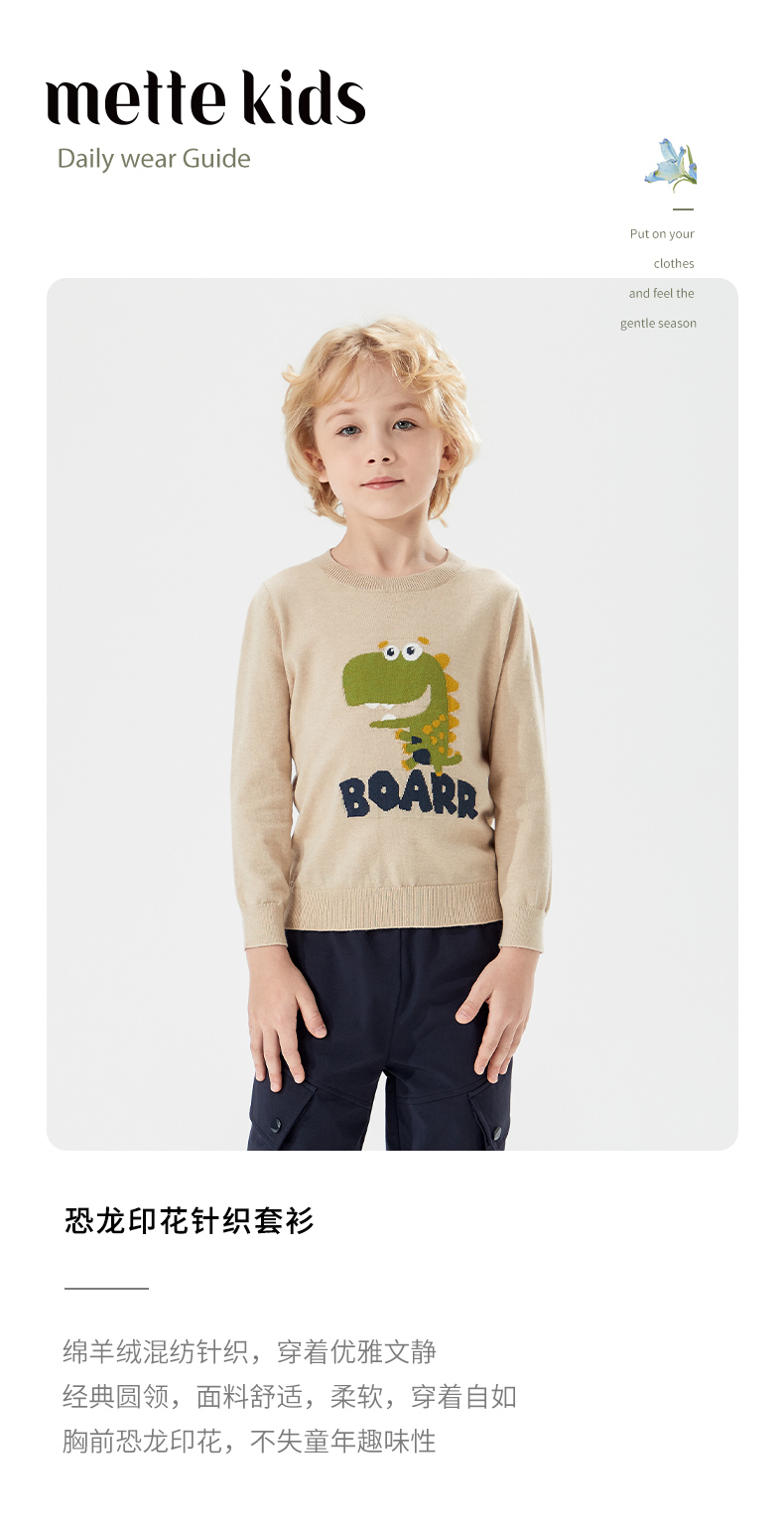 mettekids儿童针织衫男秋装新款打底衫中大女童卡通恐龙圆领毛衣