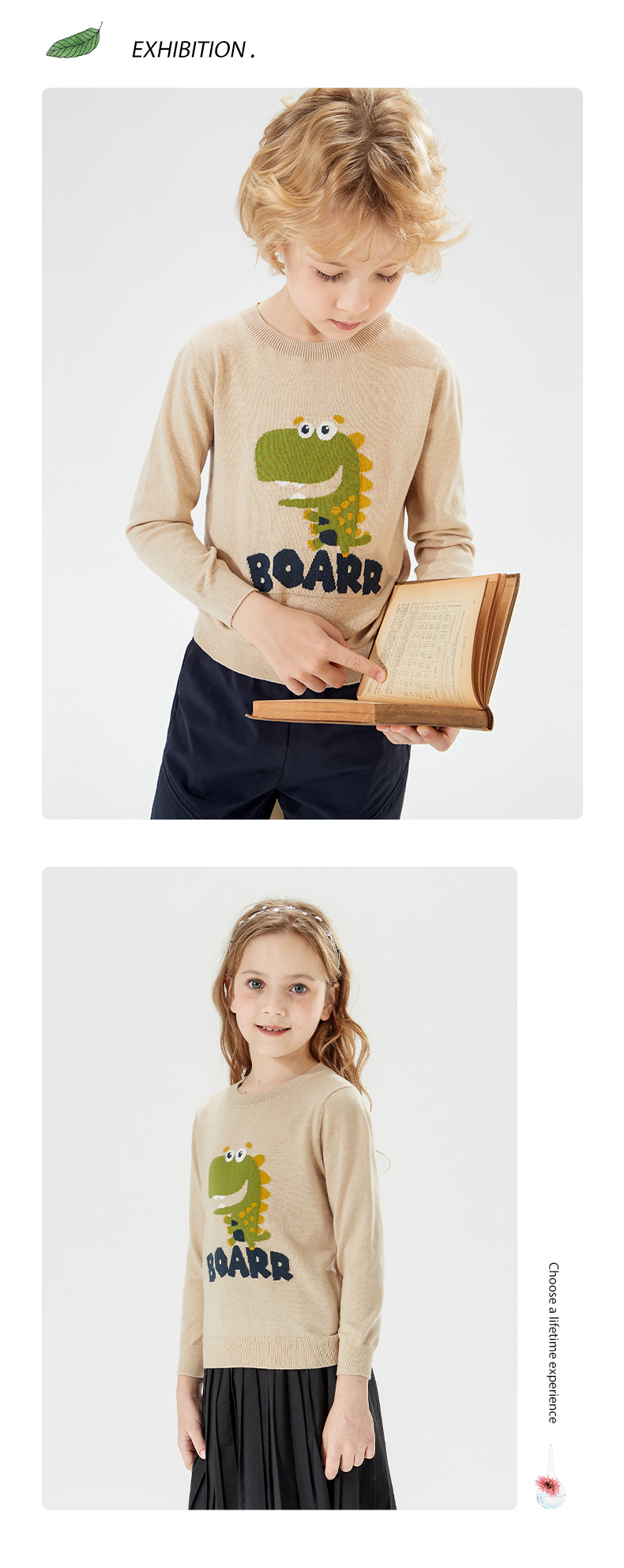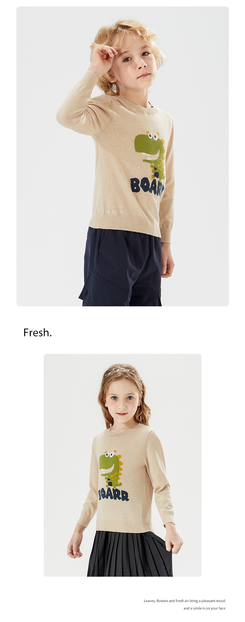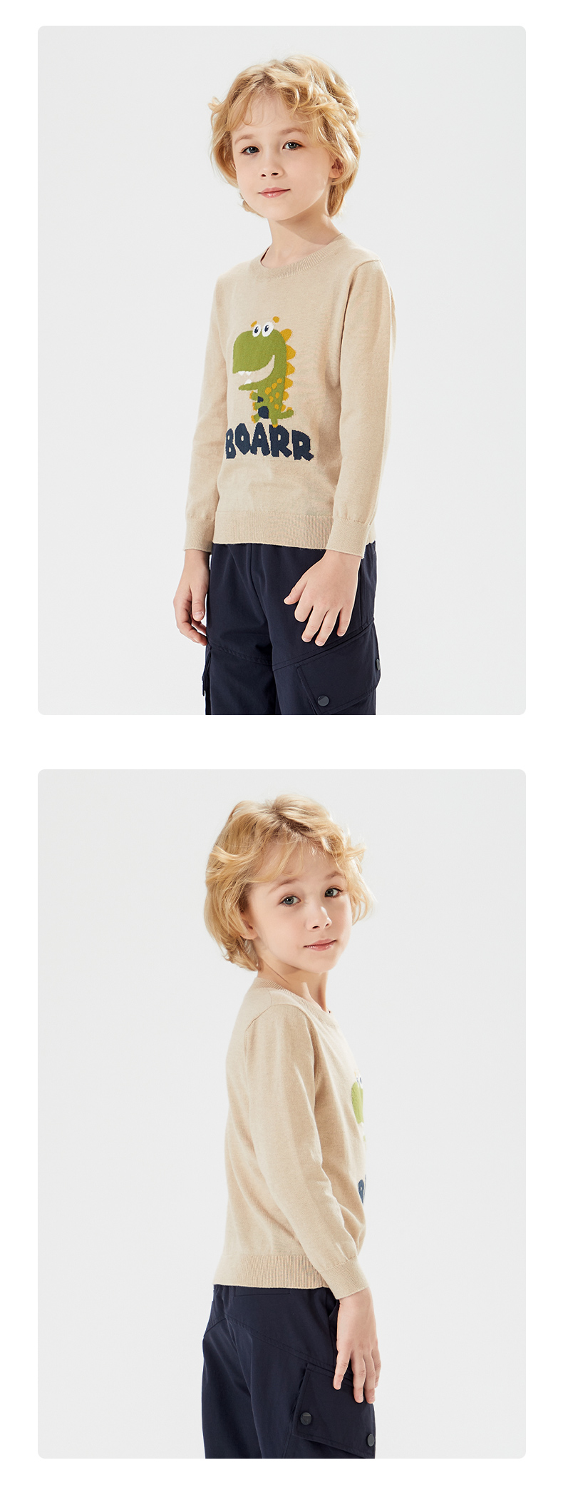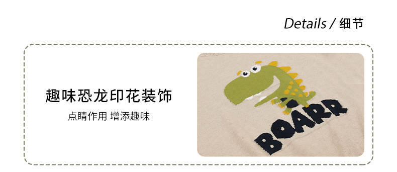 mettekids儿童针织衫男秋装新款打底衫中大女童卡通恐龙圆领毛衣