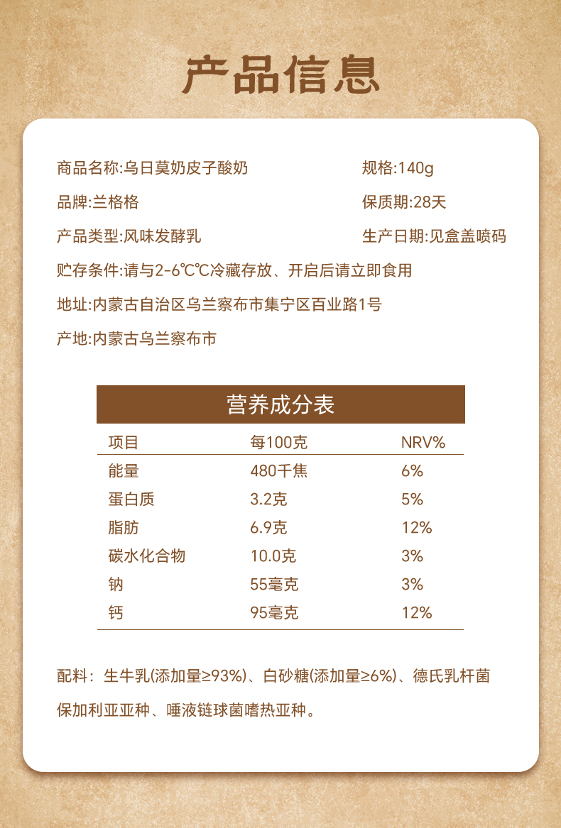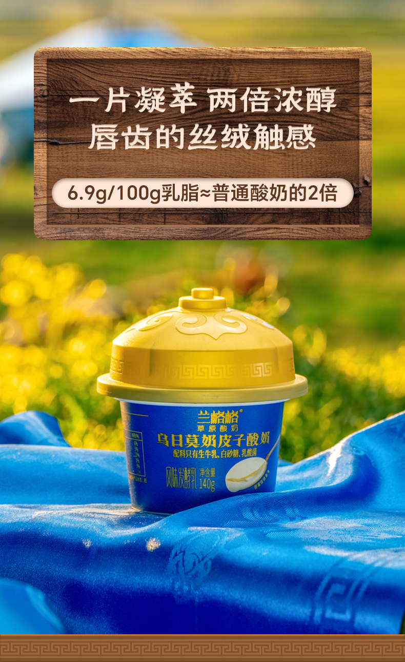 【回头客推荐】兰格格内蒙古草原酸奶乌日莫奶皮子酸奶140g*12盒