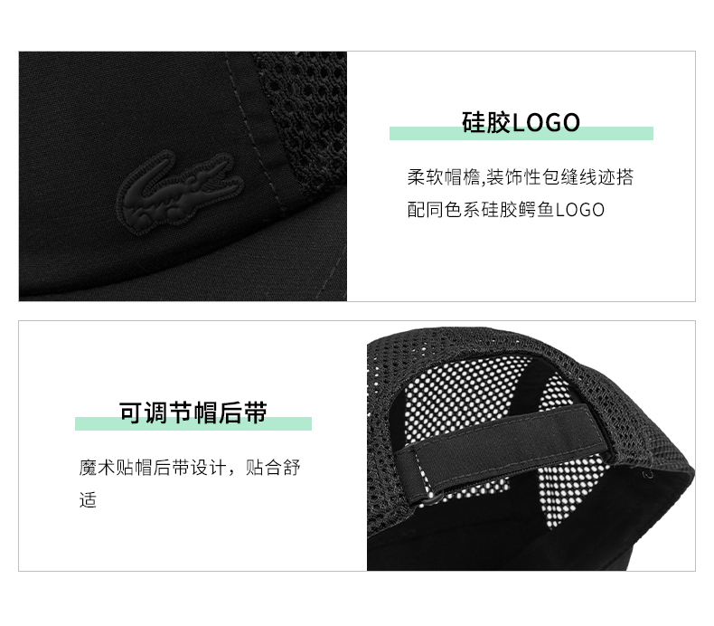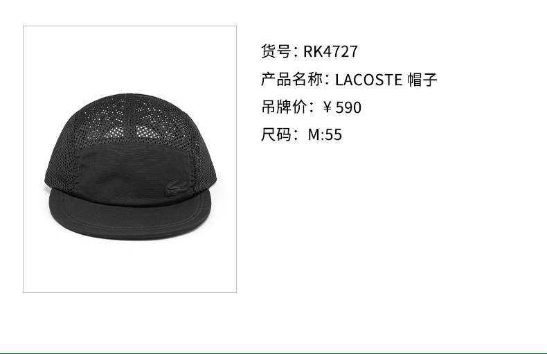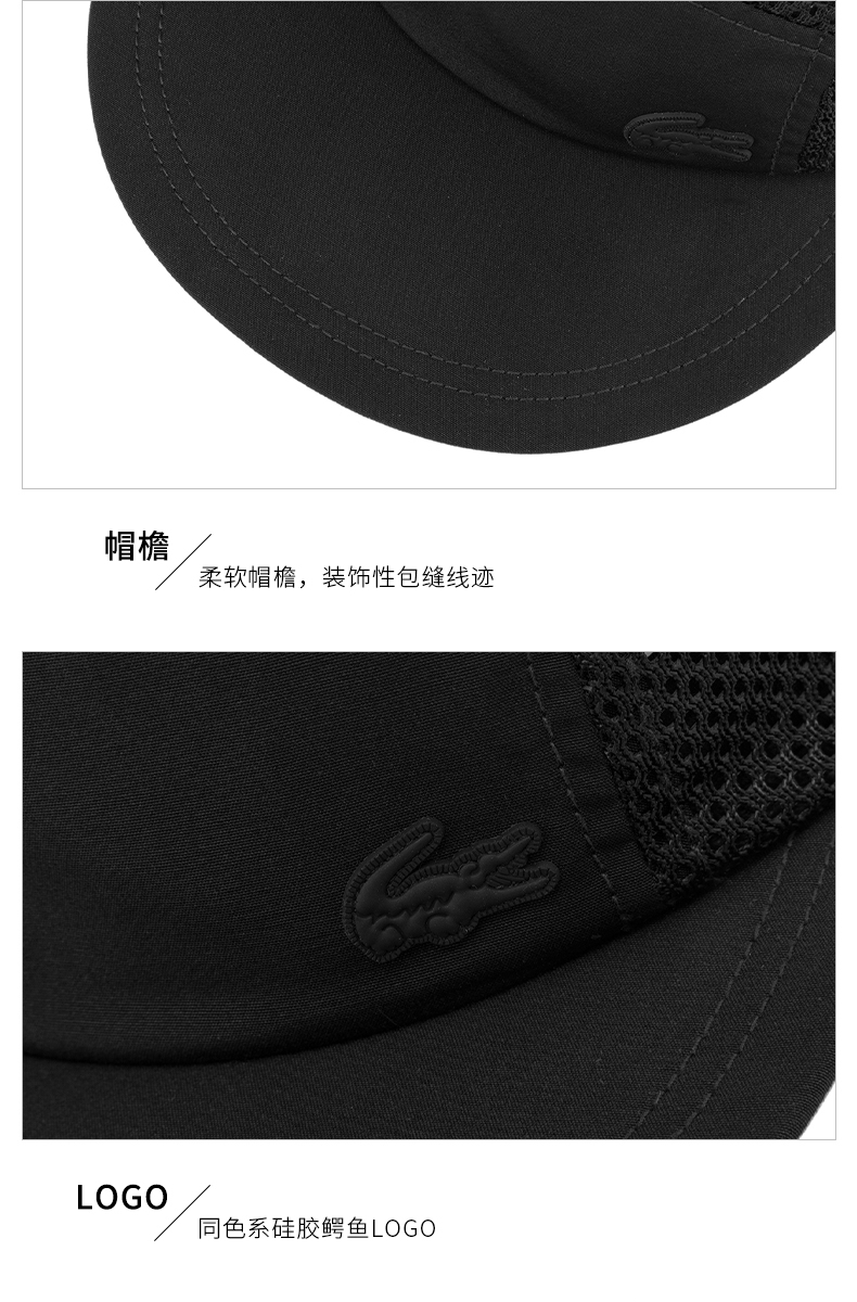 【海南专供价】Lacoste法国鳄鱼配件黑色网面透气棒球帽遮阳帽鸭舌帽RK4727-98