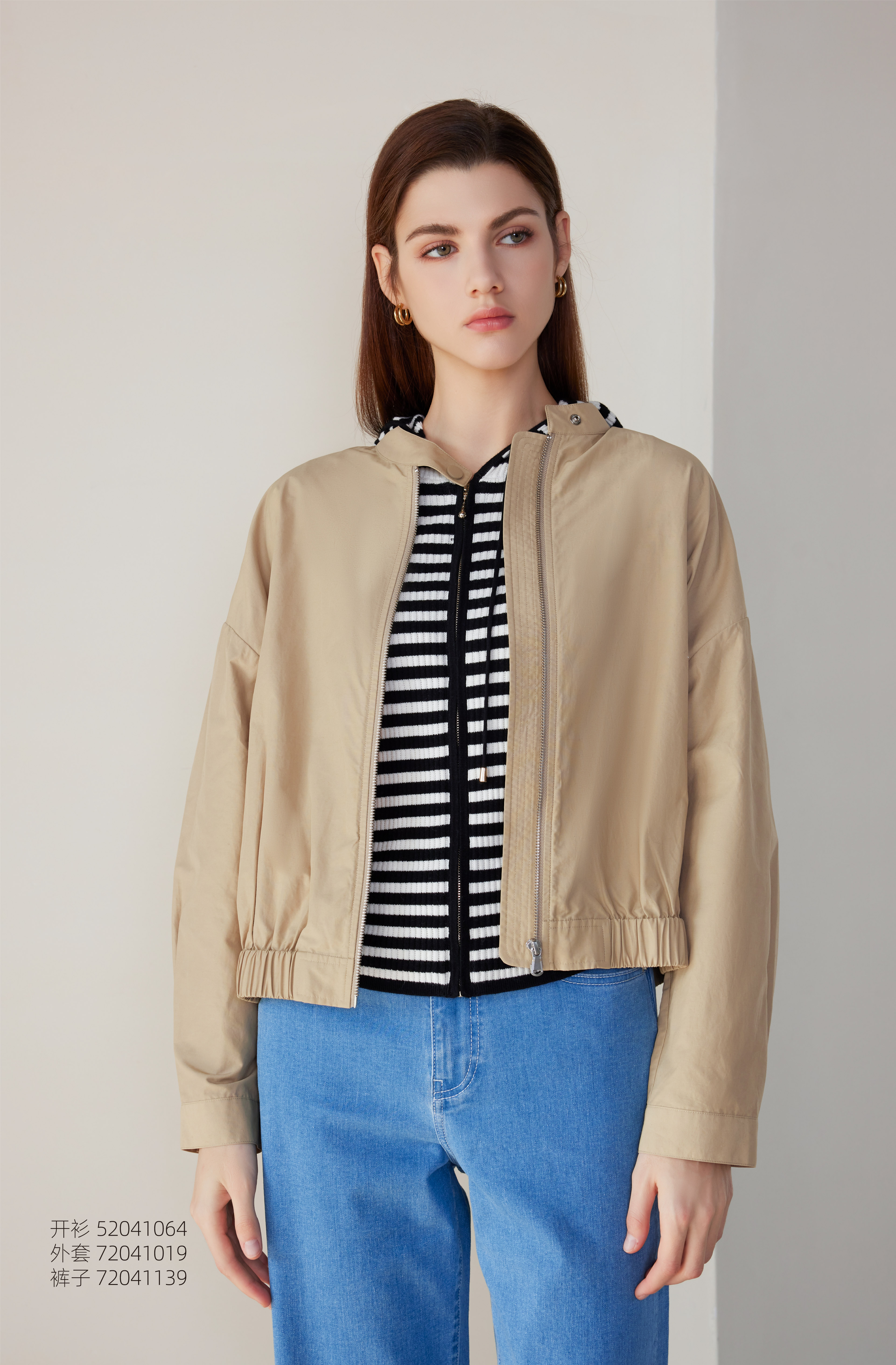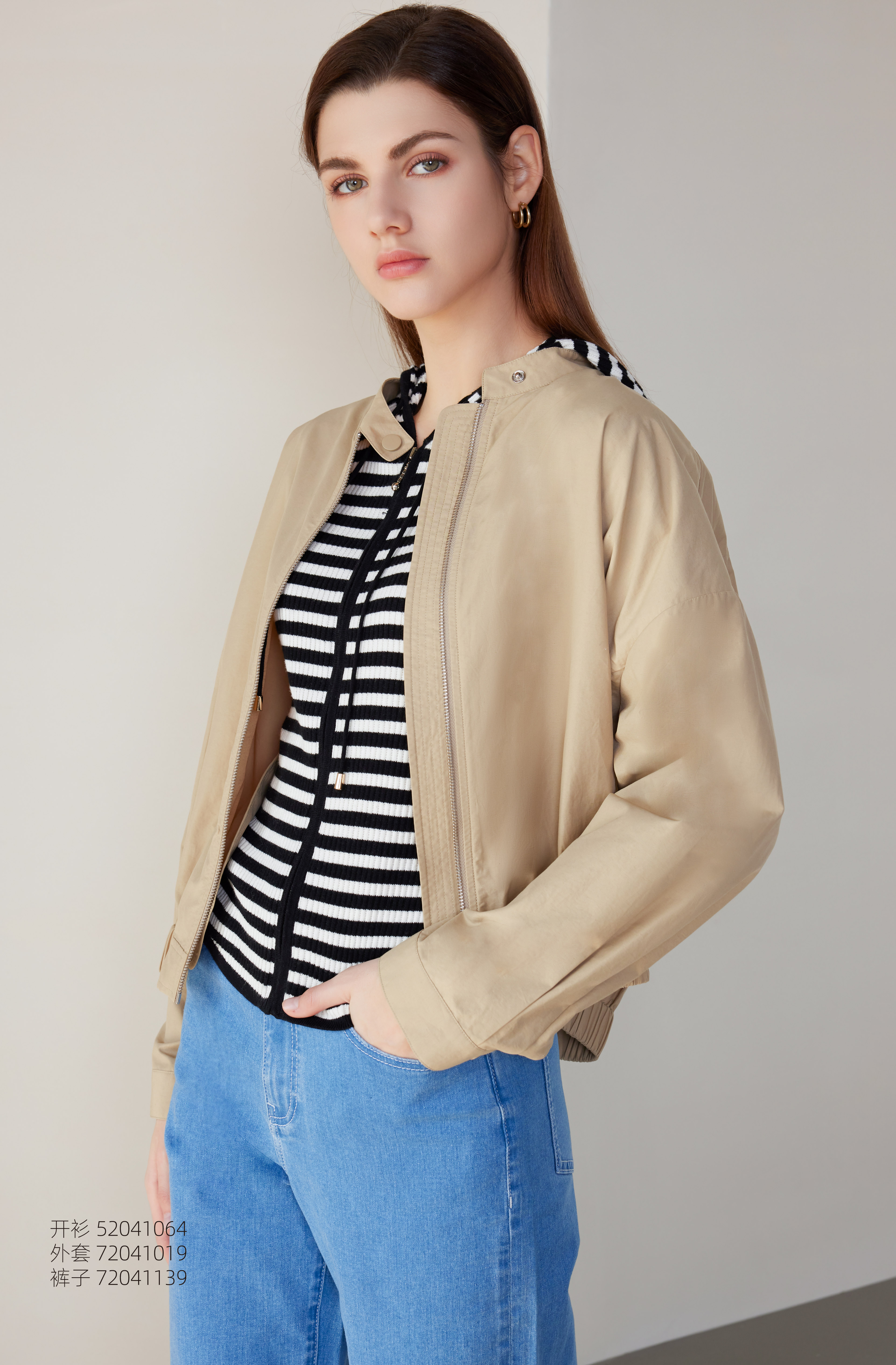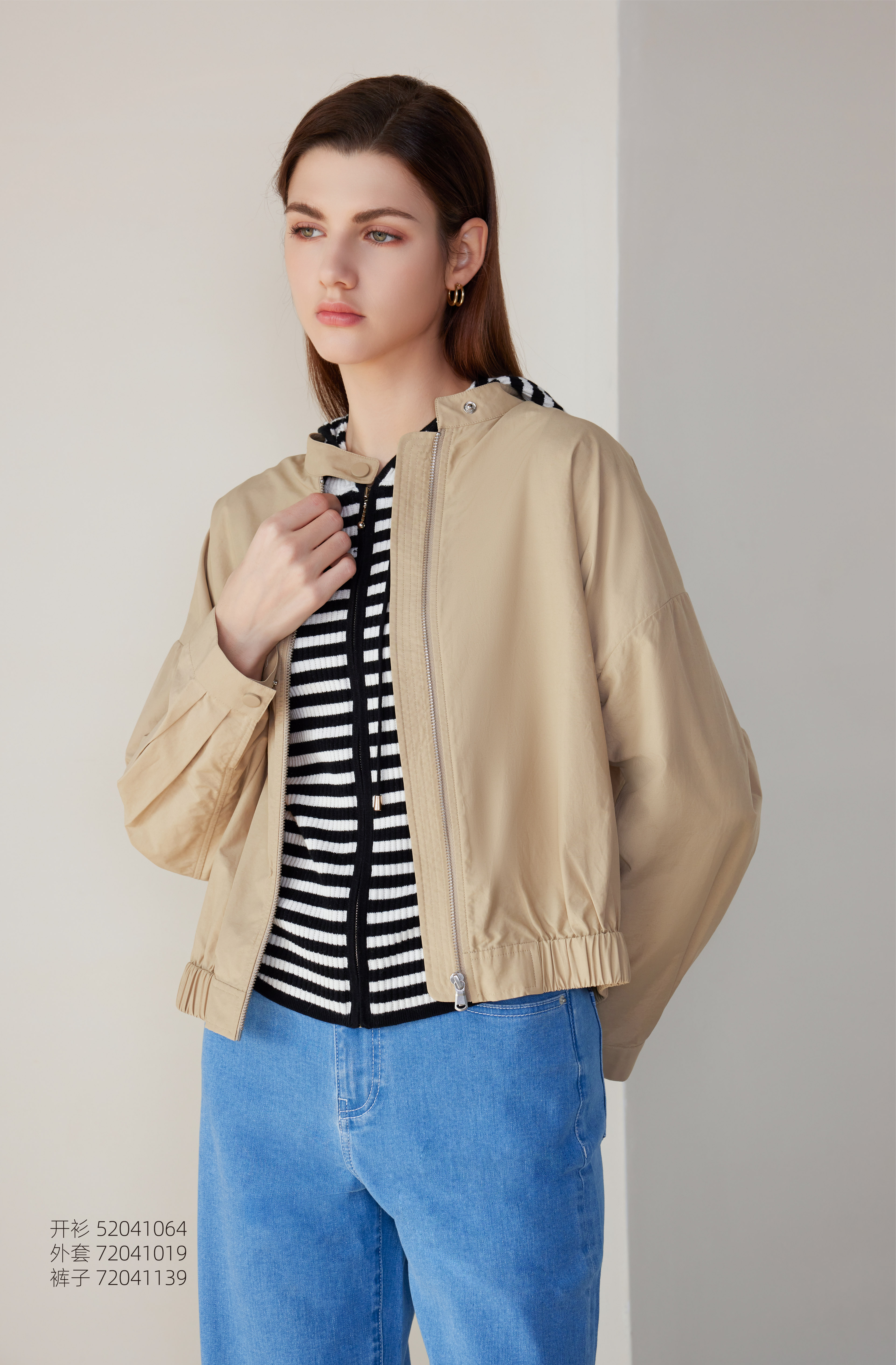 【短款夹克外套】24年春夏新品女士立领薄款卡其色夹克休闲外套