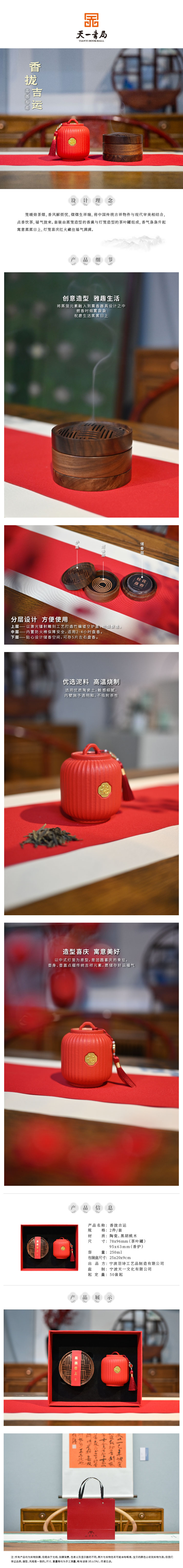 羽诗制造出品 香拢吉运胡桃木蒸笼香炉灯笼福字茶叶罐礼盒套装