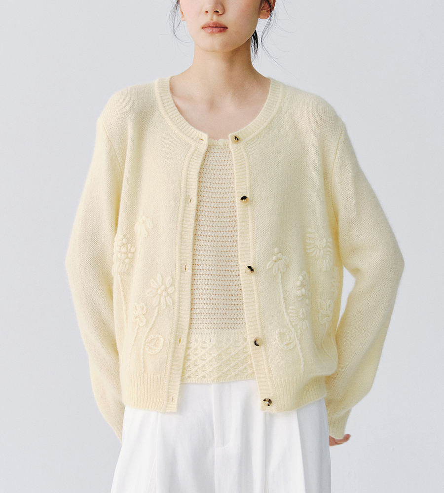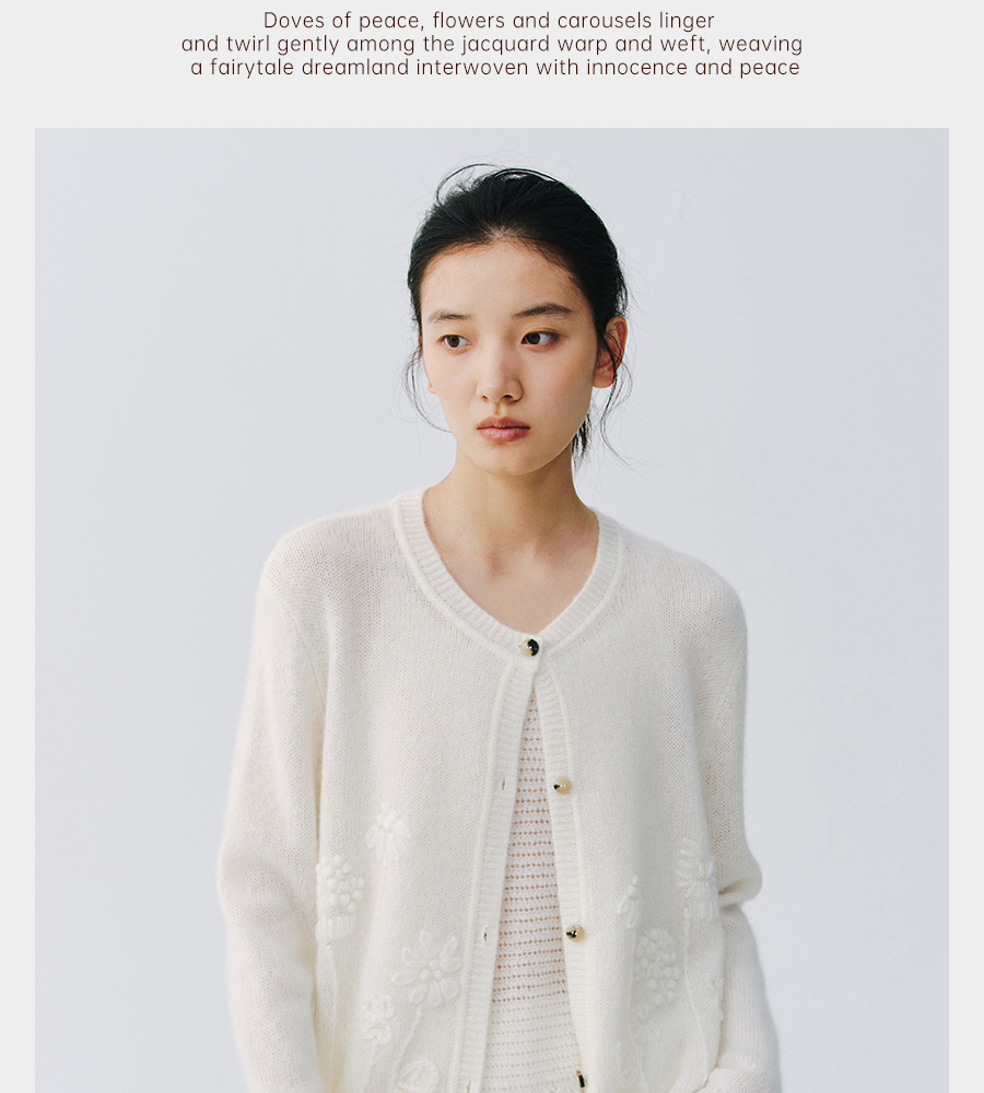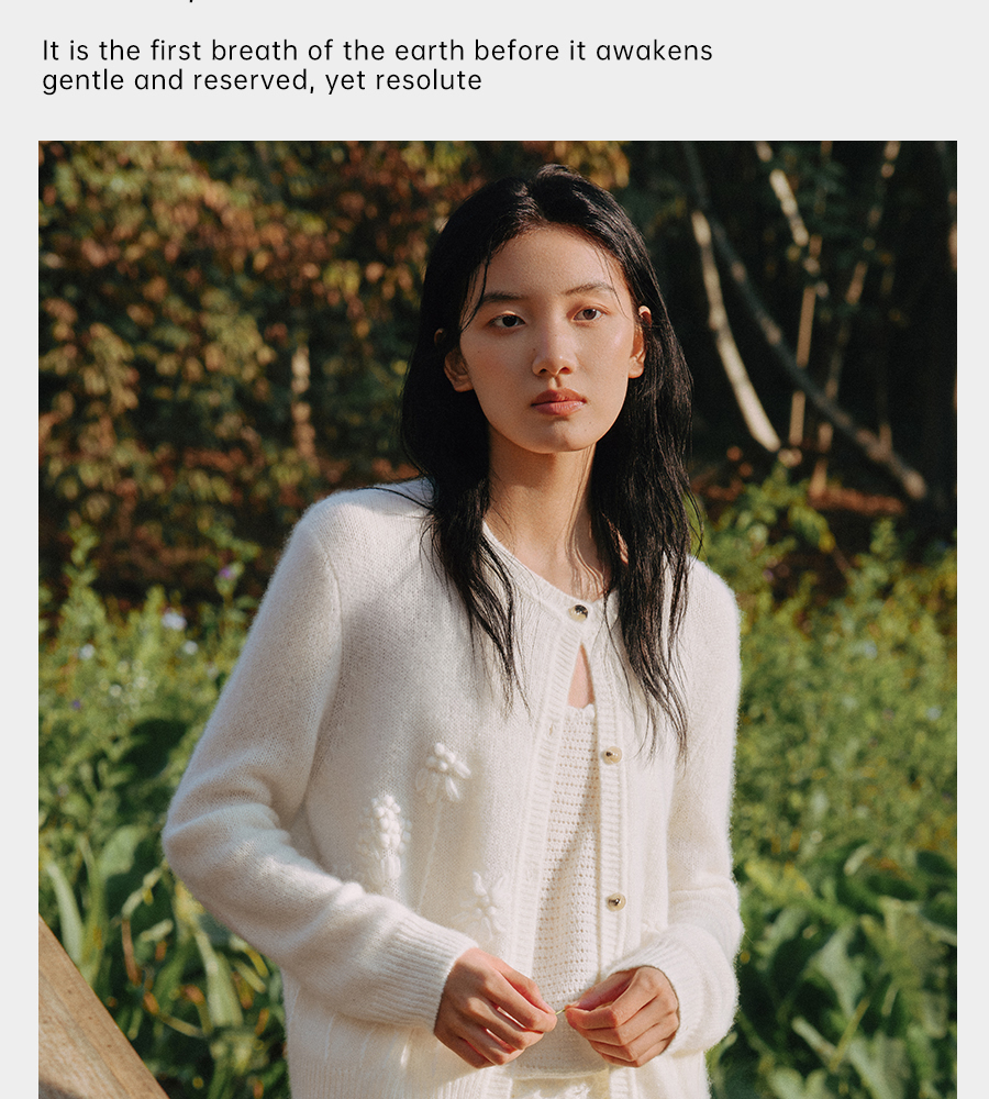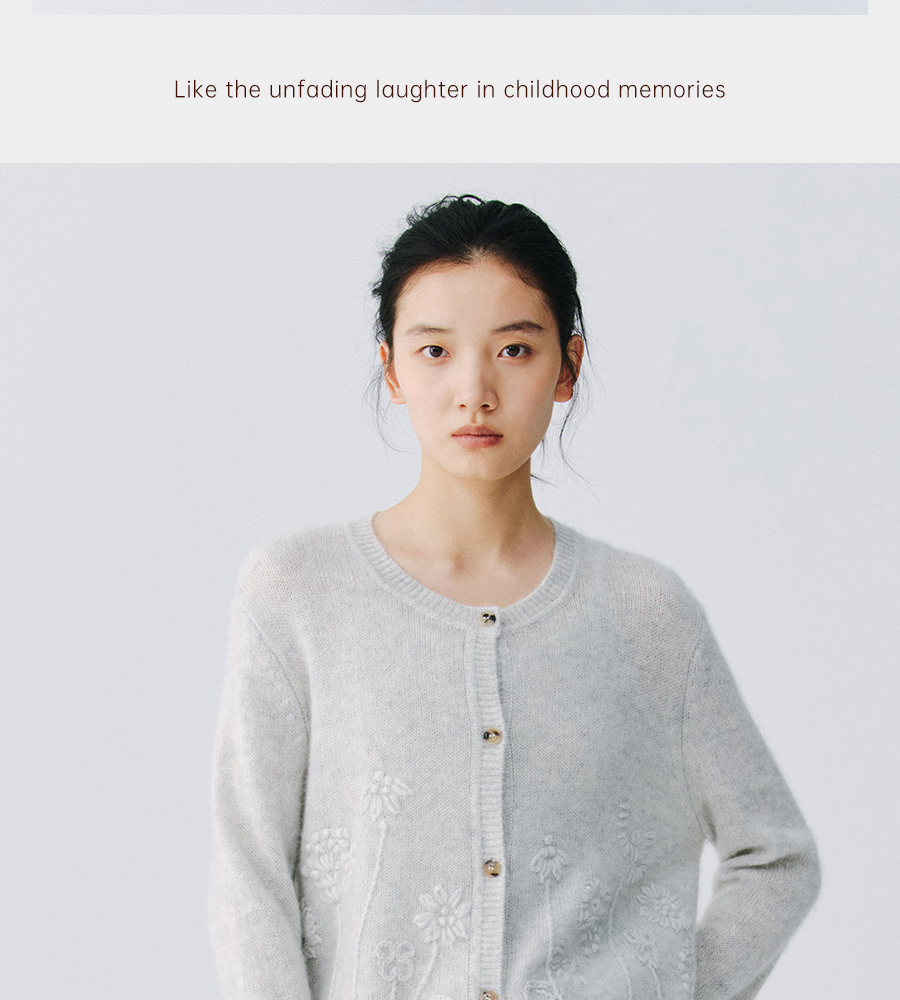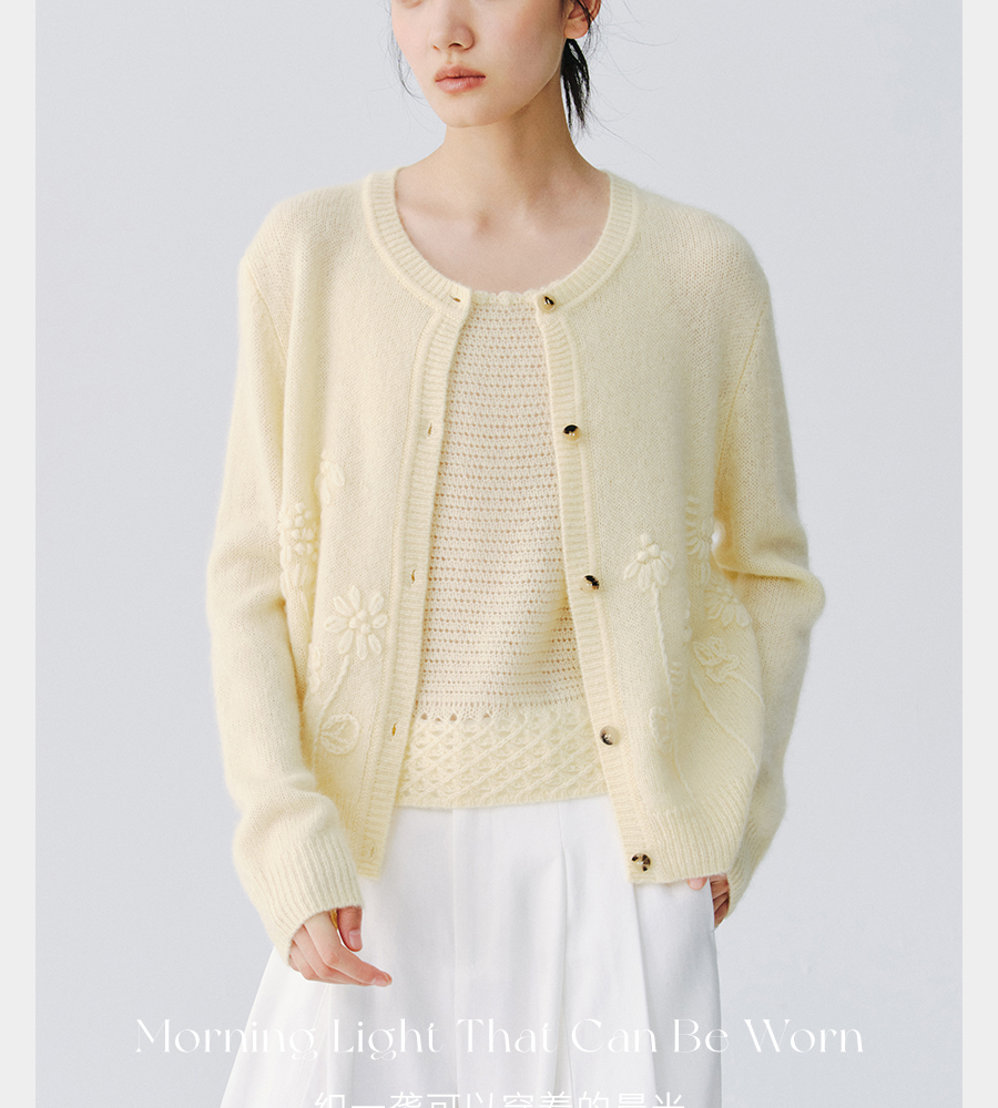 东黎 • 复苏的呼吸 淑气生花 丝绒女士手绣春日精致百搭圆领开衫 6053