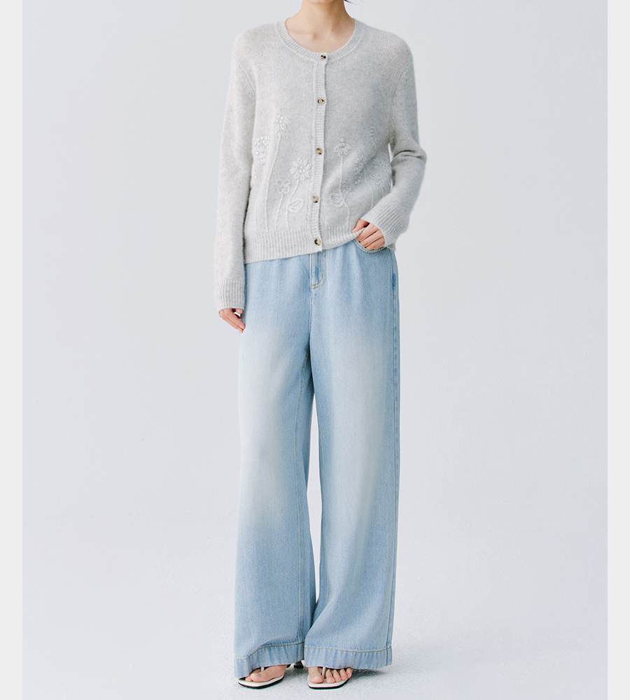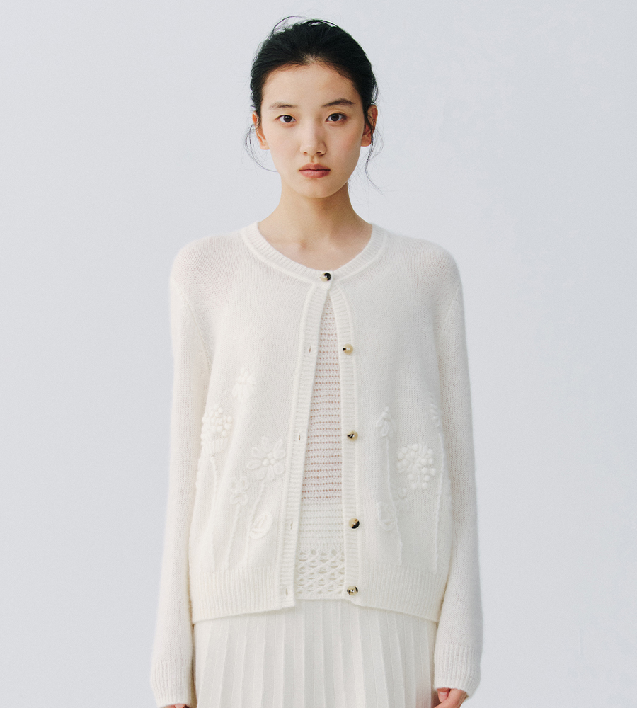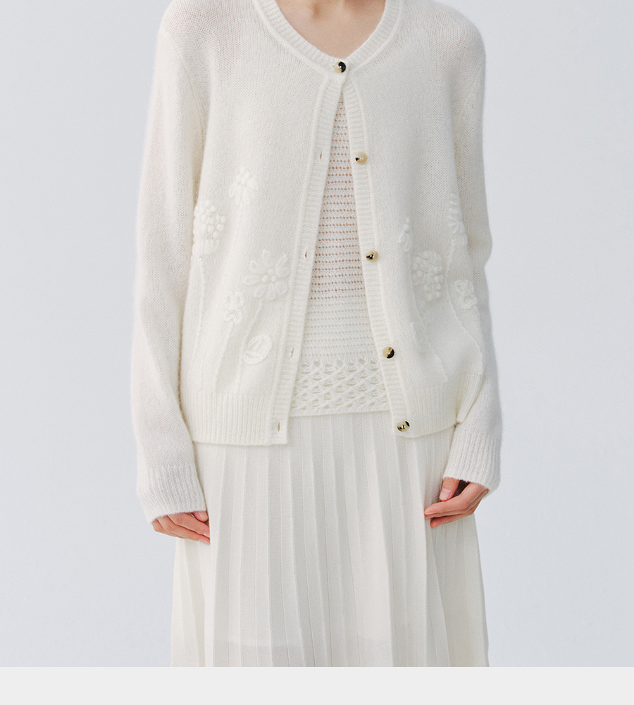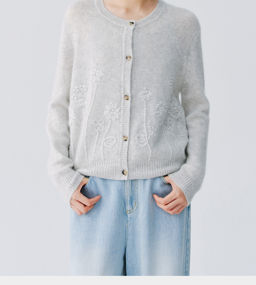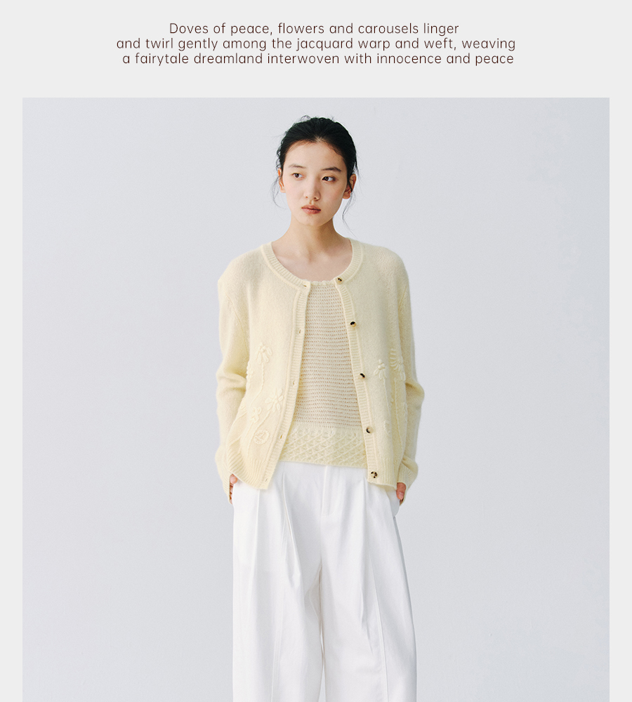 东黎 • 复苏的呼吸 淑气生花 丝绒女士手绣春日精致百搭圆领开衫 6053