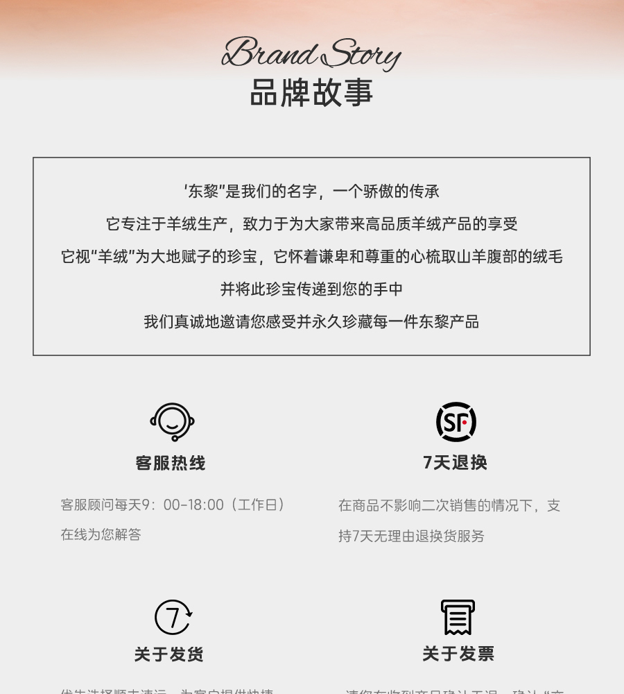 东黎羊绒是赤峰东荣集团自主品牌,自有牧场/羊绒制品全产业链优势,实现了羊绒从“牧场”到“商场”的华丽转变。