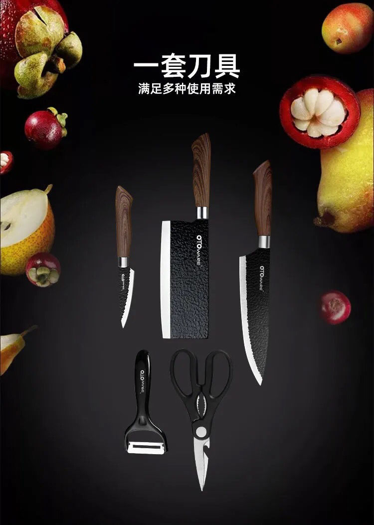 刀具5件套 真空热处理技术 硬度更高 木艺转印手柄 握感舒适 结实耐用