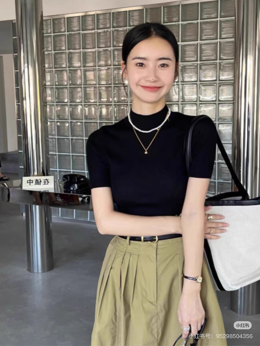 品质款【德国扬子纱】【精纺100细羊毛】半高领针织短袖T恤,可做打底衫,气质搭潮