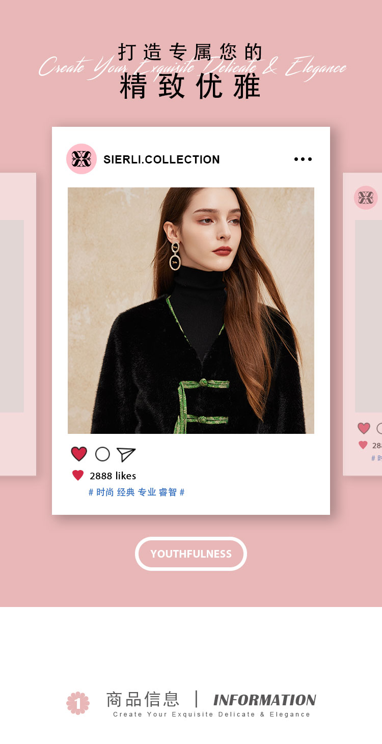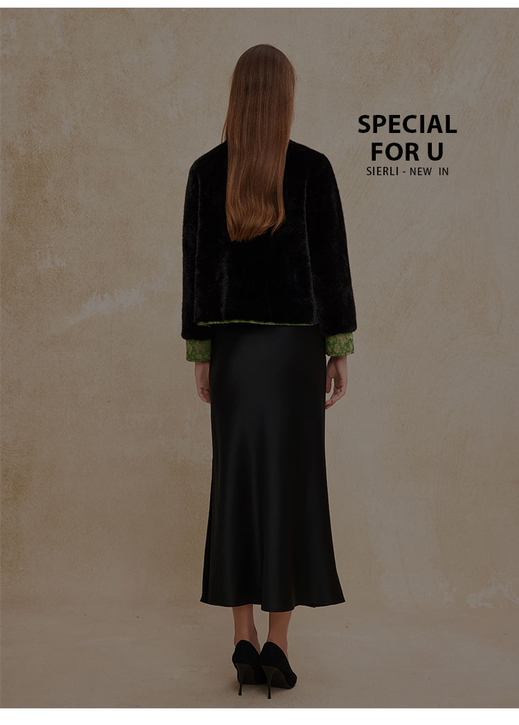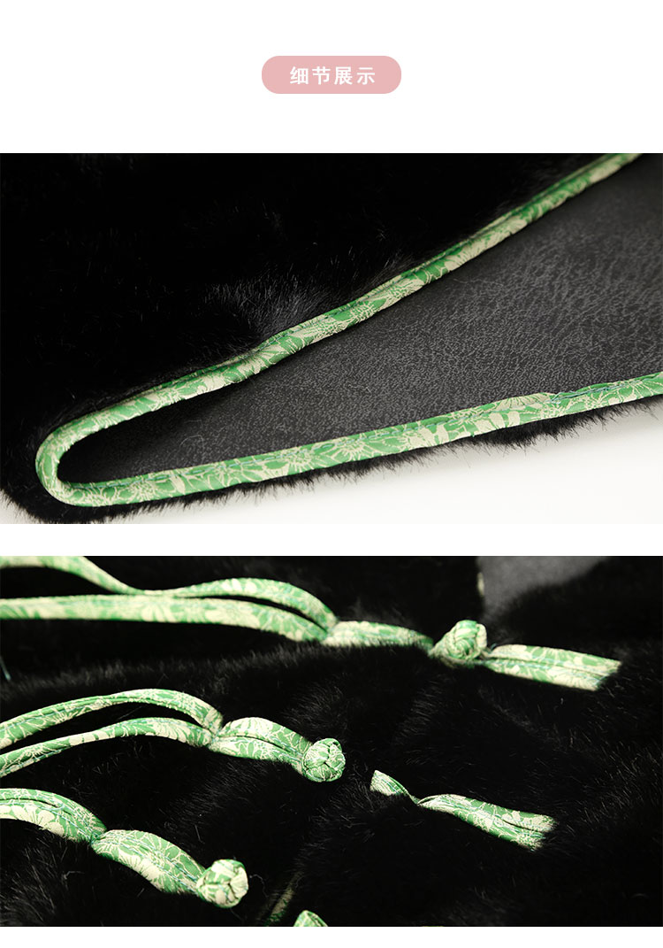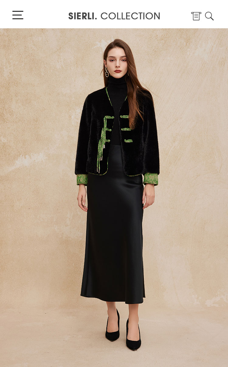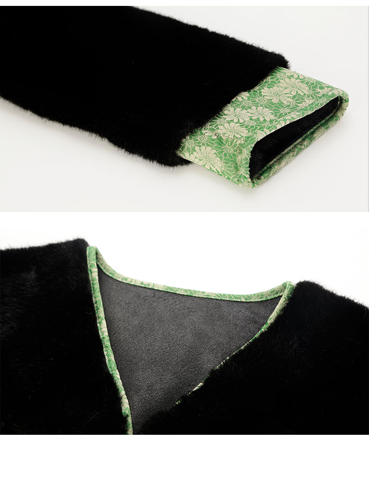 PH113斯尔丽24秋冬时尚新中式国风外套环保皮草盘扣提花袖口短毛绒上衣