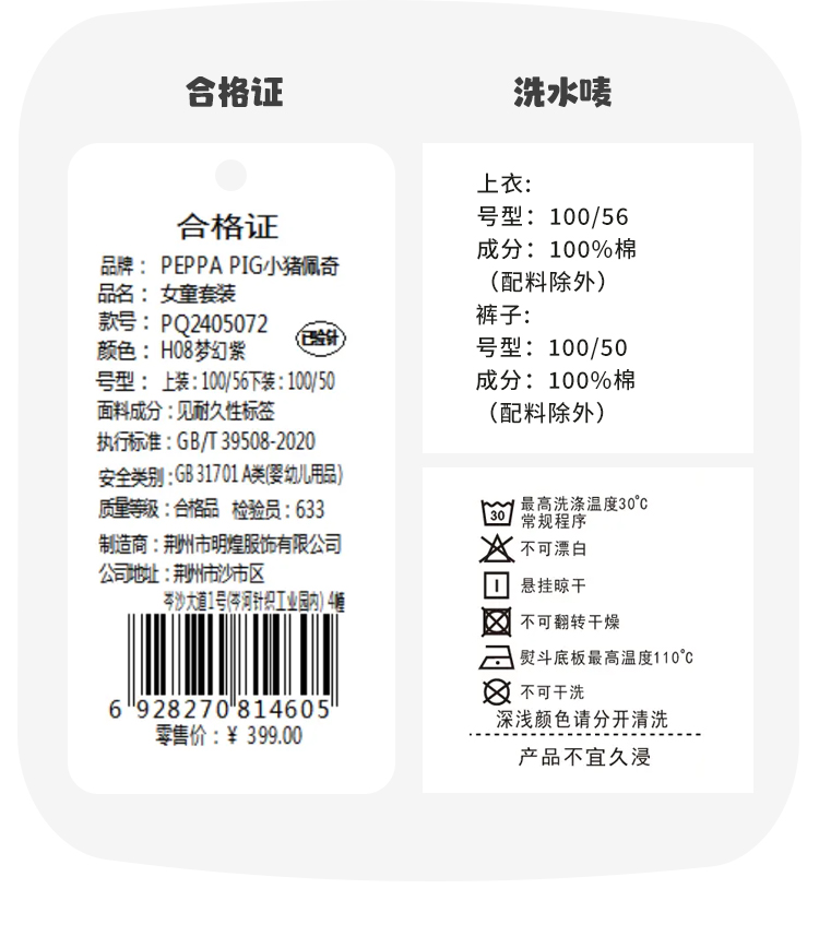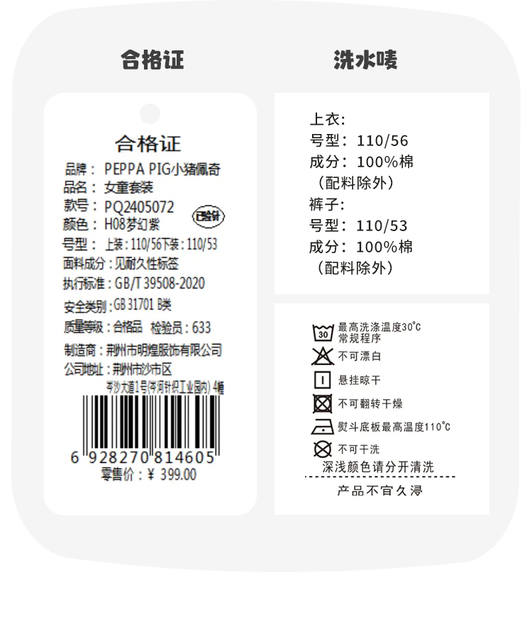 【两件套】【90-140】【小猪佩奇】女童春秋卫衣卫裤套装