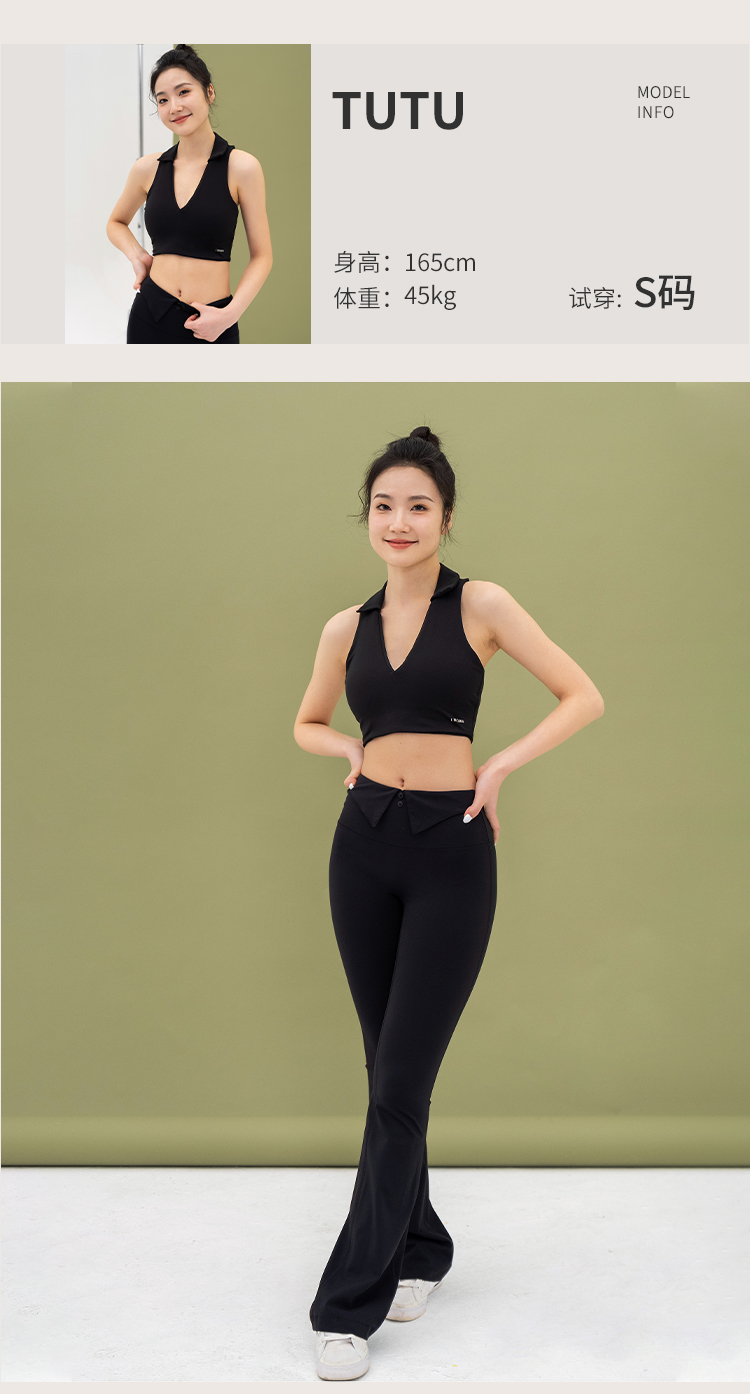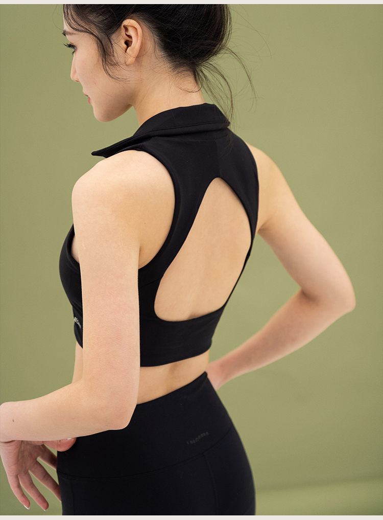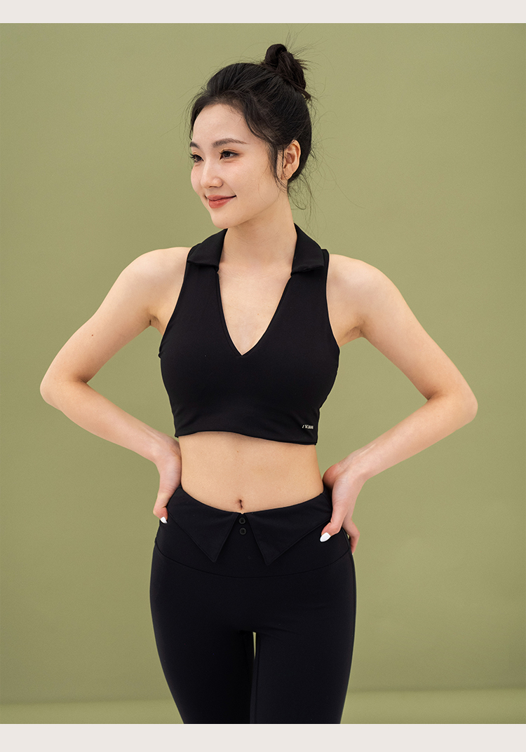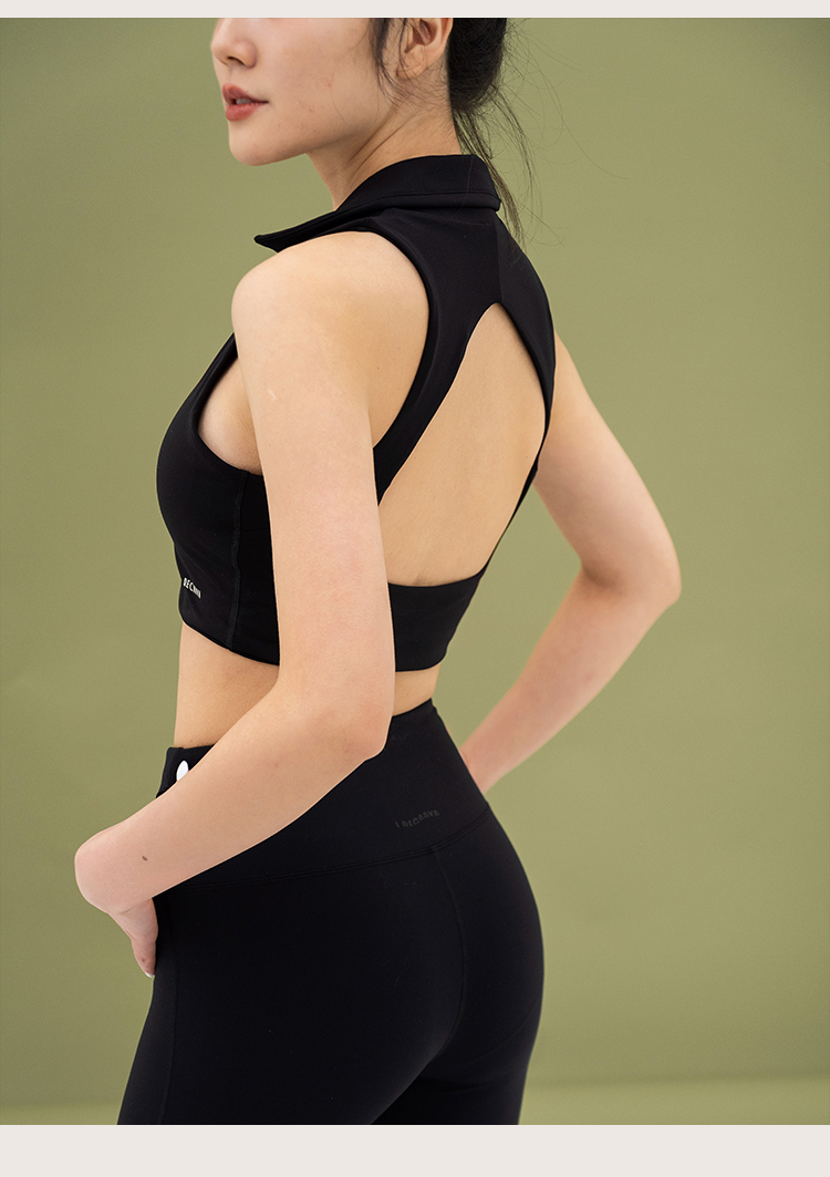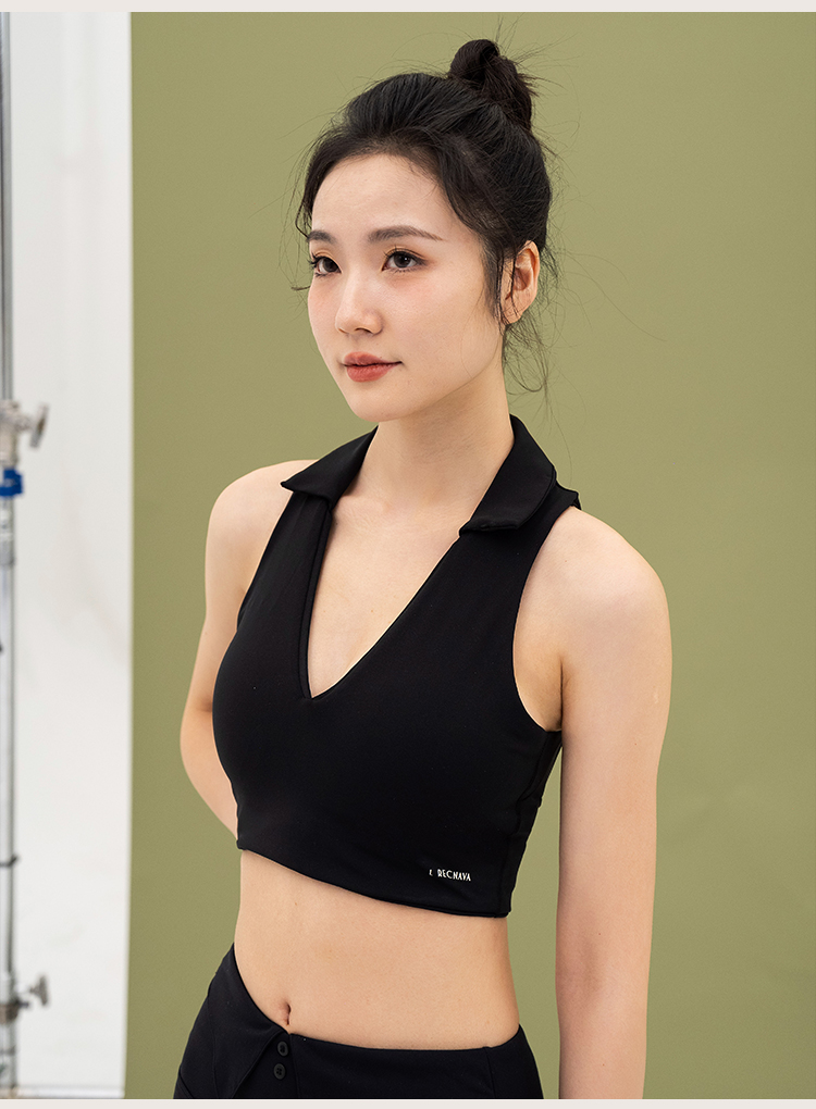L RECNAVA 宽肩带翻领+深V运动文胸 性感形体瑜伽健身短款背心 可拆卸胸垫 副乳友好