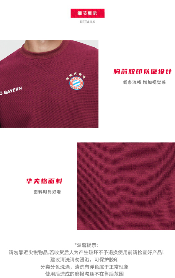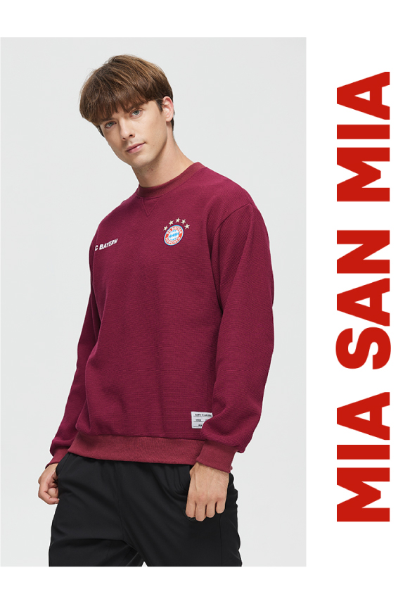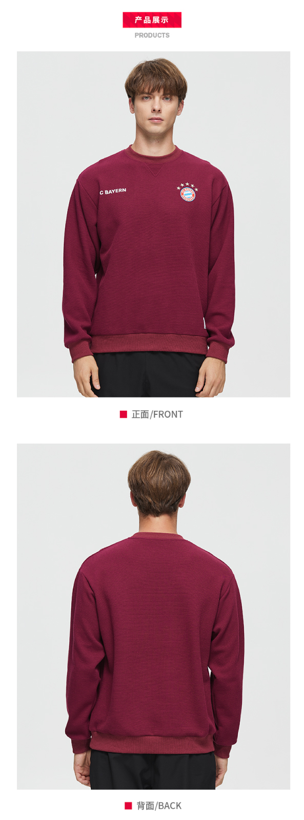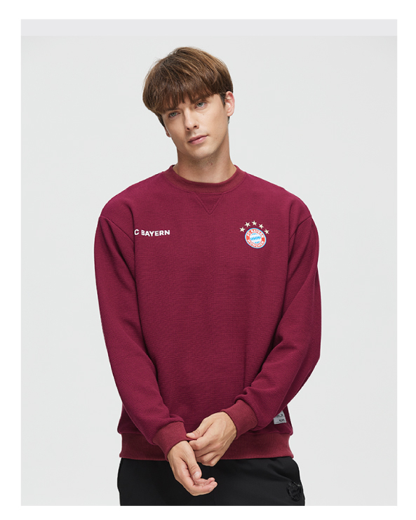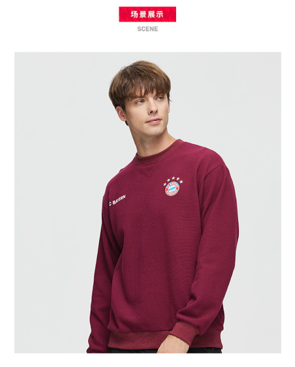 【官方正版】拜仁慕尼黑足球俱乐部|户外长袖酒红华夫格男卫衣