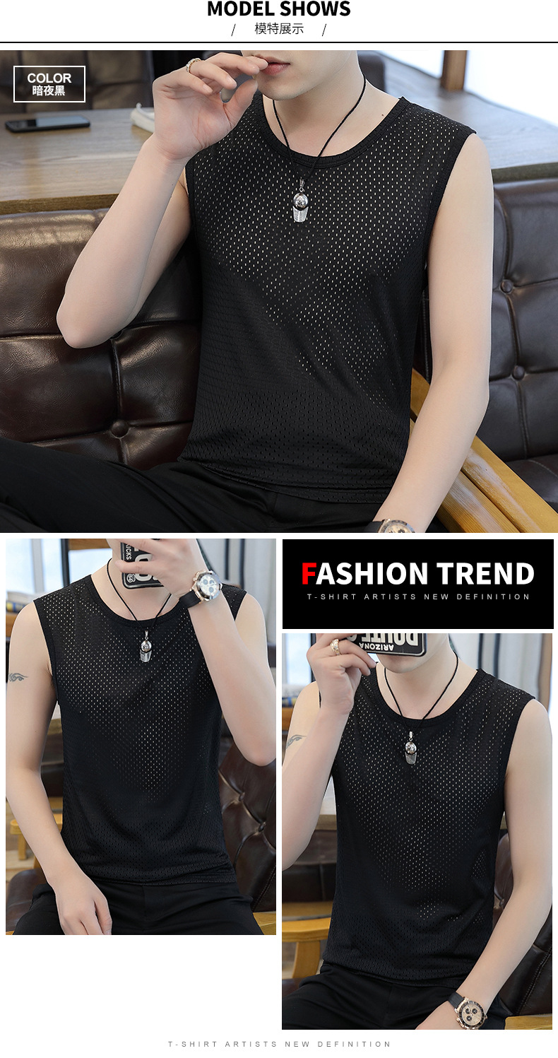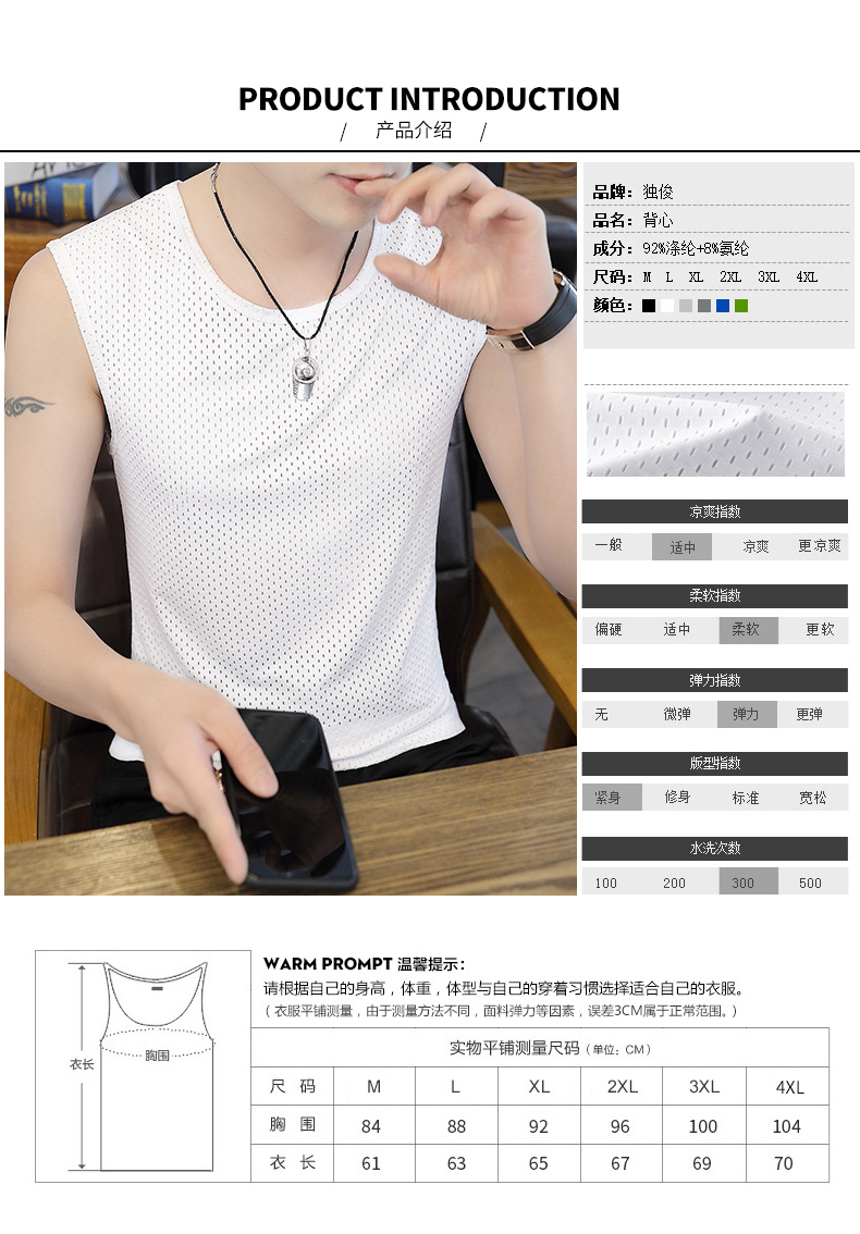 【夏季新款冰丝男士背心】网眼透气坎肩 无痕紧身运动无袖马甲男 父亲节 商品图10