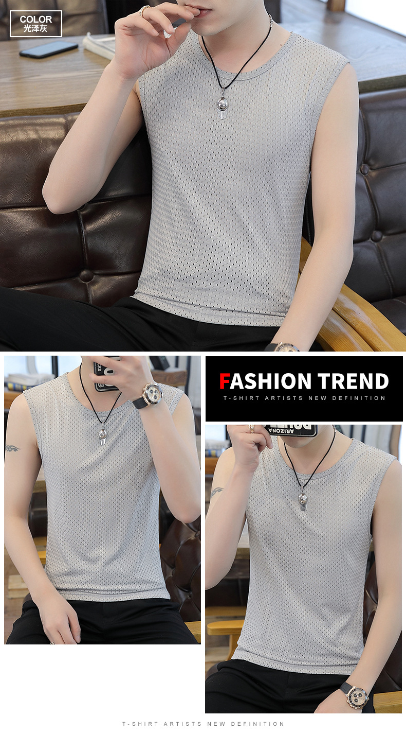 【夏季新款冰丝男士背心】网眼透气坎肩 无痕紧身运动无袖马甲男 父亲节 商品图5