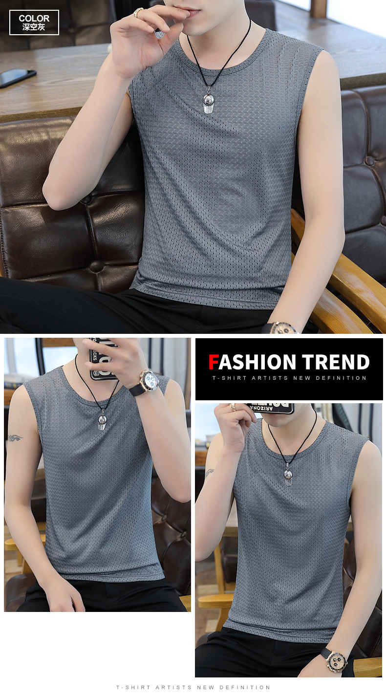 【夏季新款冰丝男士背心】网眼透气坎肩 无痕紧身运动无袖马甲男 父亲节 商品图8