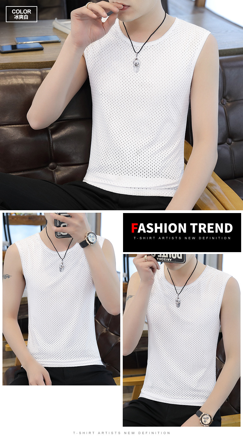 【夏季新款冰丝男士背心】网眼透气坎肩 无痕紧身运动无袖马甲男 父亲节 商品图0
