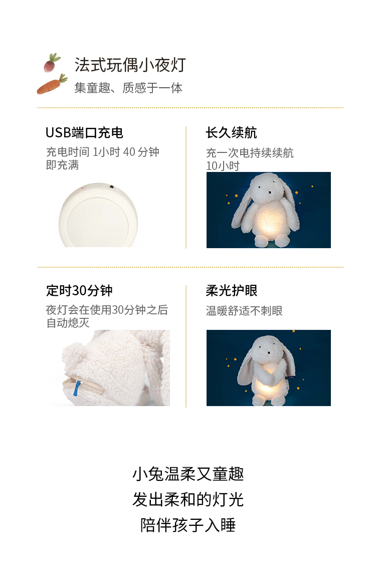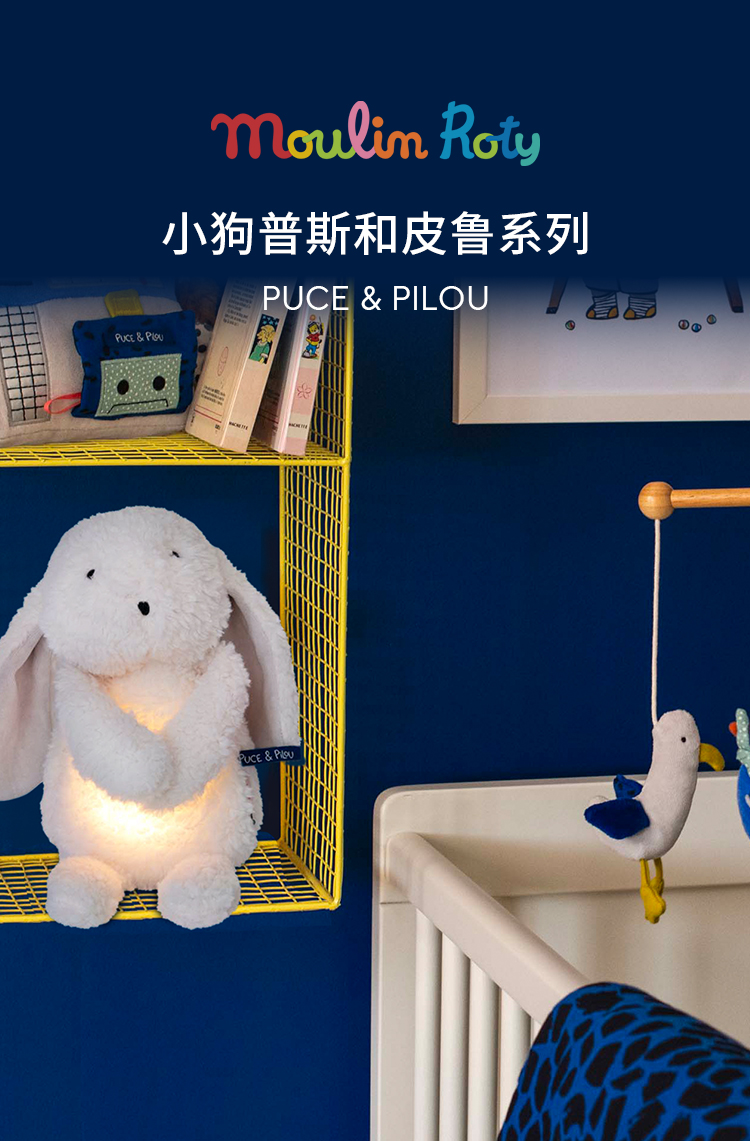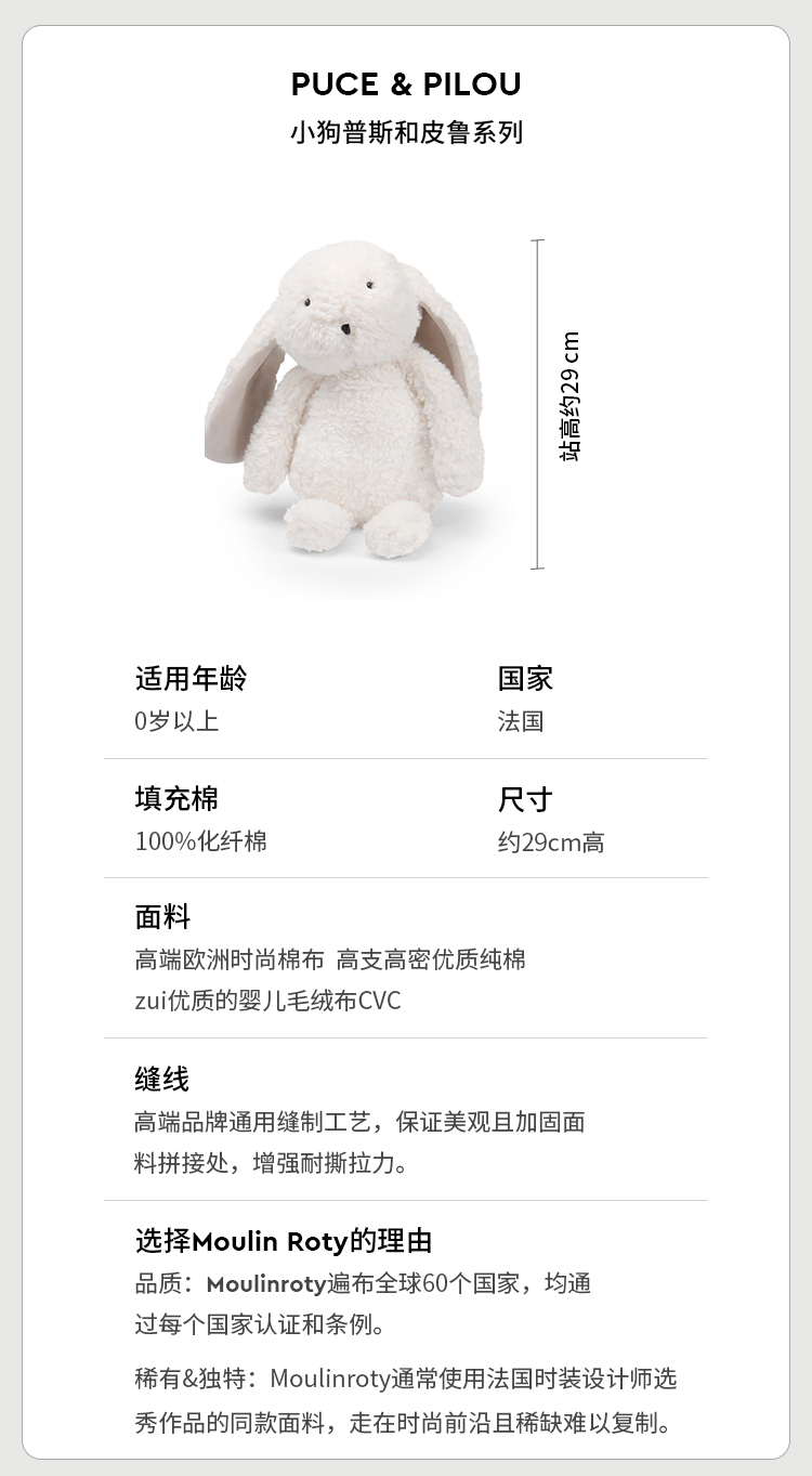 Moulin Roty 小兔安抚玩偶礼盒 多功能玩偶 适合年龄0岁+ 安抚玩具 小狗普斯与皮鲁系列 法国玩具 684030
