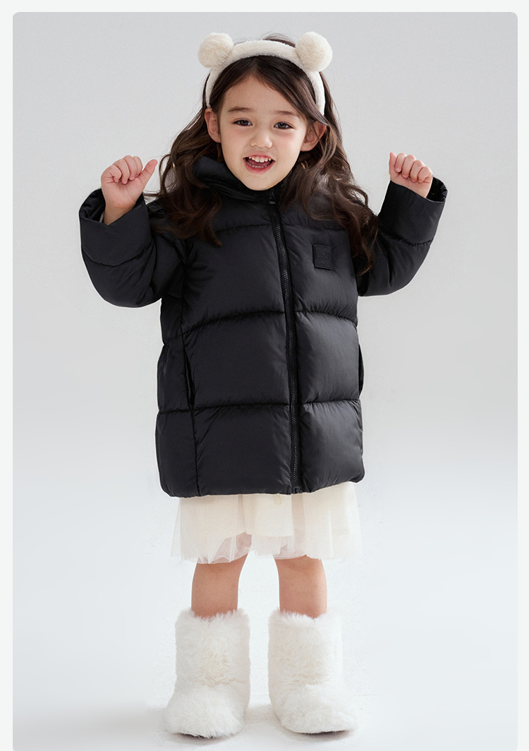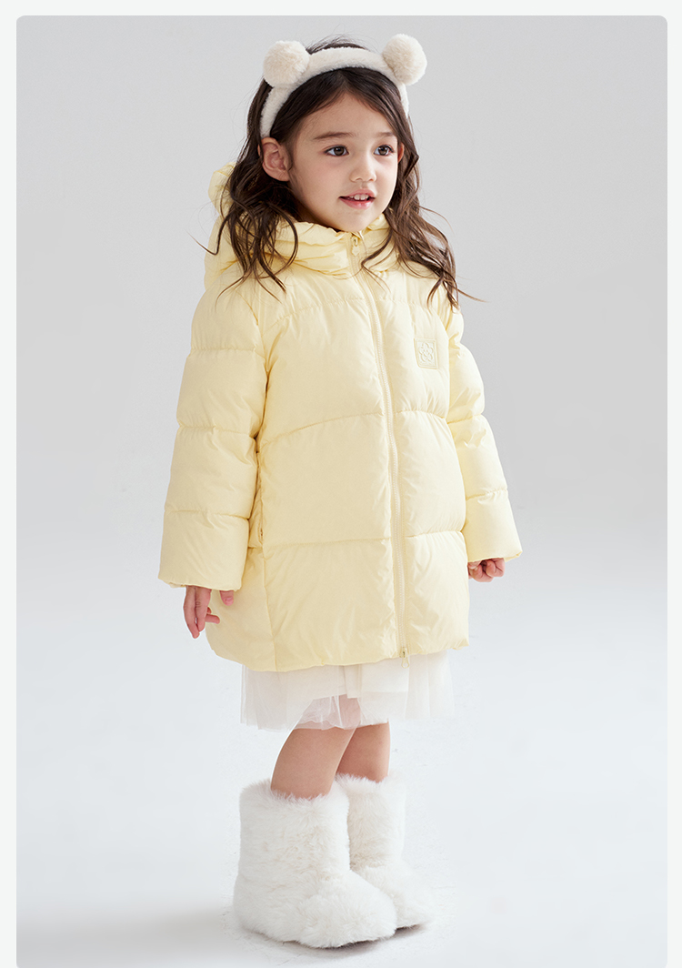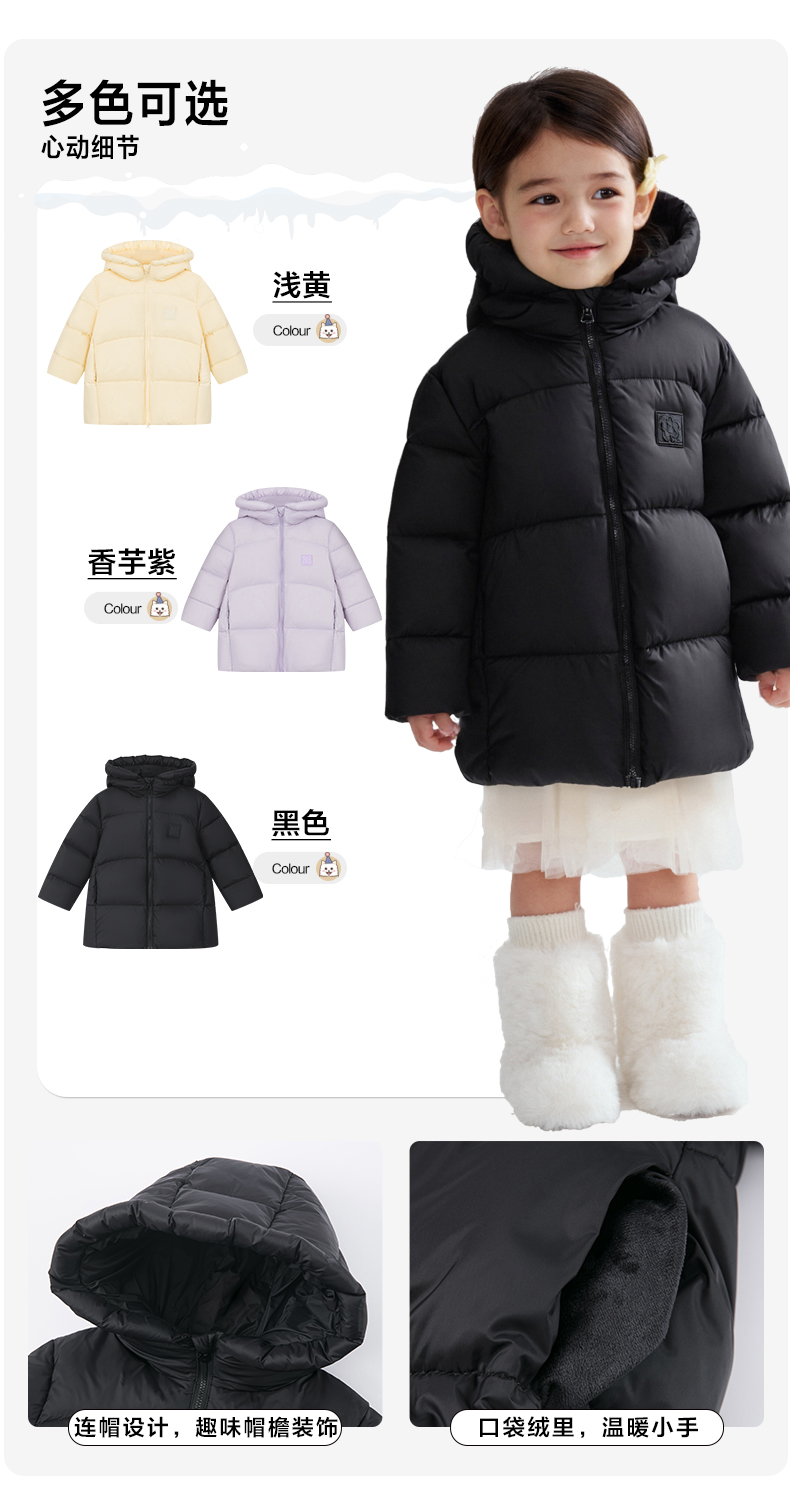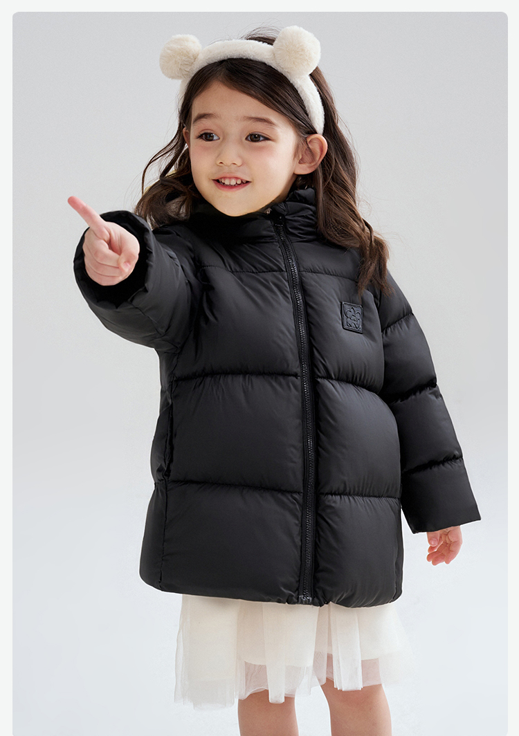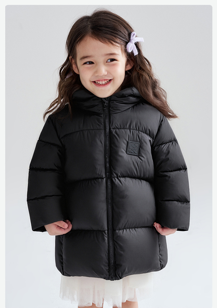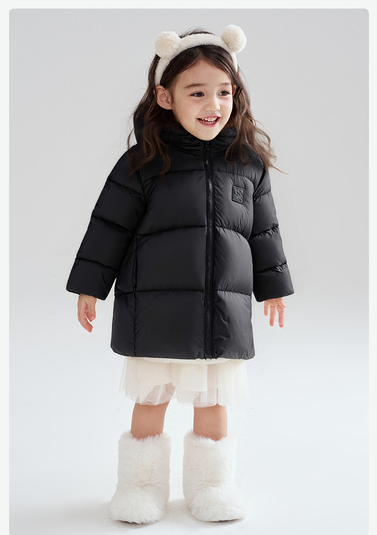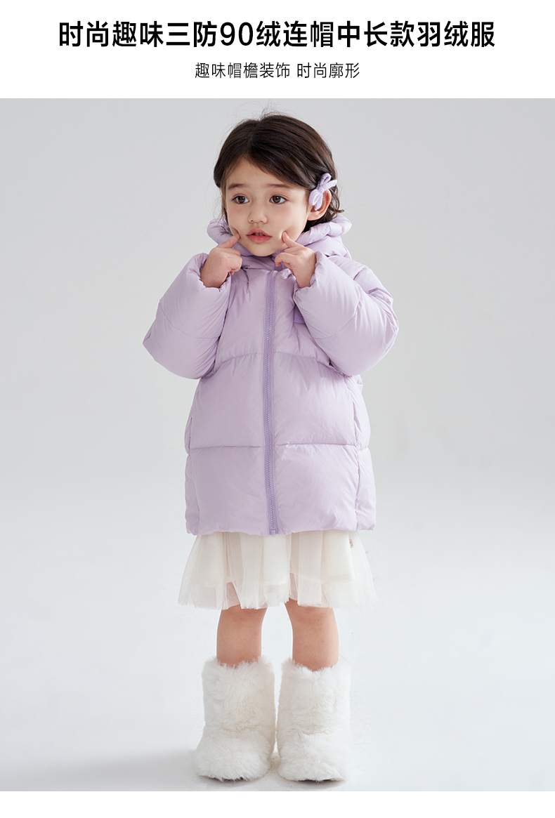 笛莎Deesha 2025冬季女童时尚趣味三防90绒连帽中长款羽绒服
