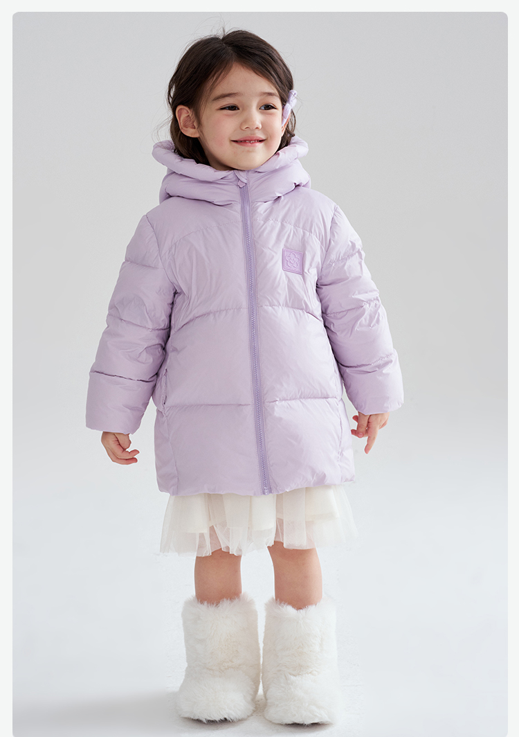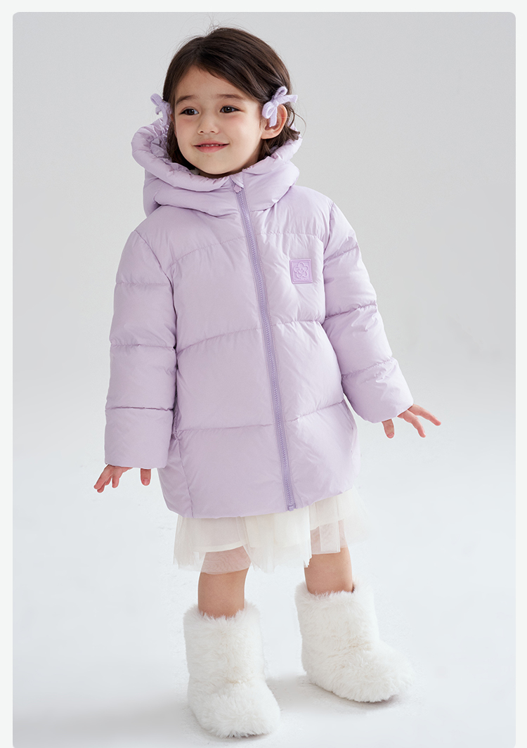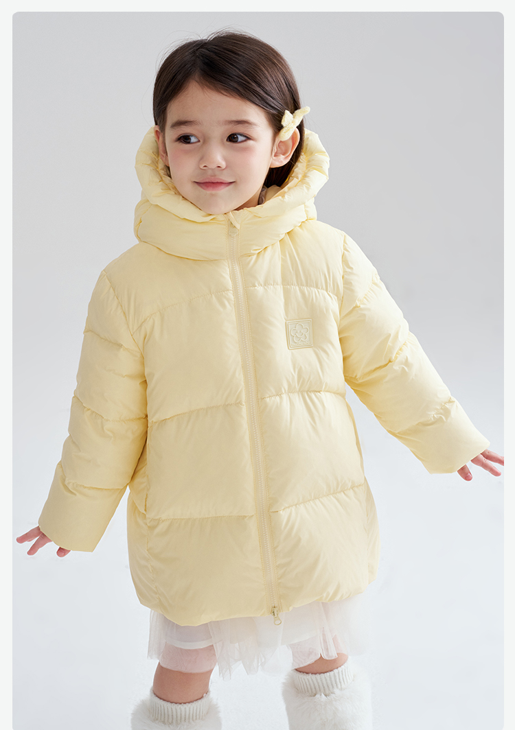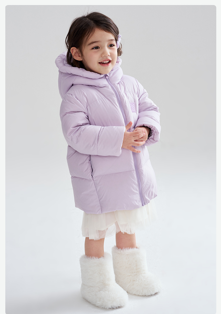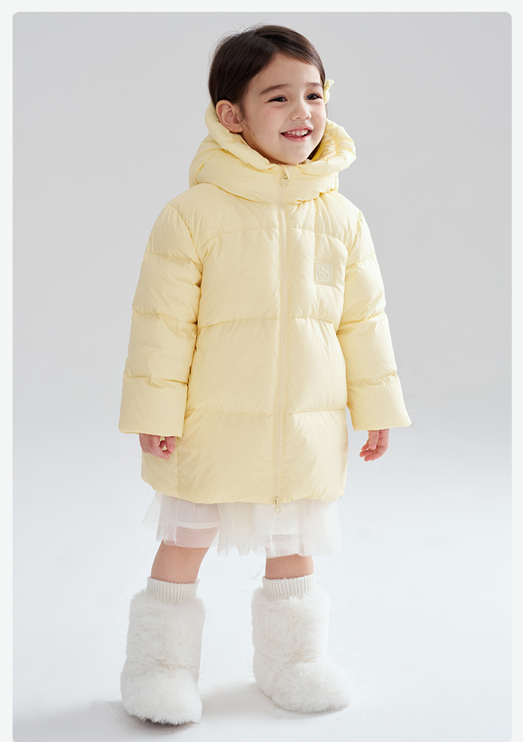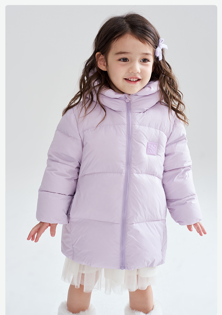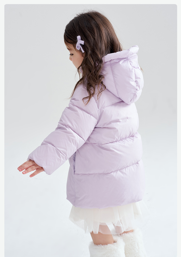笛莎Deesha 2025冬季女童时尚趣味三防90绒连帽中长款羽绒服