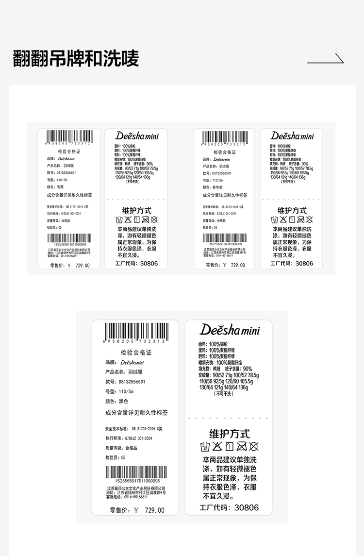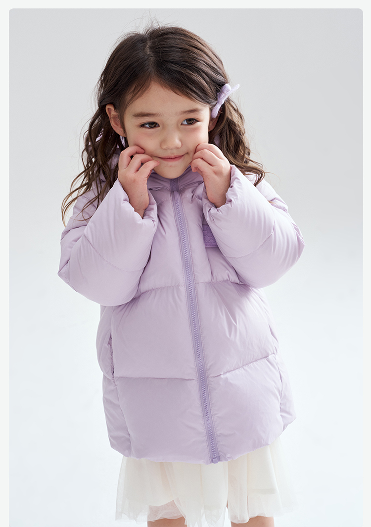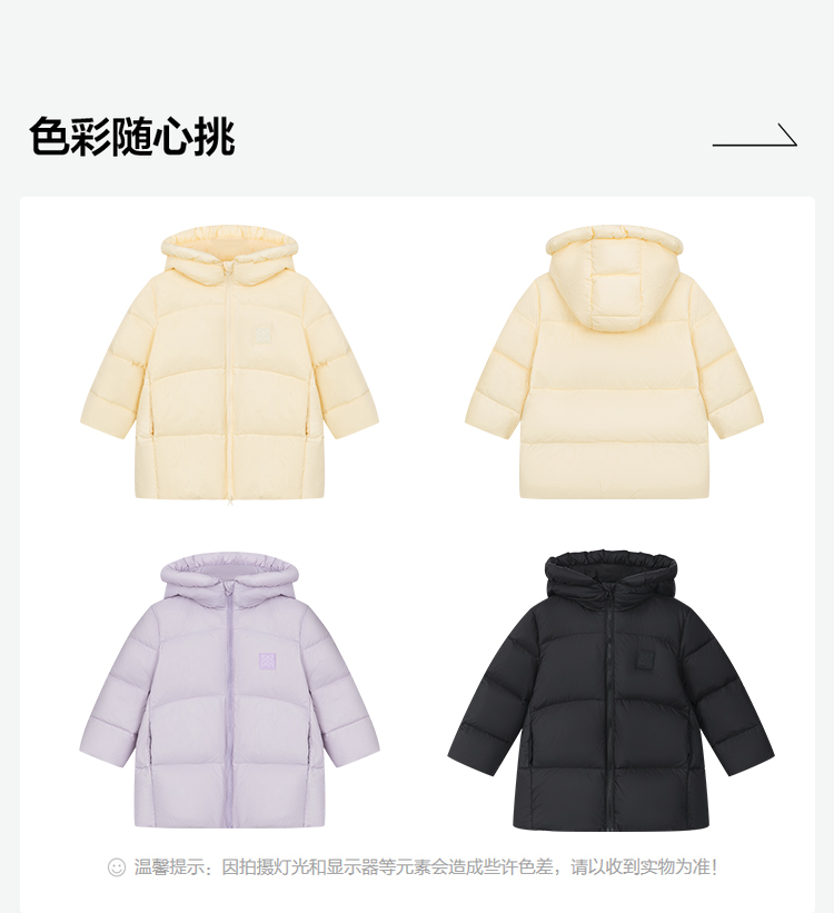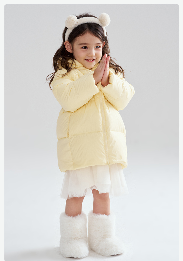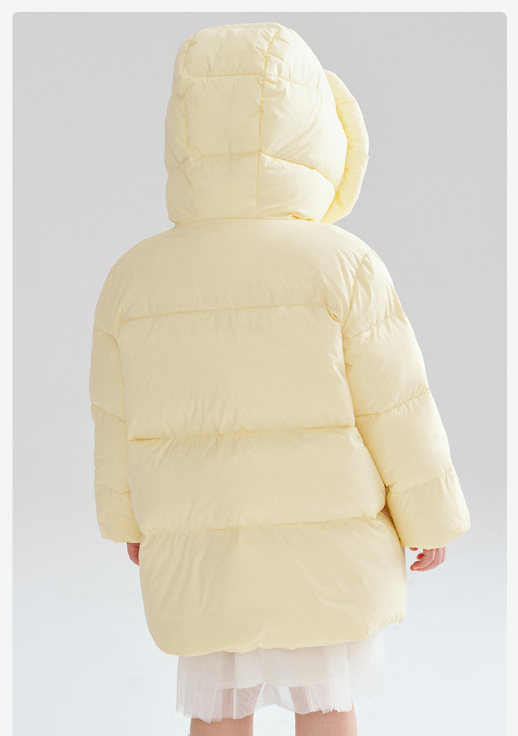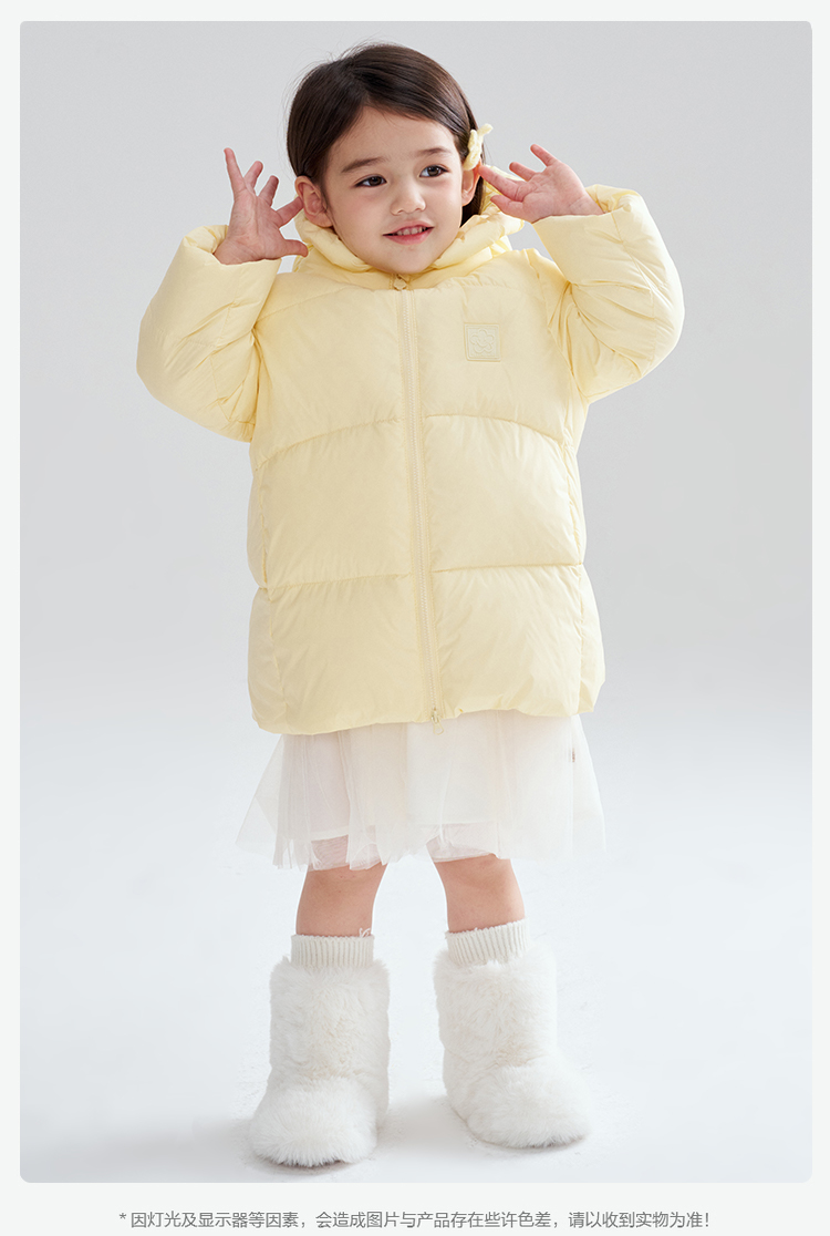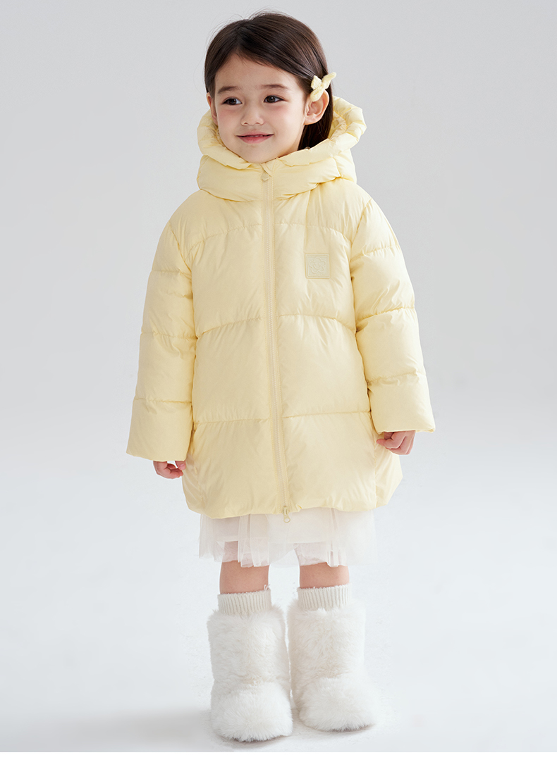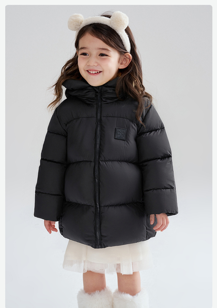 笛莎Deesha 2025冬季女童时尚趣味三防90绒连帽中长款羽绒服