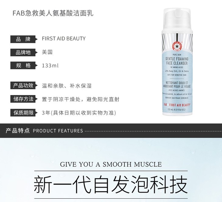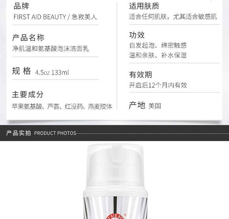 【一般贸易】FIRST AID BEAUTY/急救美人 氨基酸洁面乳 133ML