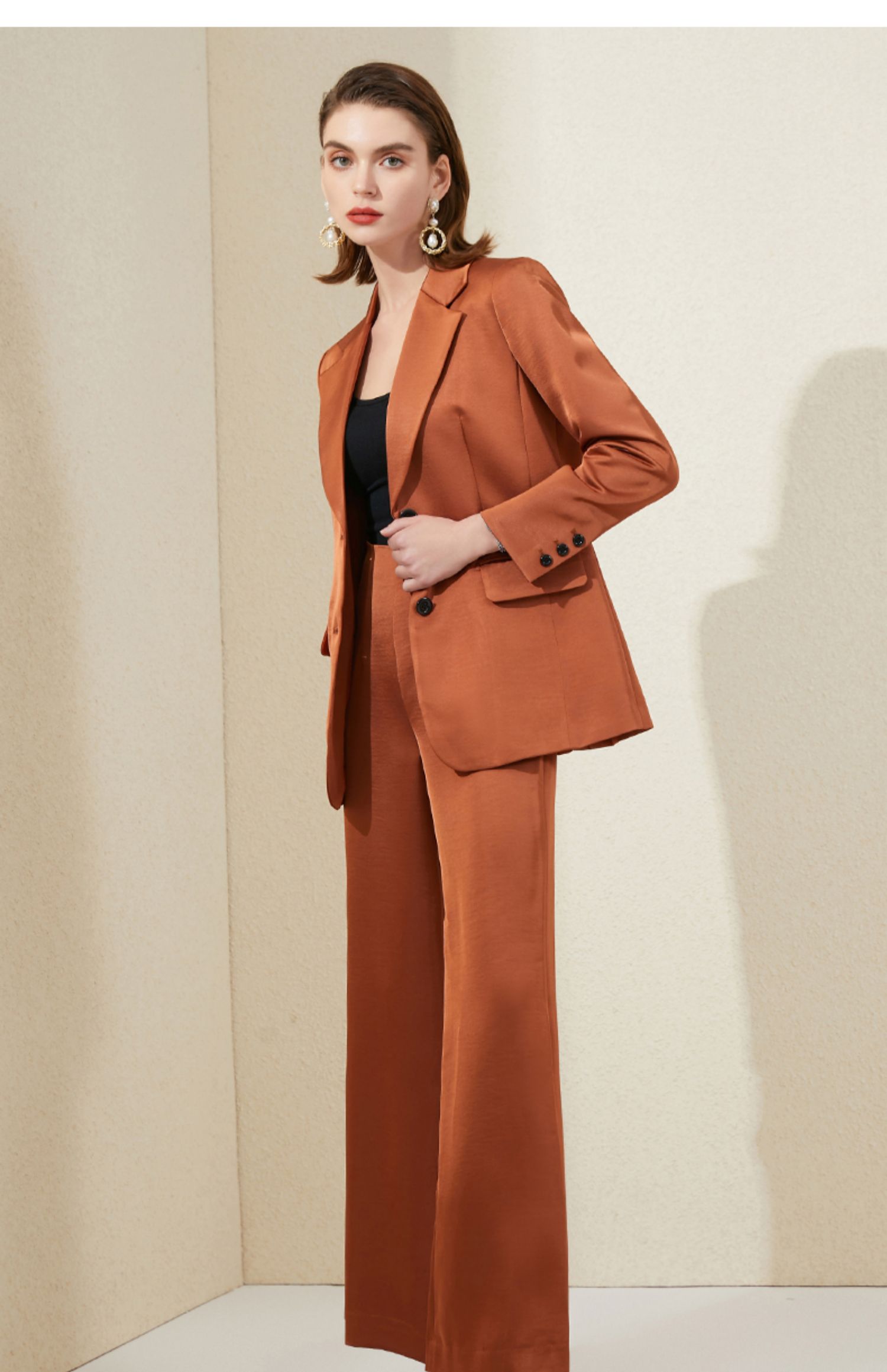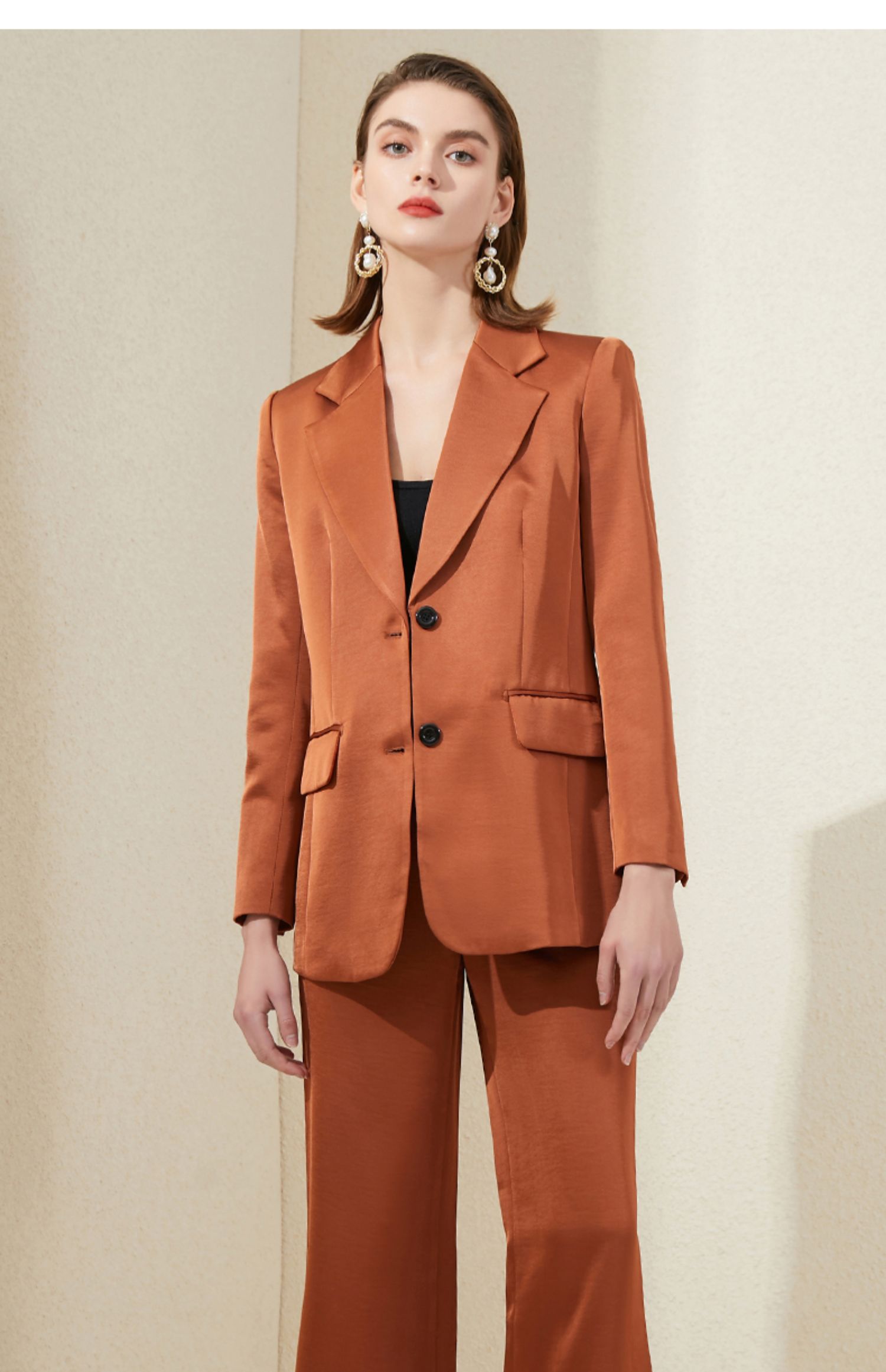 IWY/橘色西装套装女时尚洋气主持人正装通勤商务高端职业装气质女神范203018c1+p2