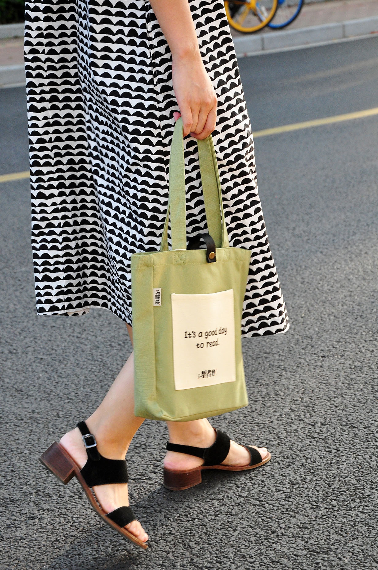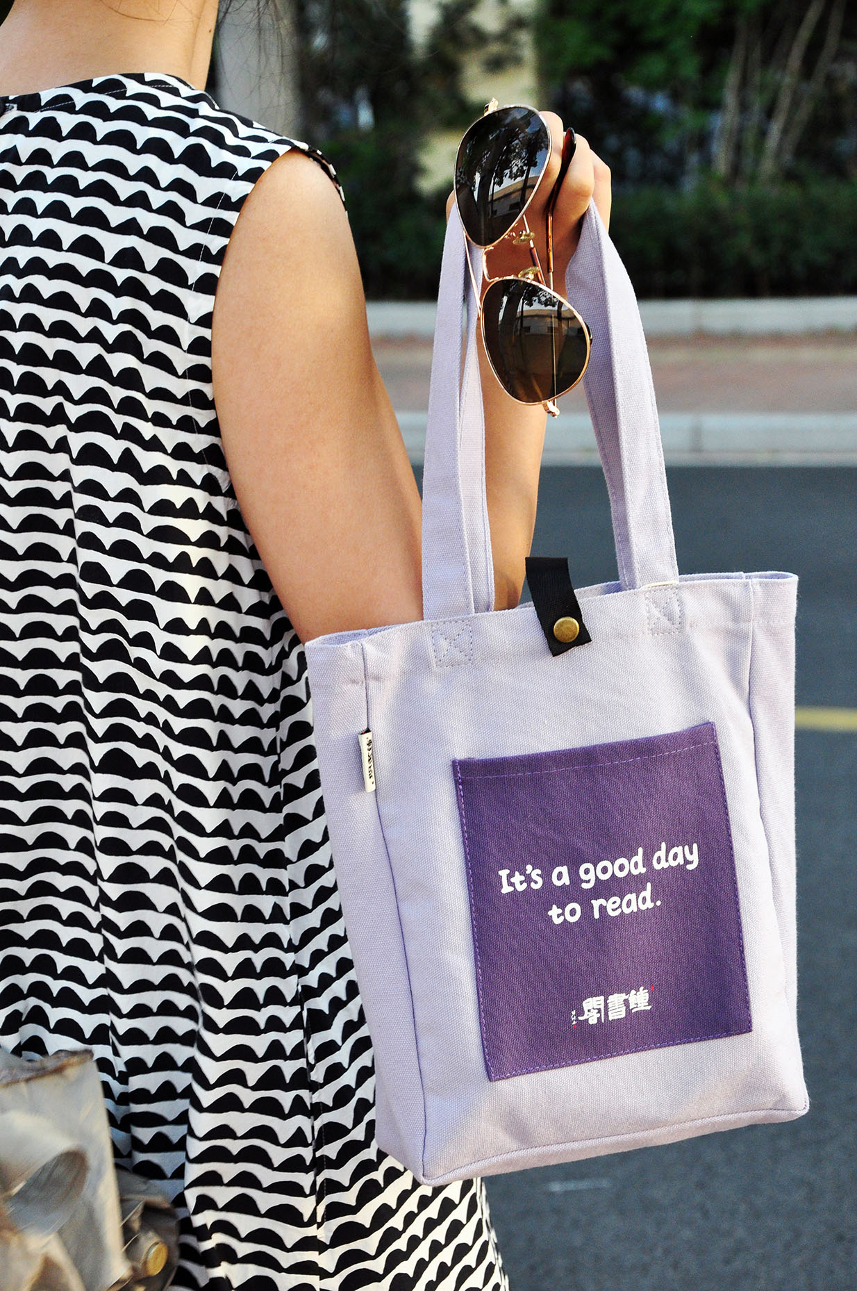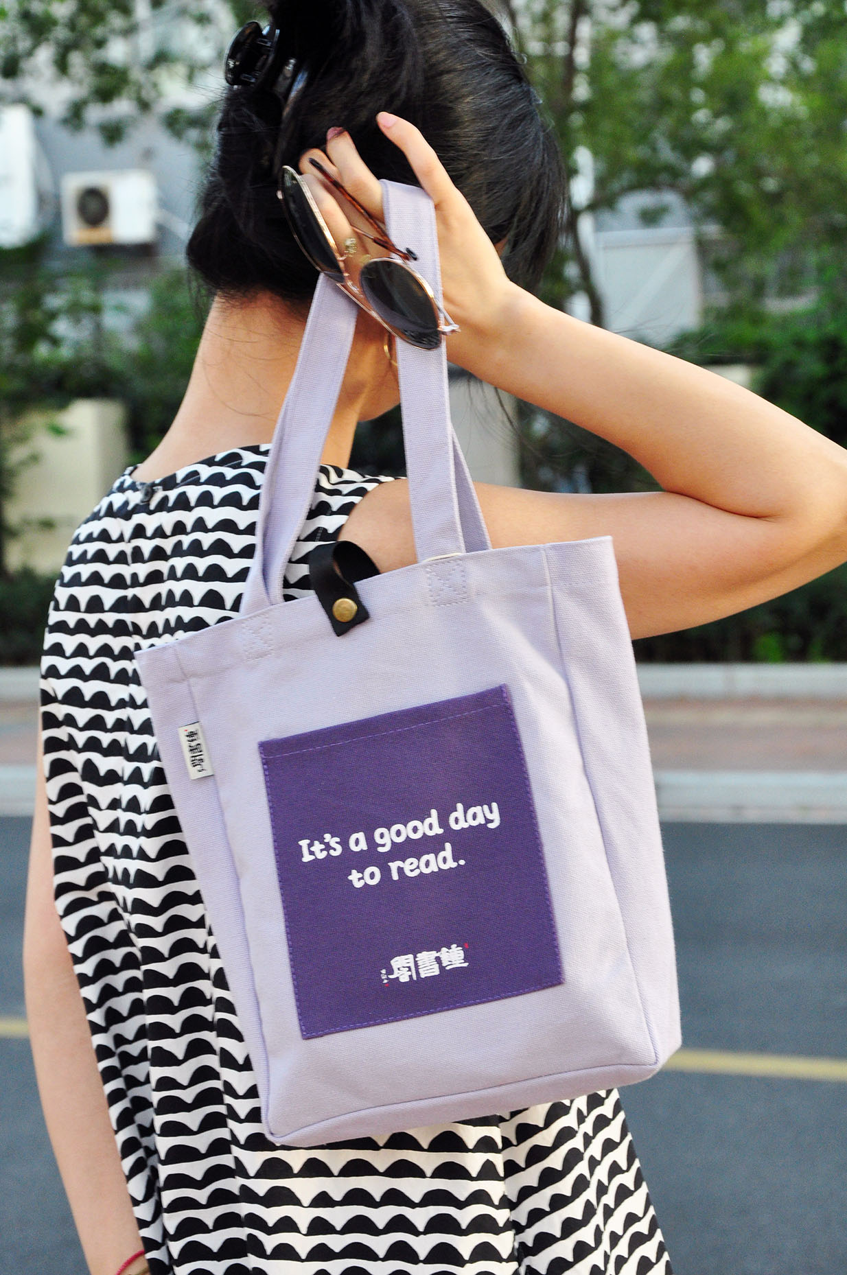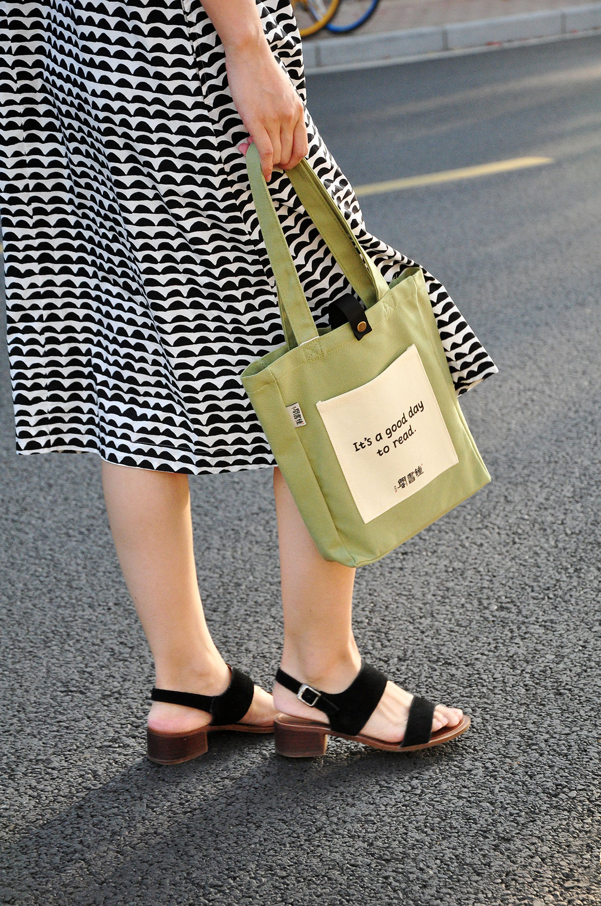 钟书阁好日子小布袋牛油果绿-丁香紫-彩霞红3色可选小书袋小清新韩版白色环保袋女单肩斜挎包包