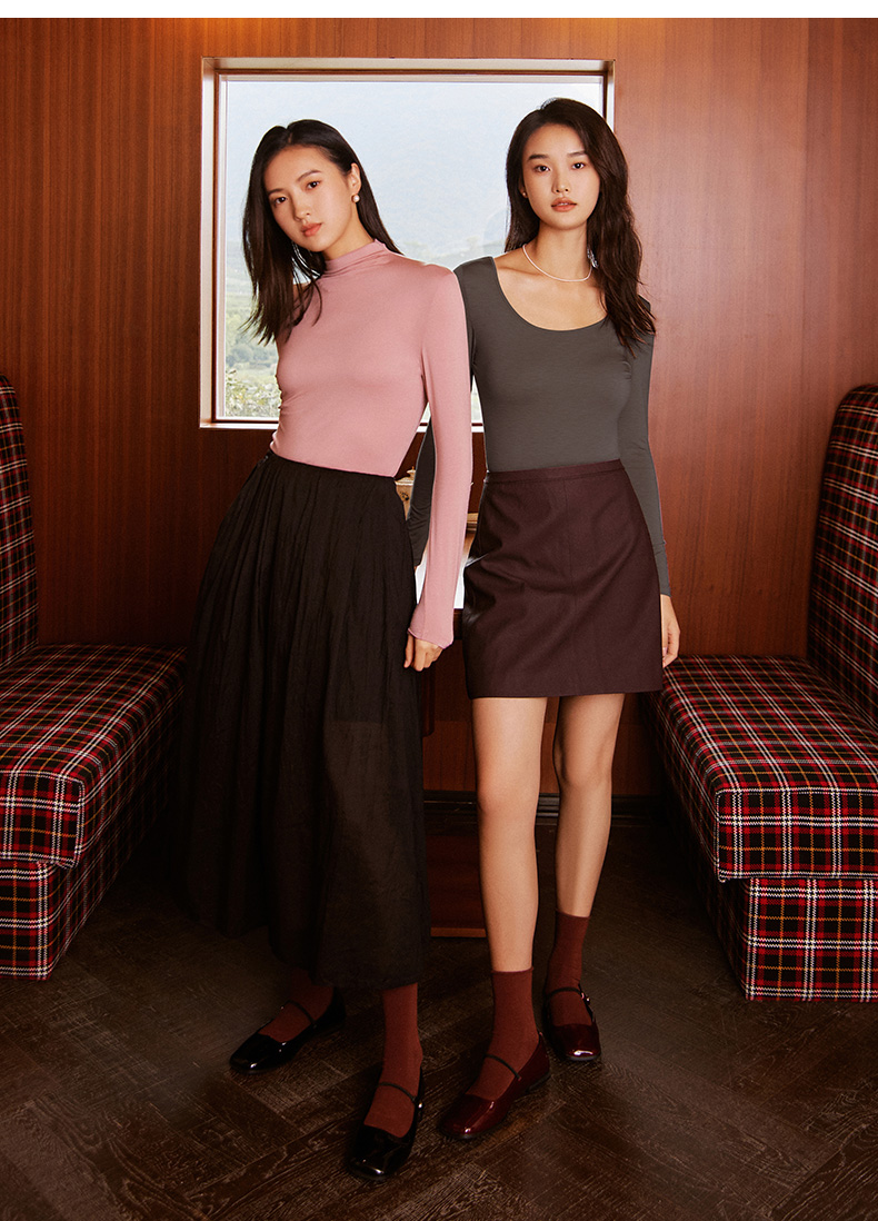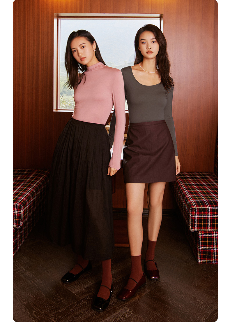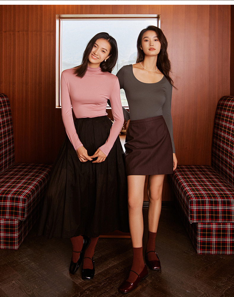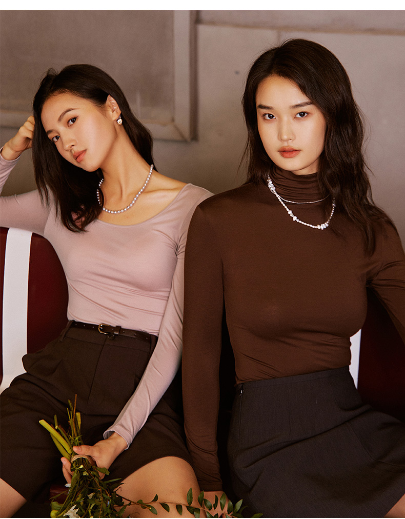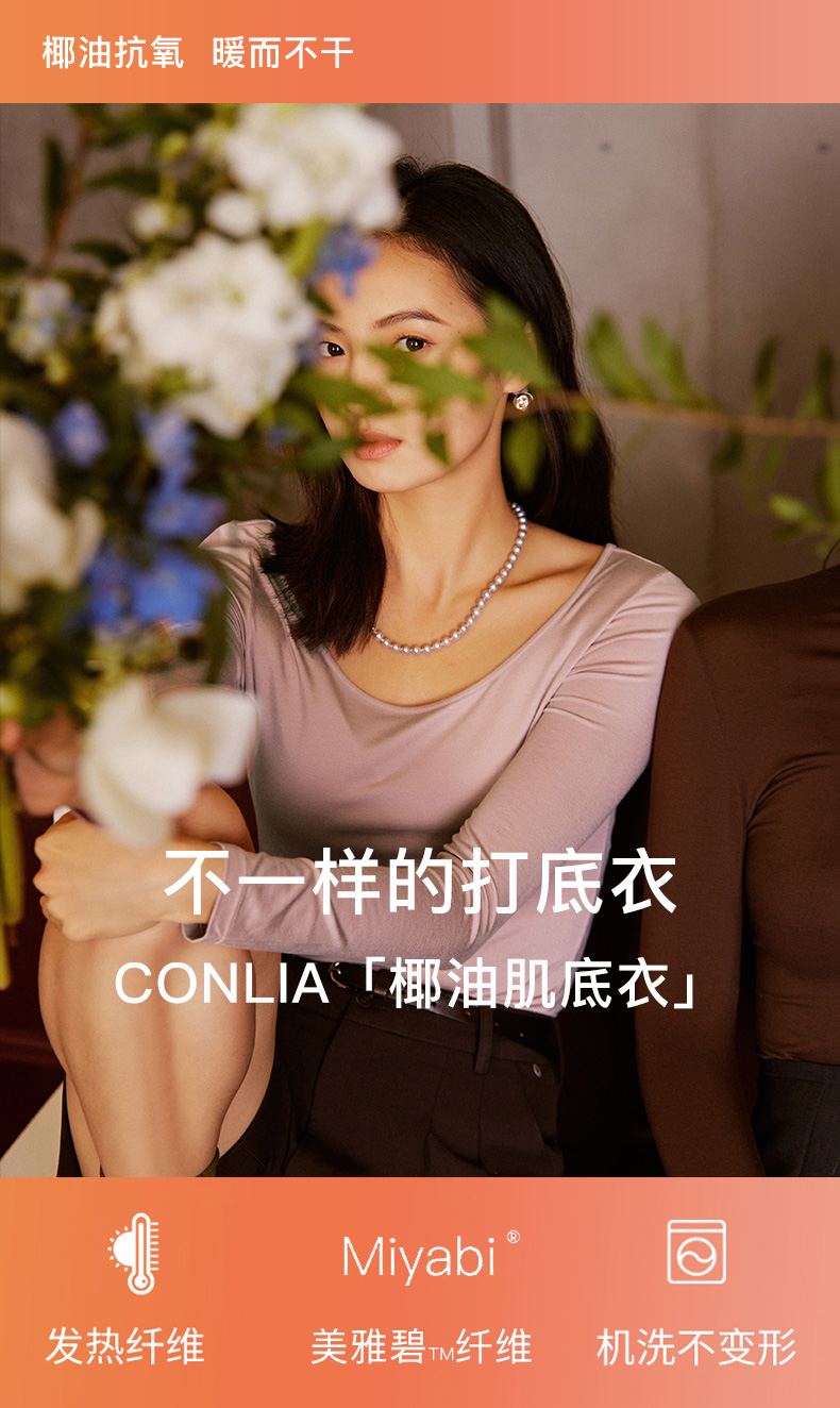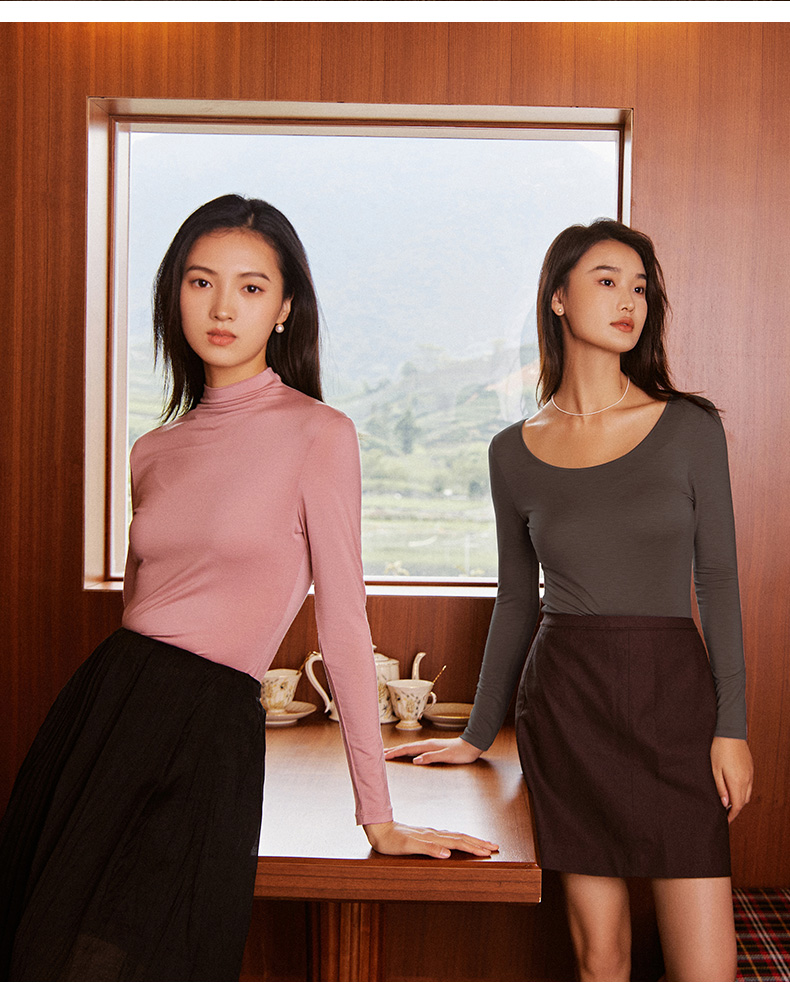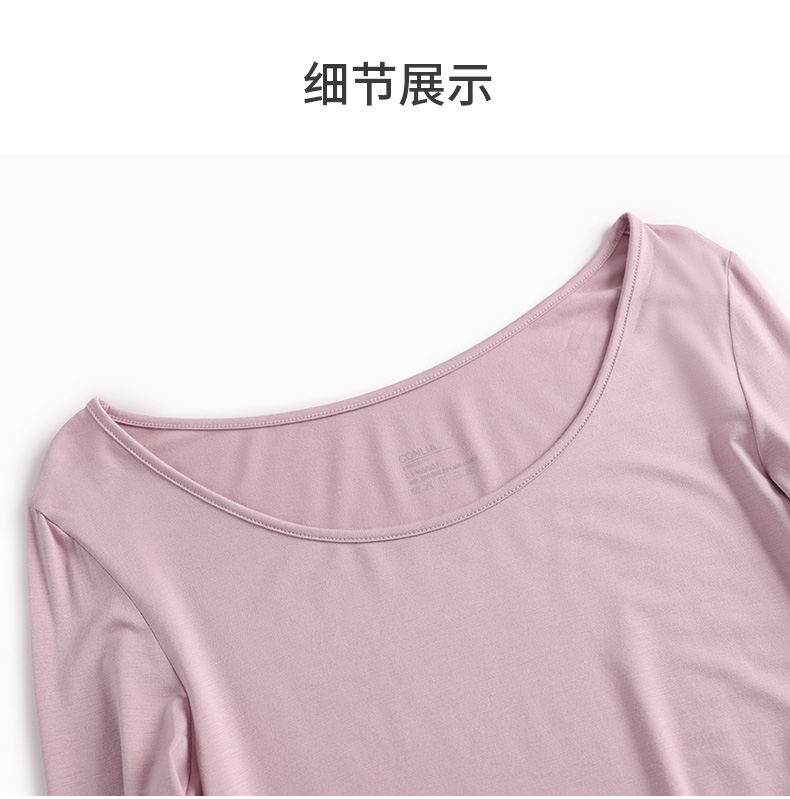 康妮雅保暖打底衫女士内衣 纯色圆领长袖上衣 薄款秋衣