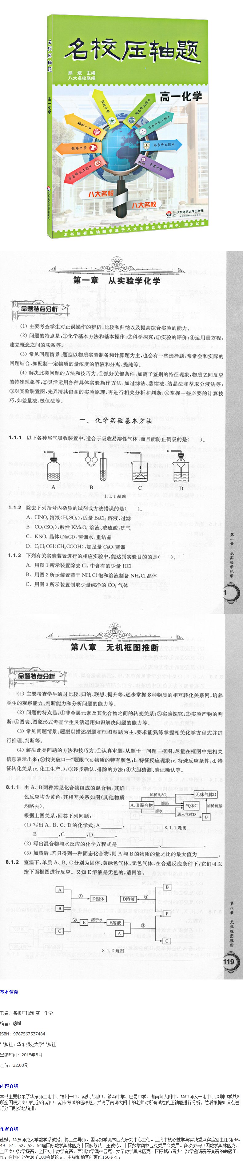 名校压轴题 高一化学 熊斌主编 八大名校联编 华东师范大学出版社 全国8所顶尖高中近5年期中期末考试的压轴题进行详细分析