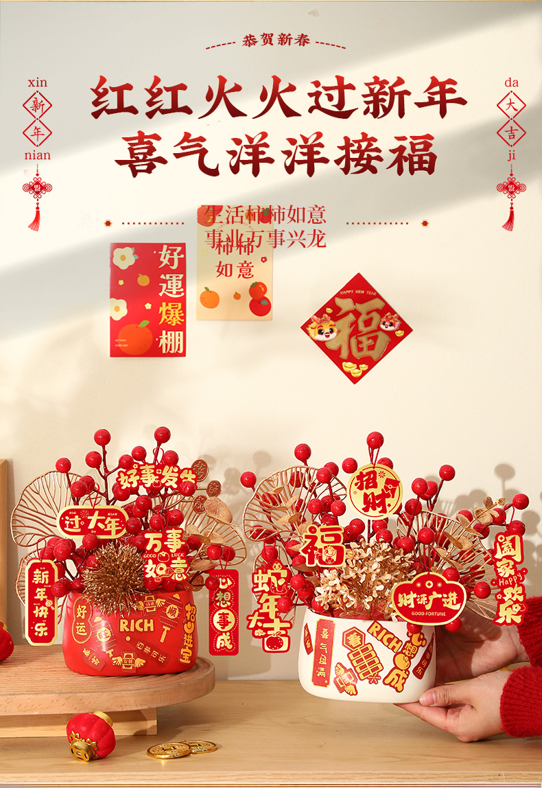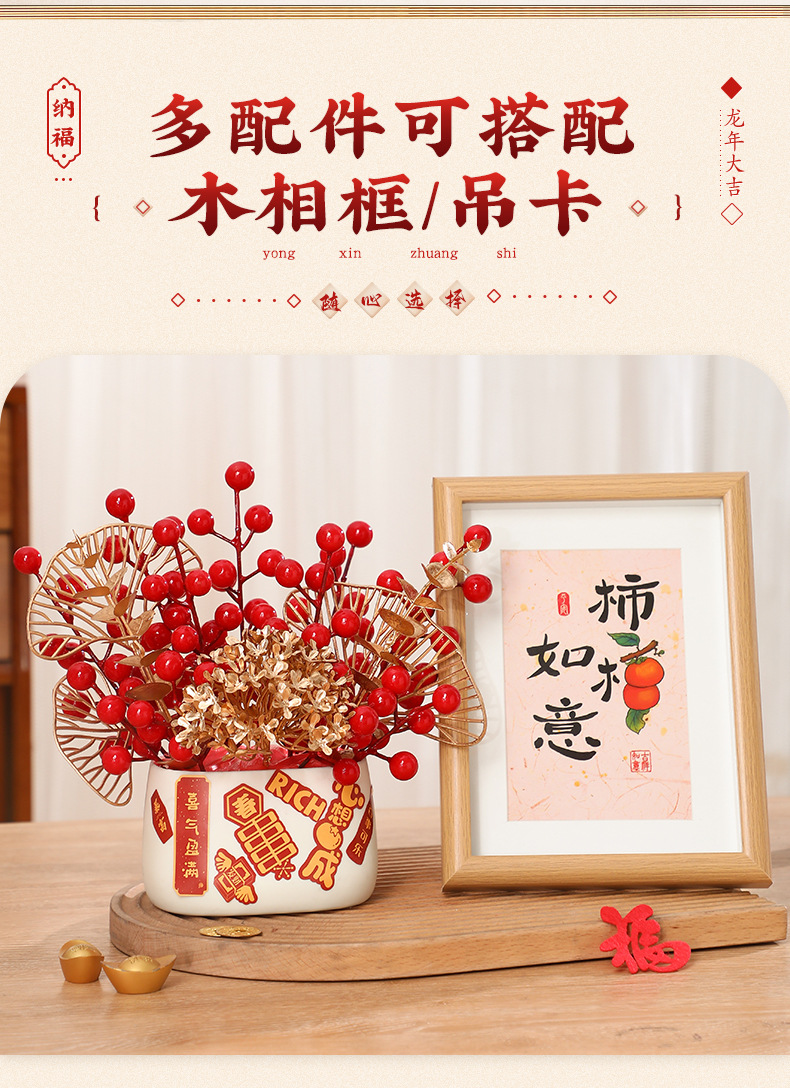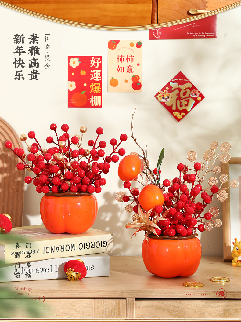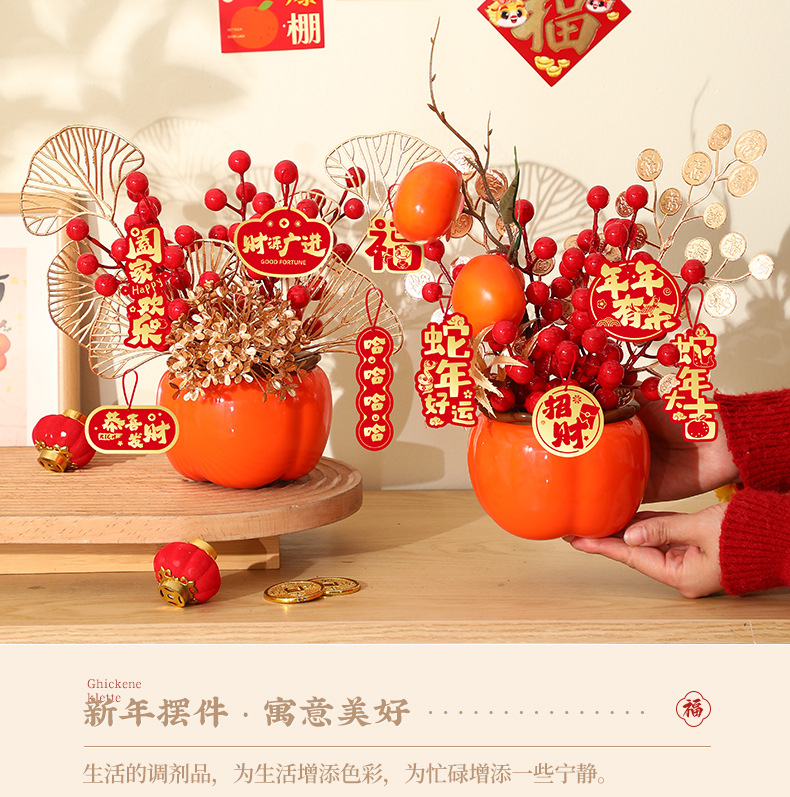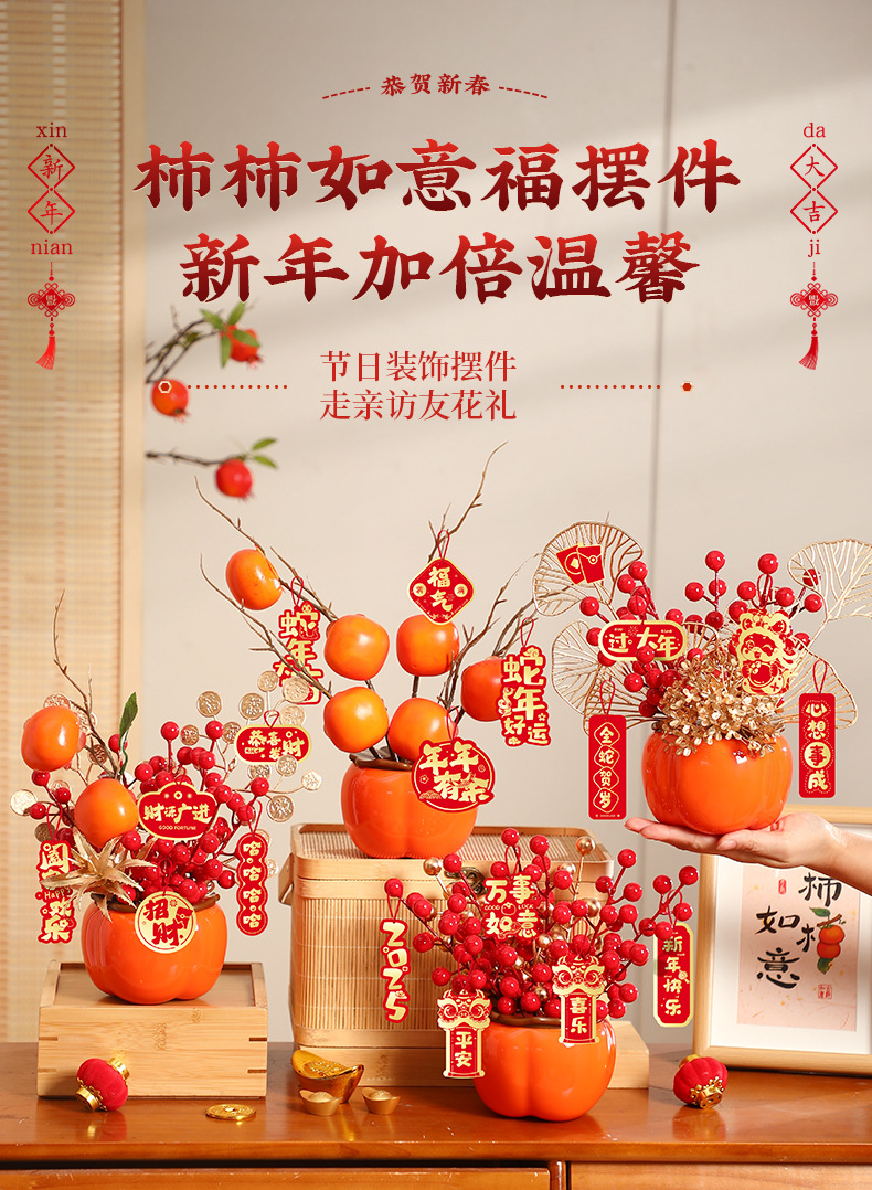 【醒粉福利14.9元起】新年装饰柿子罐柿柿如意 蛇年新居布置福桶客厅摆件