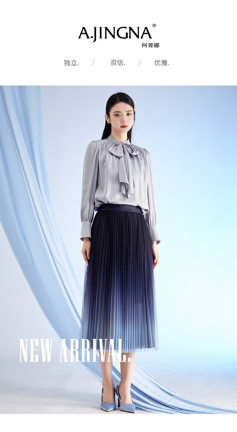 【商城同款】阿菁娜春新款典雅温婉飘带领衬衫A28C109006
