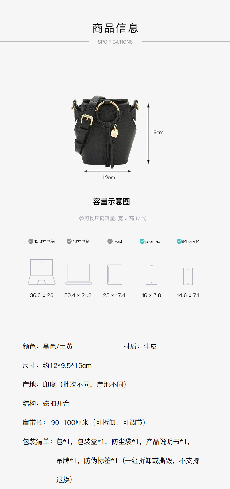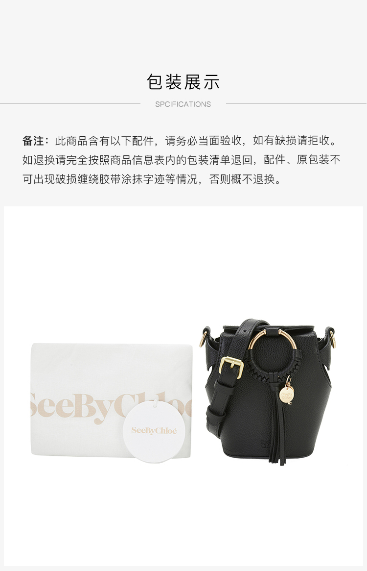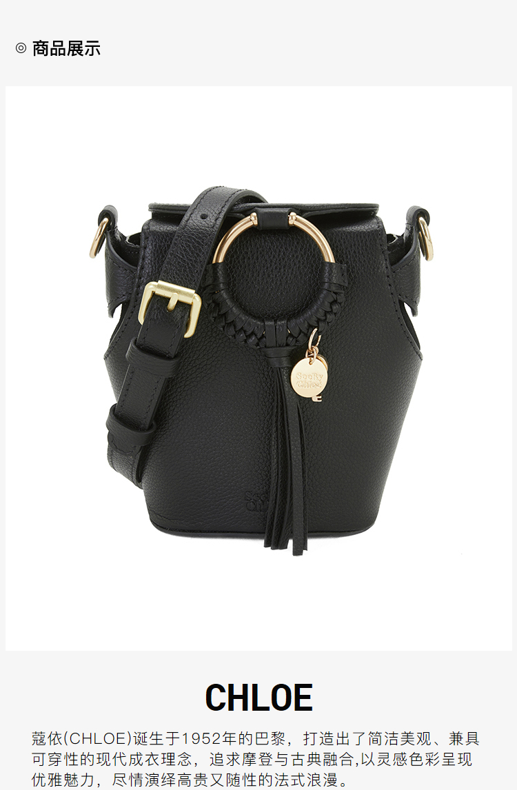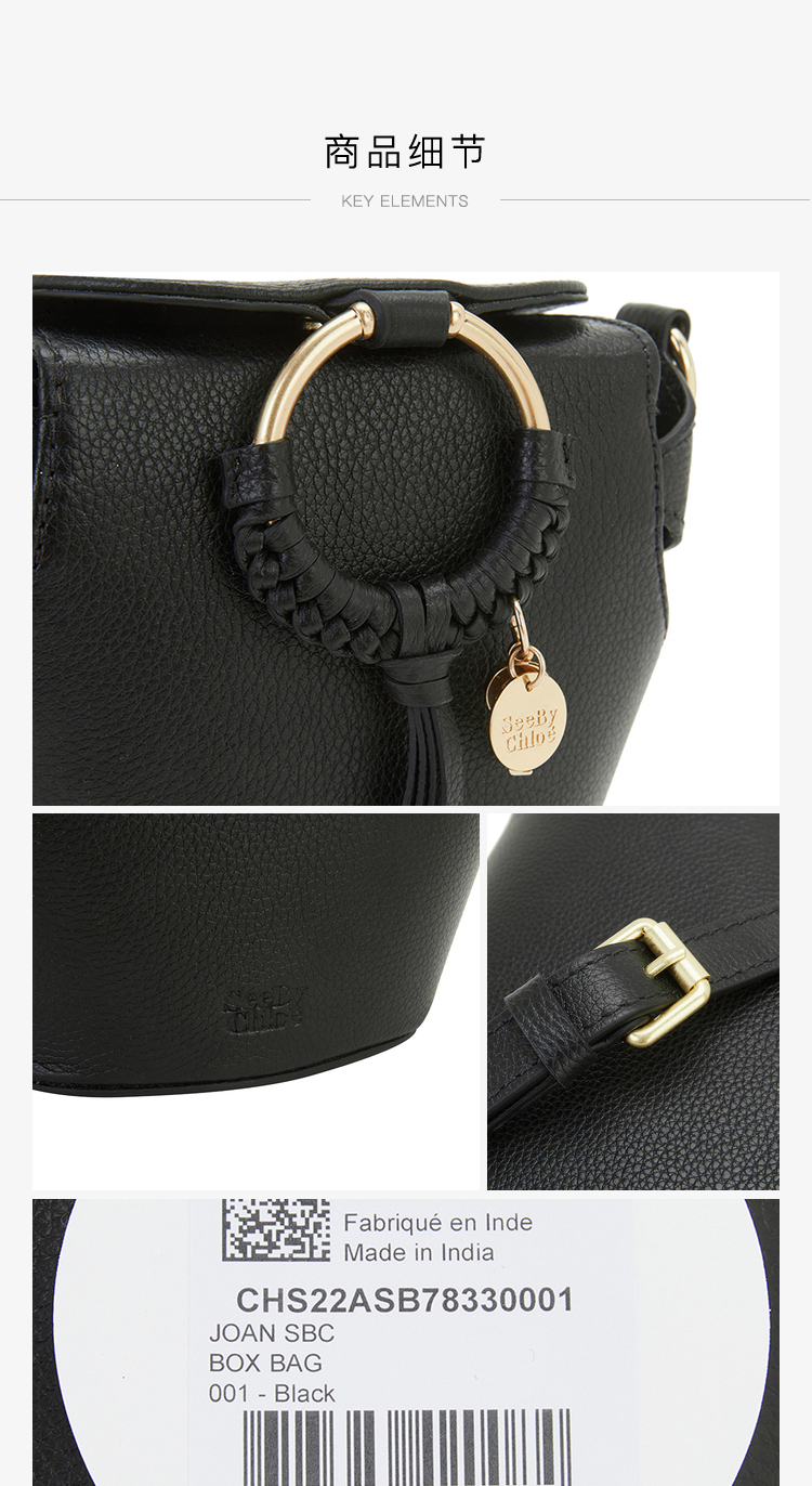 Chloe 蔻依 SEE BY CHLOE 女士荔枝纹牛皮单肩斜挎包 黑色 CHS22ASB78330 001