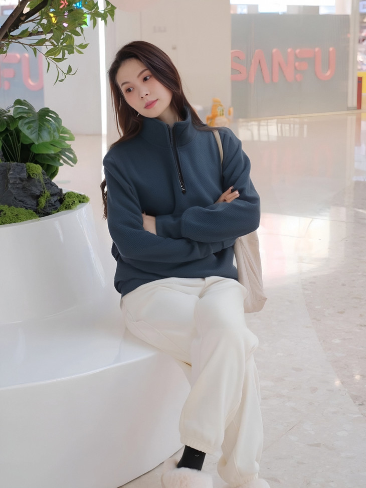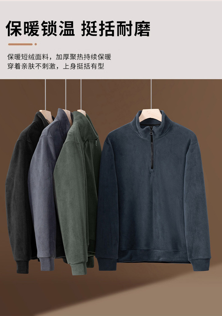 这款衣服最大的亮点就是它的半拉链设计 不仅方便穿脱,还能让你在人群中脱颖而出 展现出独特的时尚品味。 👍防风面料,由NASA研发 上身挺括有型,兼顾柔软亲肤,既保暖又舒适 让你在寒冷的天气里也能感受到温暖。🌞