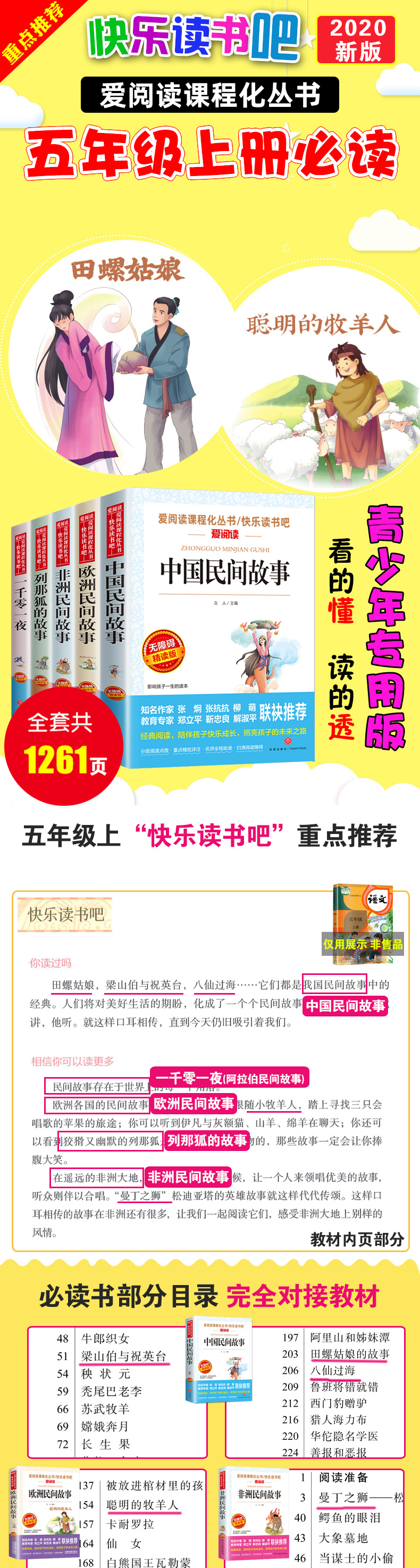 五年级上册必读课外书中国民间故事田螺姑娘列那狐的故事非洲民间故事欧洲聪明的牧羊人正版小学生课外阅读书籍老师推荐快乐读书吧