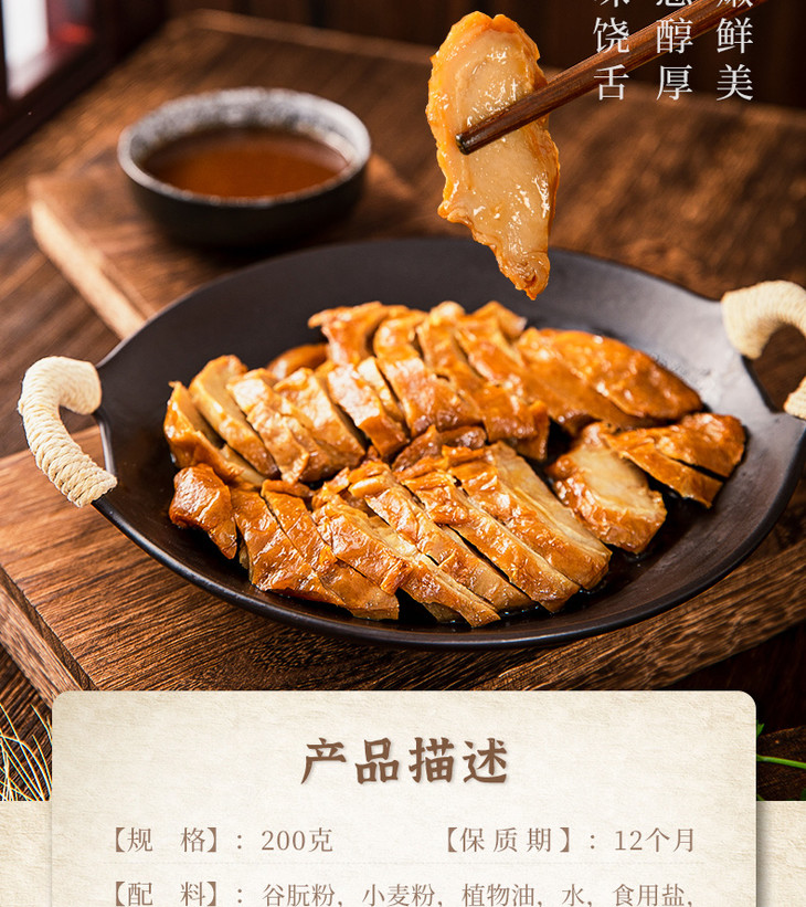 【 斋烟鹅】素烧鹅佛家纯素肉食品熟食素菜仿荤人造肉200g