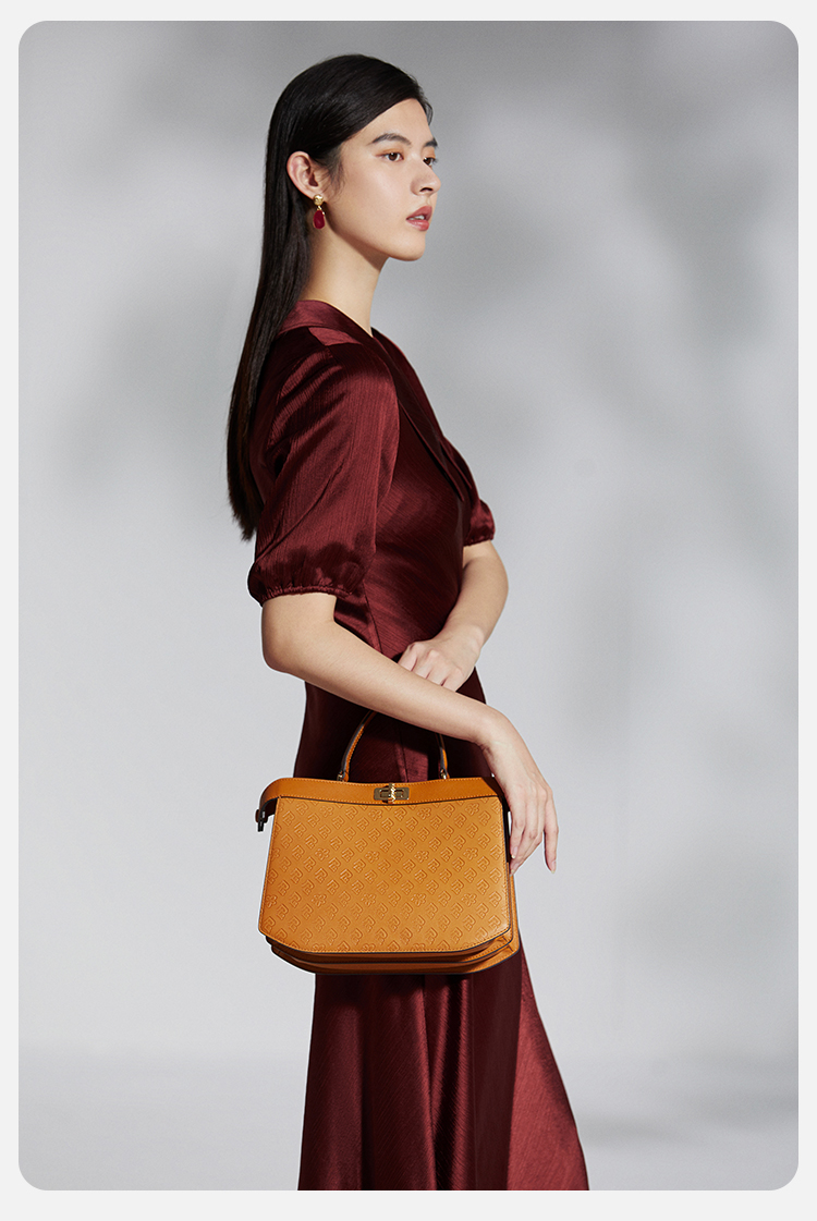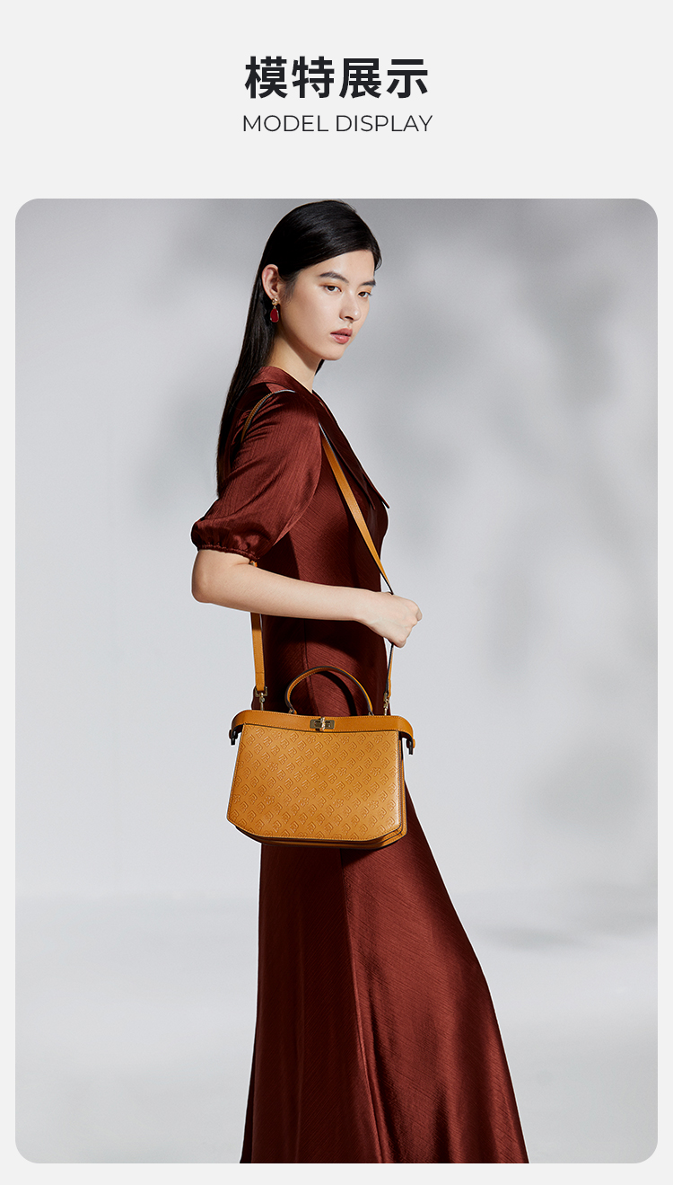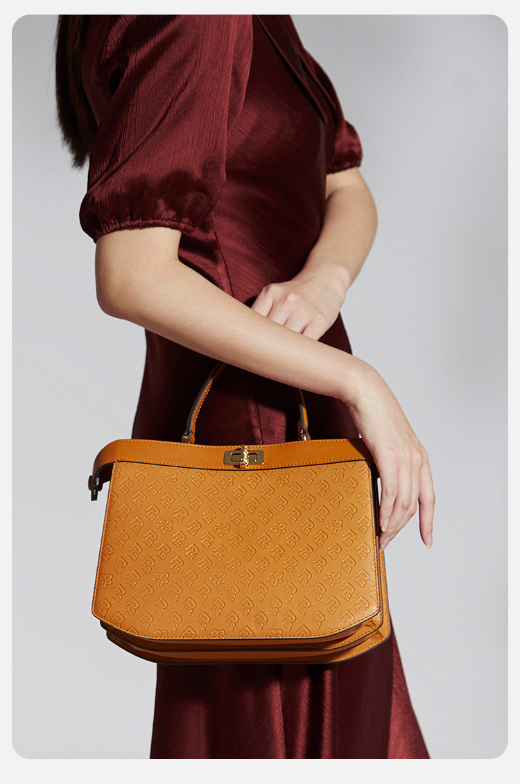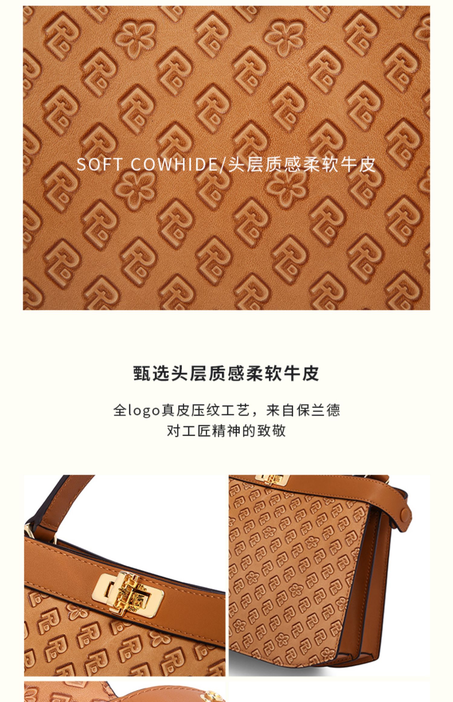 保兰德PLD东方雅奢45度老花经典系列头层牛皮风琴包斜挎手提包通勤必备女包