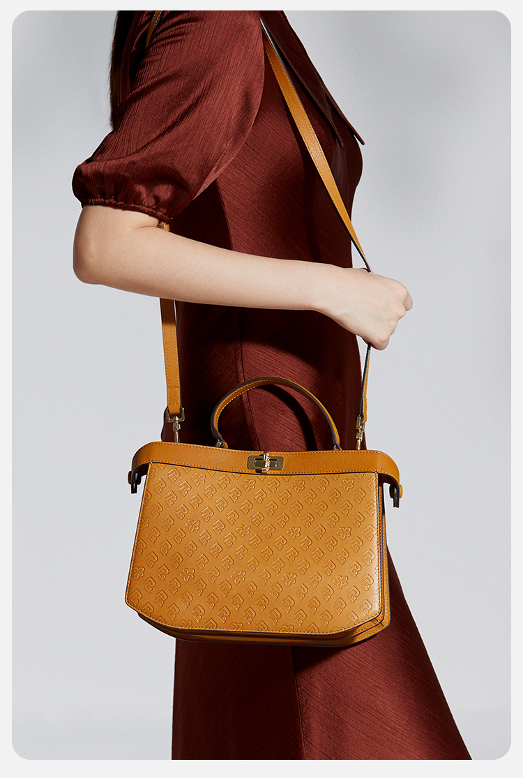 保兰德PLD东方雅奢真我系列PVC45度老花水桶包单肩斜挎通勤通勤必备女包