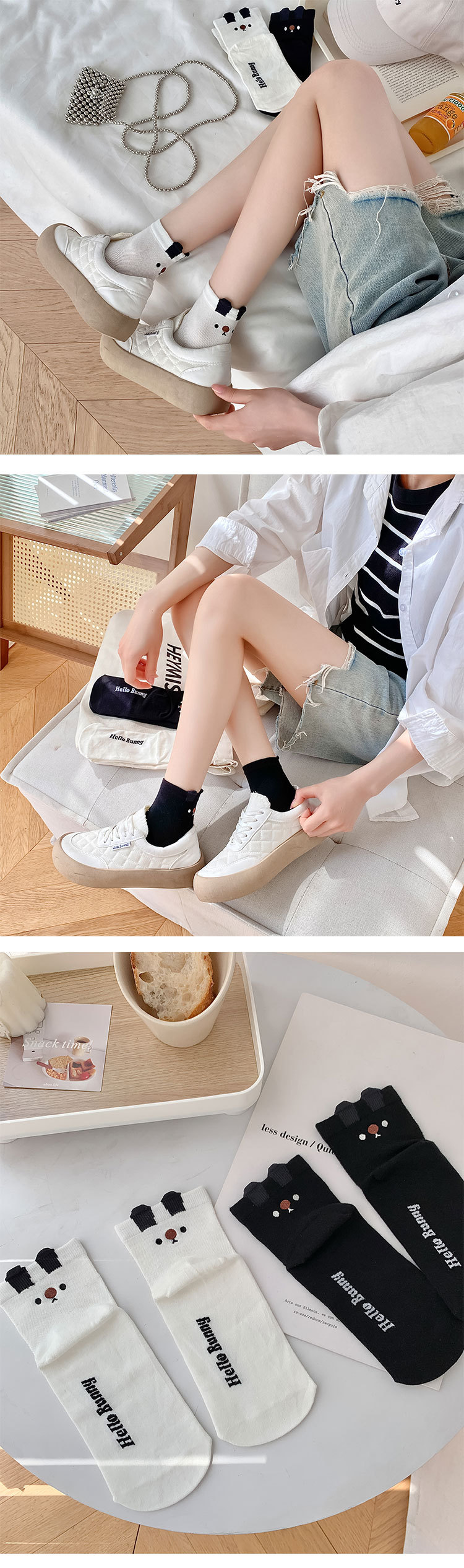 【非瑜伽袜】【新品】2023夏季新品可爱袜子女立体耳朵小兔几卡通短袜日系薄款短筒袜潮
