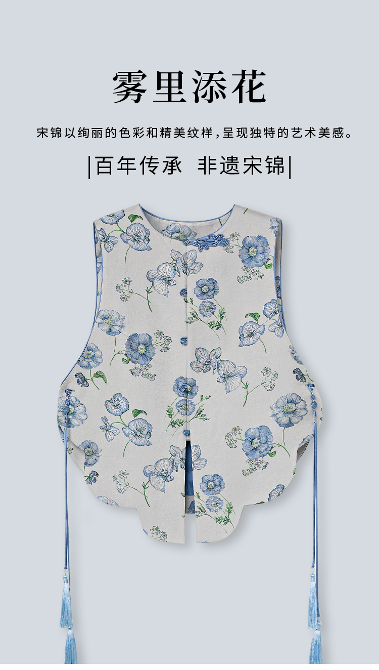 SAINTJOY/上久楷女式宋锦马甲 雾里添花 CY1044207020