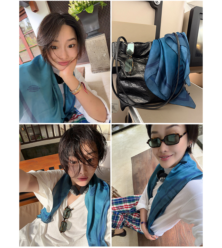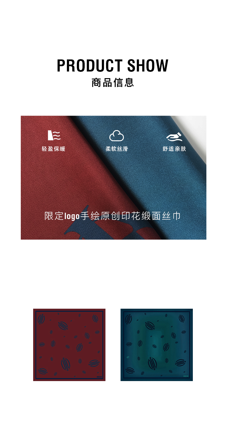 HIDEMI 大秀款限定logo系列手绘原创印花缎面90*90方形大丝巾披肩围巾