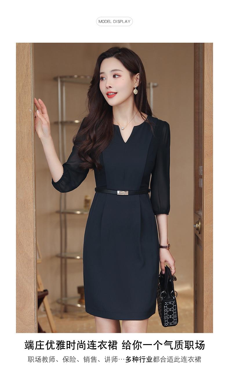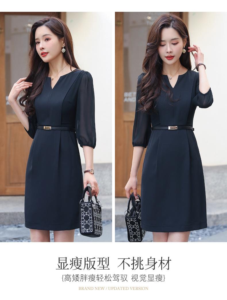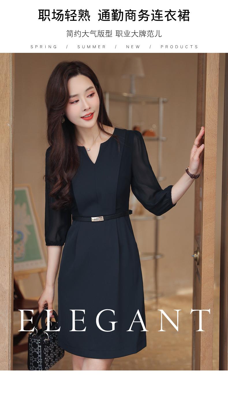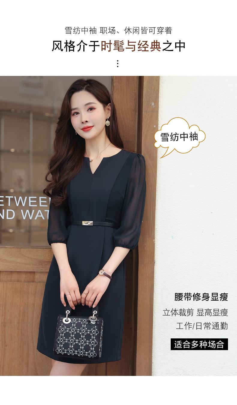 娜璐多 高级感中袖连衣裙女夏薄款2023新款网纱拼接气质女神范裙子送腰带