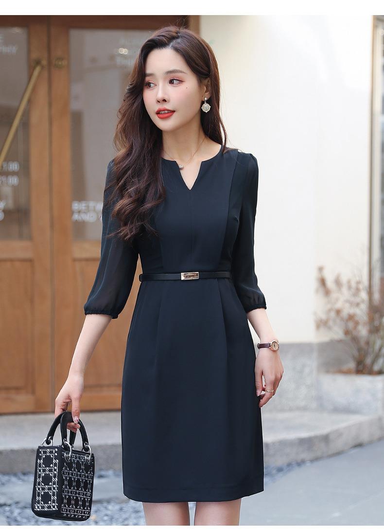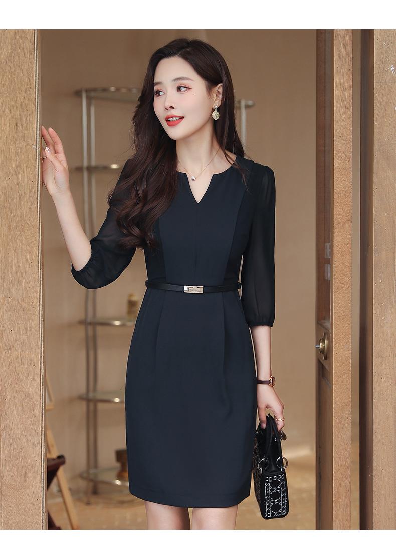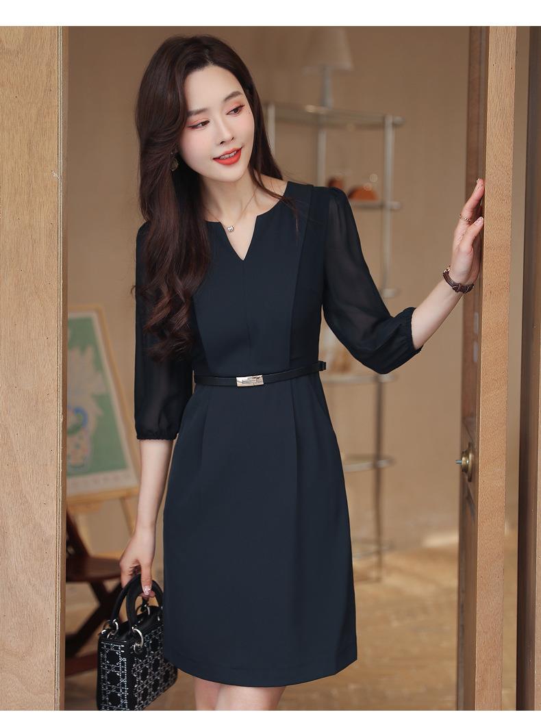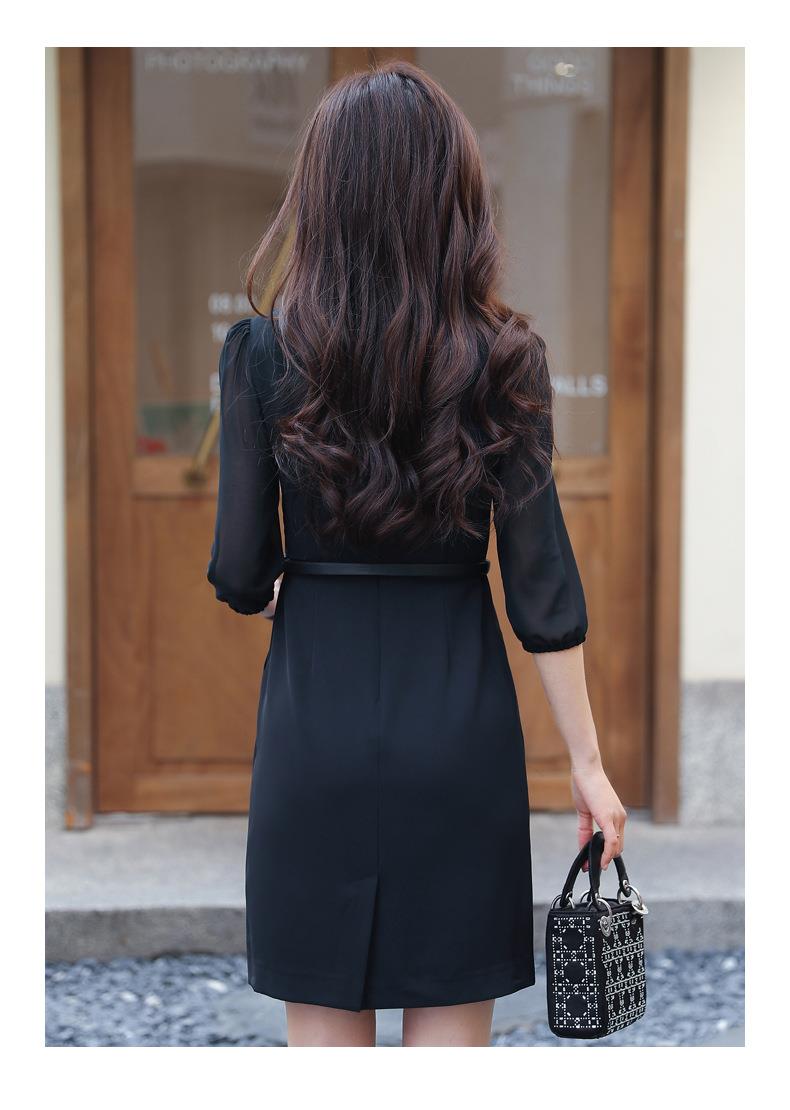 娜璐多 高级感中袖连衣裙女夏薄款2023新款网纱拼接气质女神范裙子送腰带