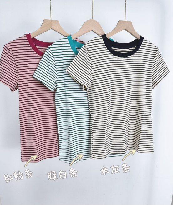 原厂订单‼美yang同款‼【封神条纹款T恤】条条T永远的经典百搭,撞色设计更有个性❗不闷热!弹力大,遮肉舒适百搭! 限量销售,随时断货,姐妹们,速度抢!这个价格这个品质错过拍大腿,后悔一整年‼ 颜色:米灰条 红粉条 绿白条 尺码:S- XL