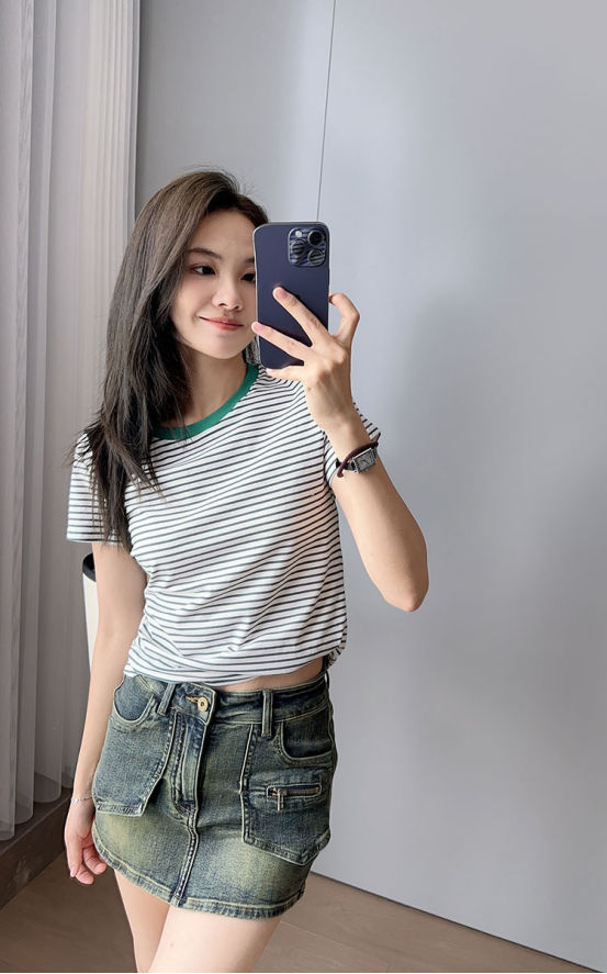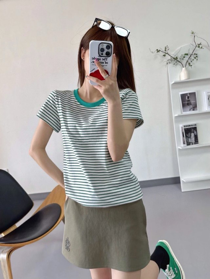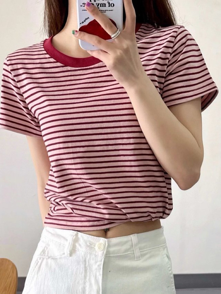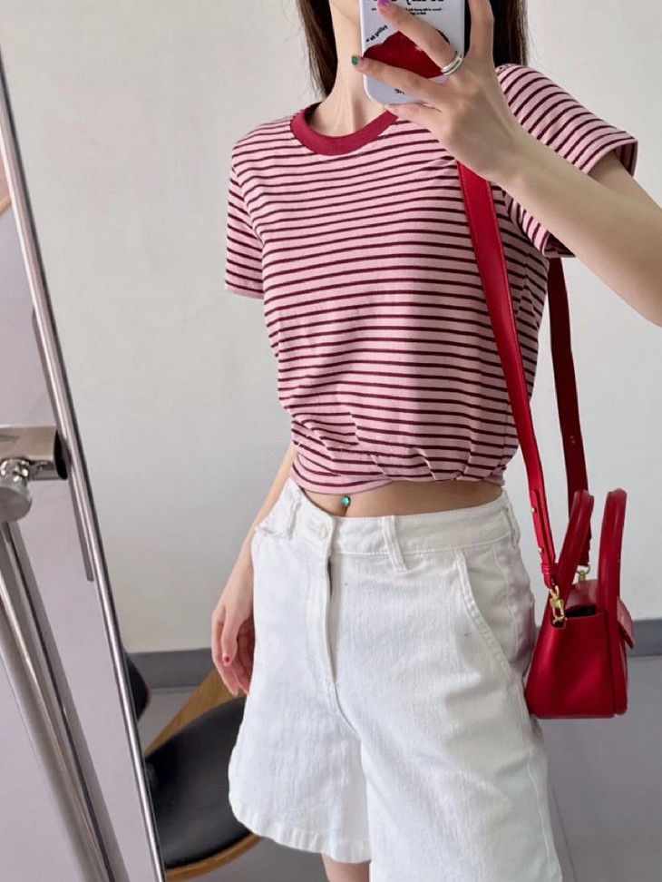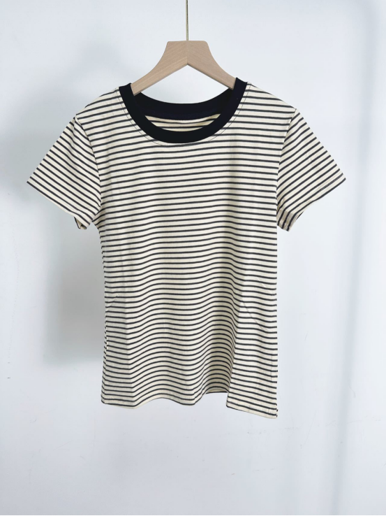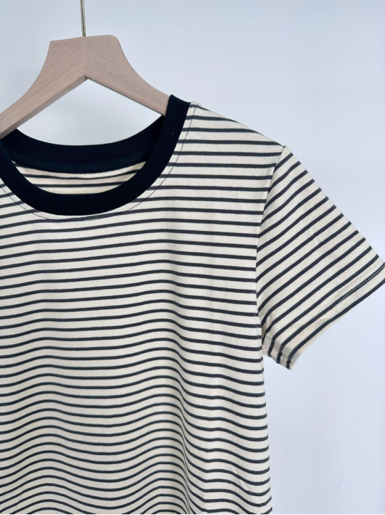我的心头爱来了‼经典条纹 条条T❗❗ 真的是非常值得入手的一款正肩T恤 它不是一款简简单单的黑白条纹T恤 ✅肌理感面料更加有质感 正反两面都超舒服 ✅三个色系 可盐可甜 ✅领口的撞色设计 个性又出彩 所有的优点已经将这件衣服提升到了一个全新的高度~绝对是你不可错过的一件短袖 版型上我们也做的相对宽松 微胖的妹子也可以闭眼入‼