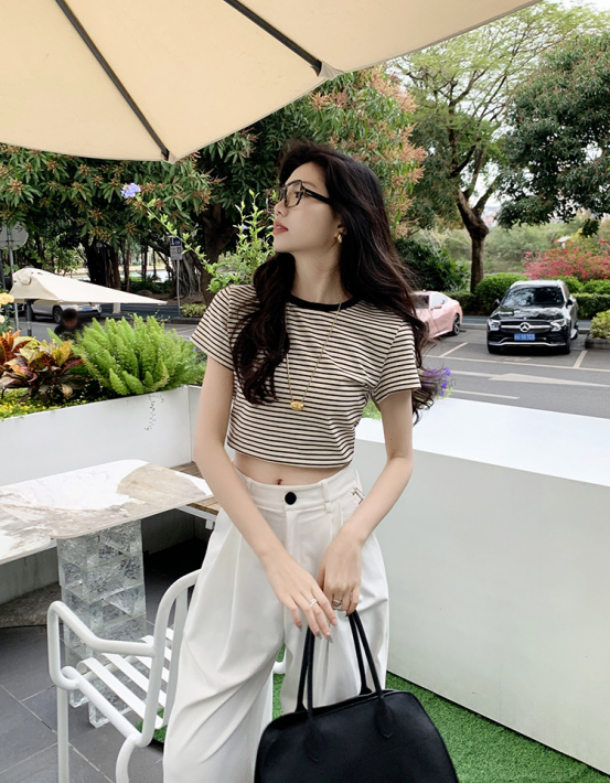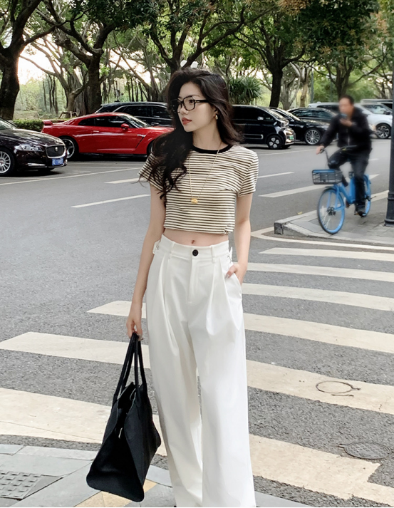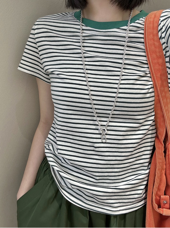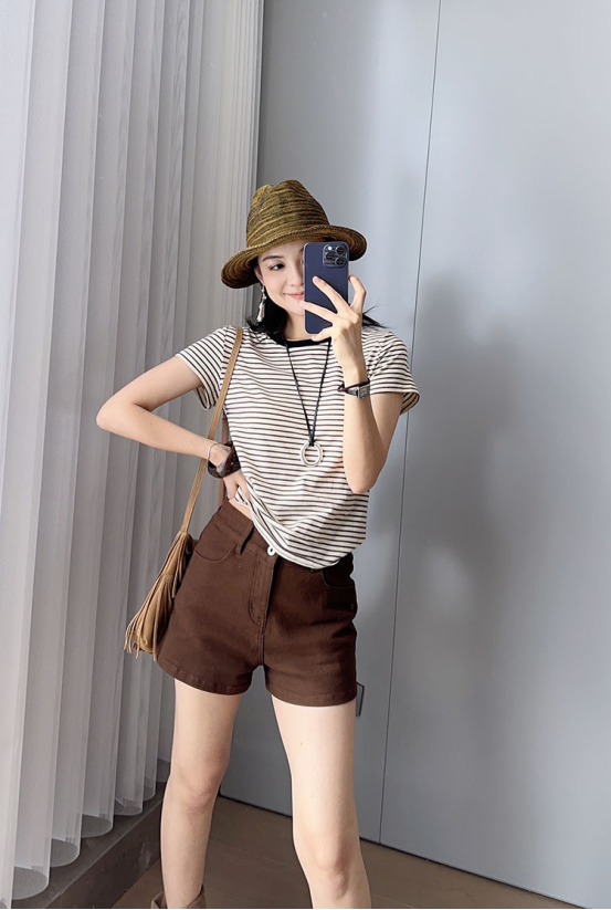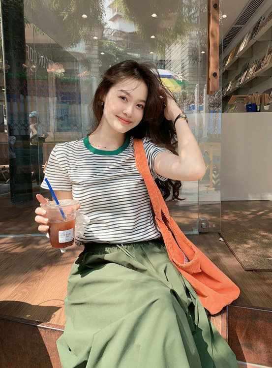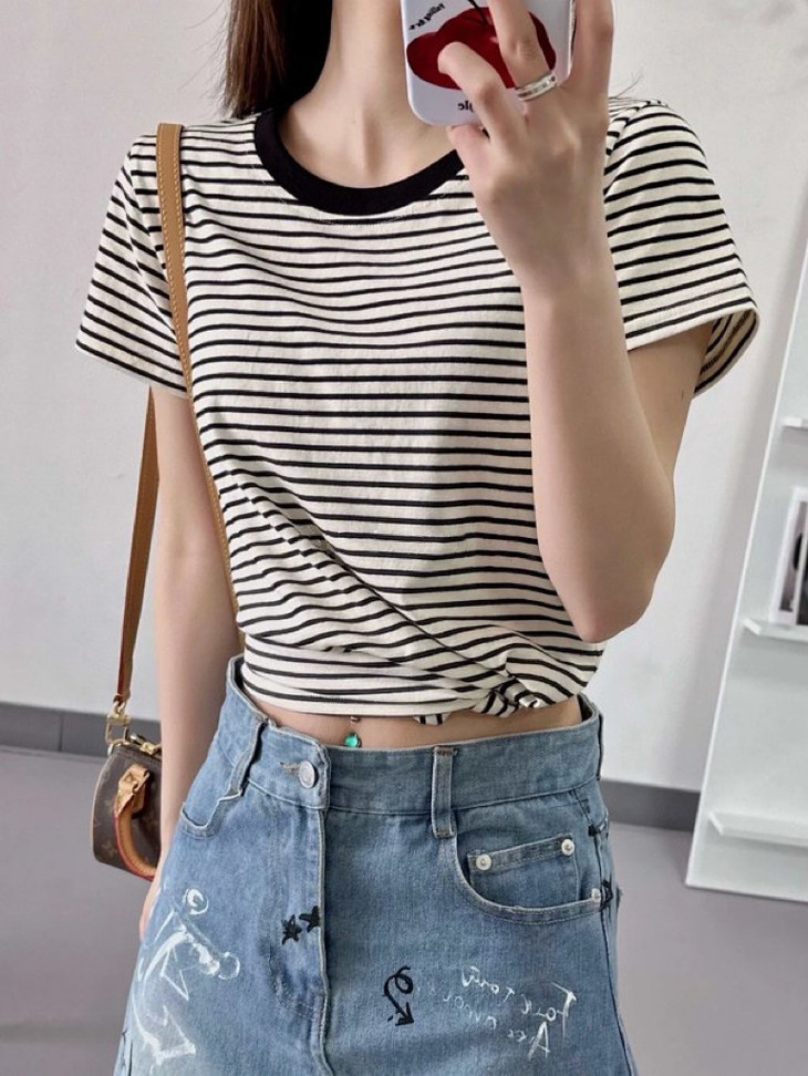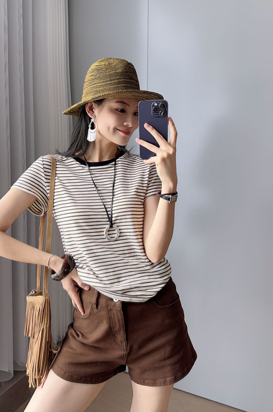 我的心头爱来了‼经典条纹 条条T❗❗ 真的是非常值得入手的一款正肩T恤 它不是一款简简单单的黑白条纹T恤 ✅肌理感面料更加有质感 正反两面都超舒服 ✅三个色系 可盐可甜 ✅领口的撞色设计 个性又出彩 所有的优点已经将这件衣服提升到了一个全新的高度~绝对是你不可错过的一件短袖 版型上我们也做的相对宽松 微胖的妹子也可以闭眼入‼