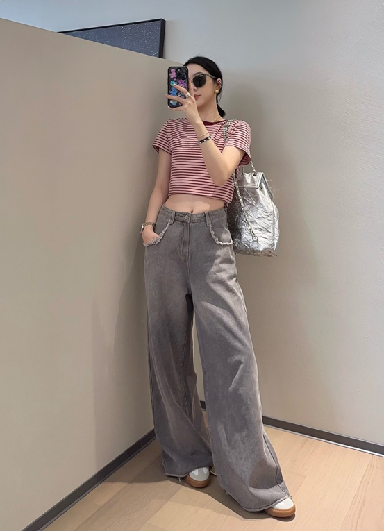 米灰条纹×经典不出错 这个配色谁懂啊⚠️得体又大方 一眼就是那种特高级复古的感觉‼️